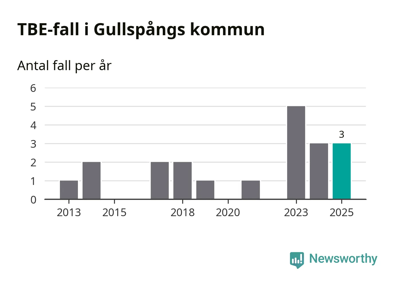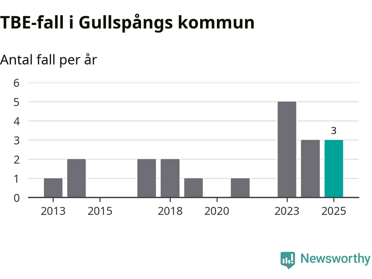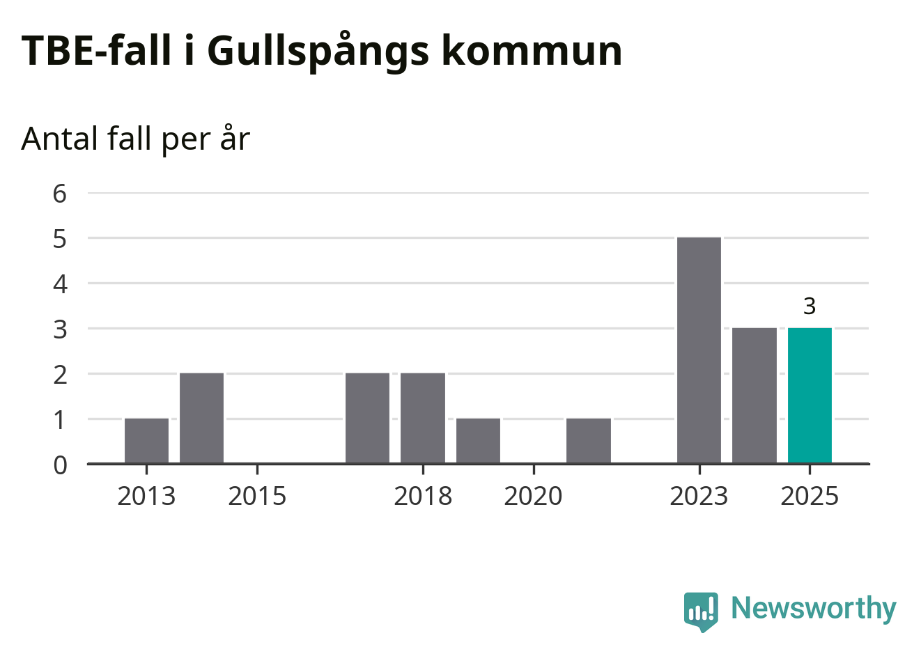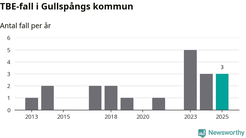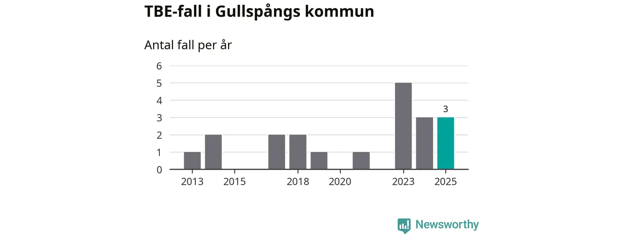 Den långsiktiga trenden är däremot tydlig. TBE-fallen blir allt fler i Sverige. Sett över tid har antalet anmälda fall i landet som helhet ökat med drygt sex procent per år sedan 2013. Totalt motsvarar det en ökning på 141 procent om vi jämför 2013 med 2025 års siffror.