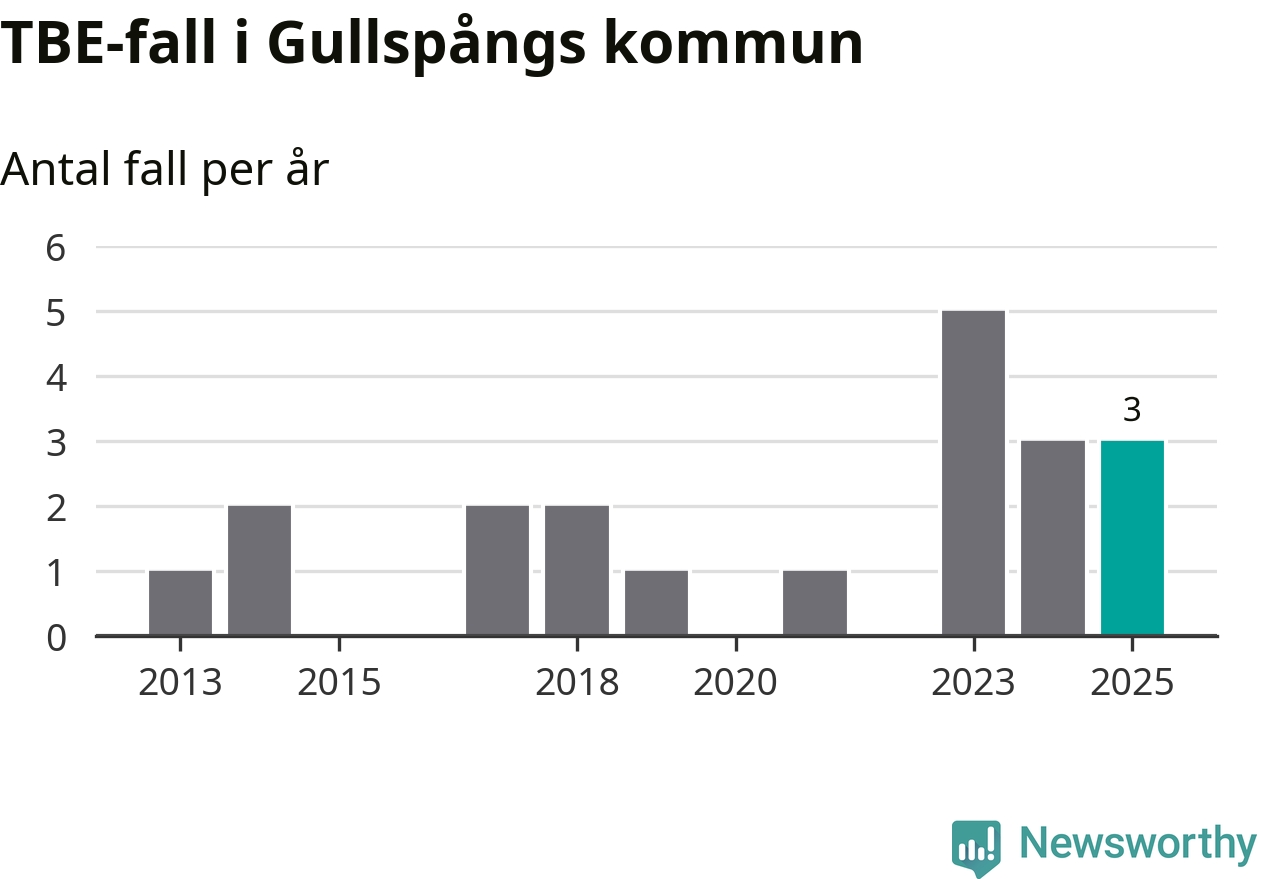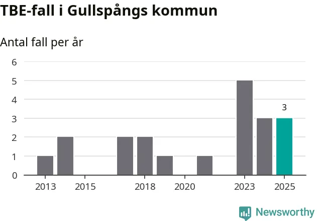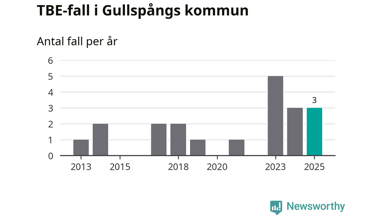 Under 2025 tillkom sju nya kommuner på den listan. Gullspångs kommun räknas till kommunerna med förhöjd förekomst av TBE. Det gör även resten av Västra Götalands län.