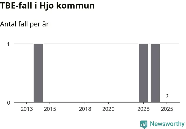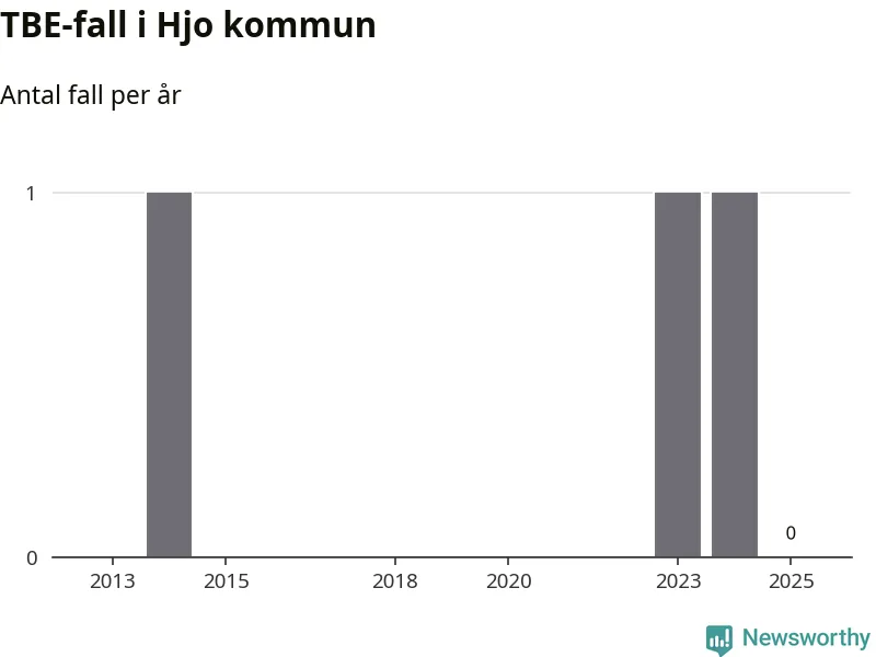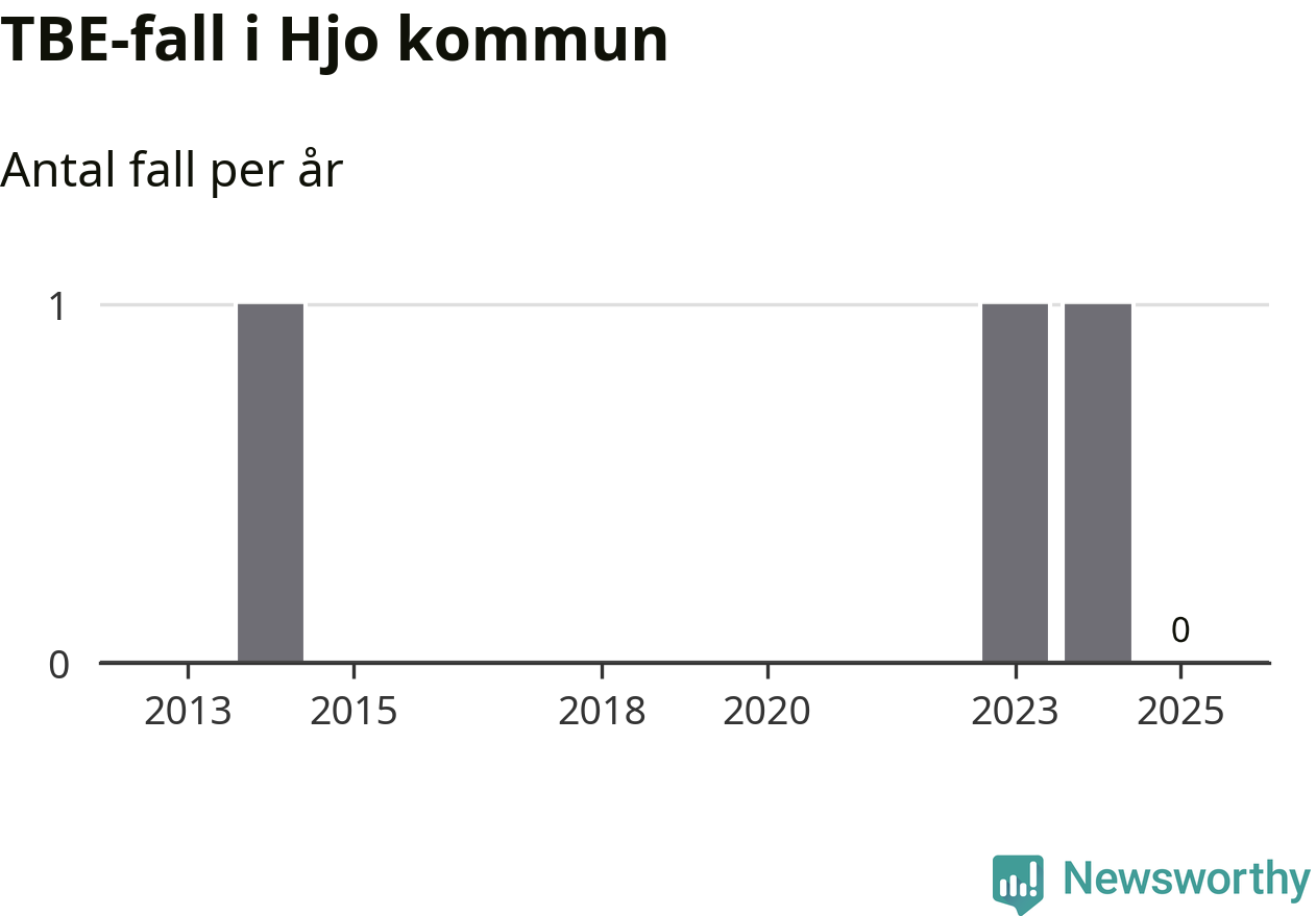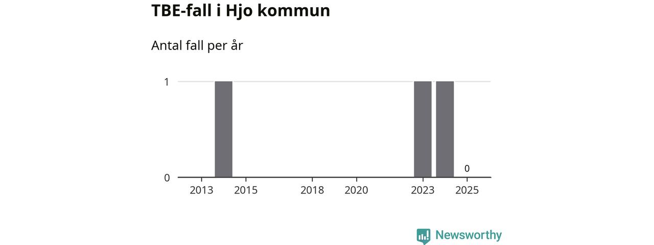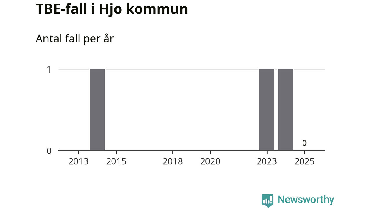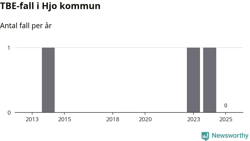 Inget TBE-fall rapporterades i Hjo kommun under 2025. Det är en minskning sedan året innan, då ett fall rapporterades i kommunen.