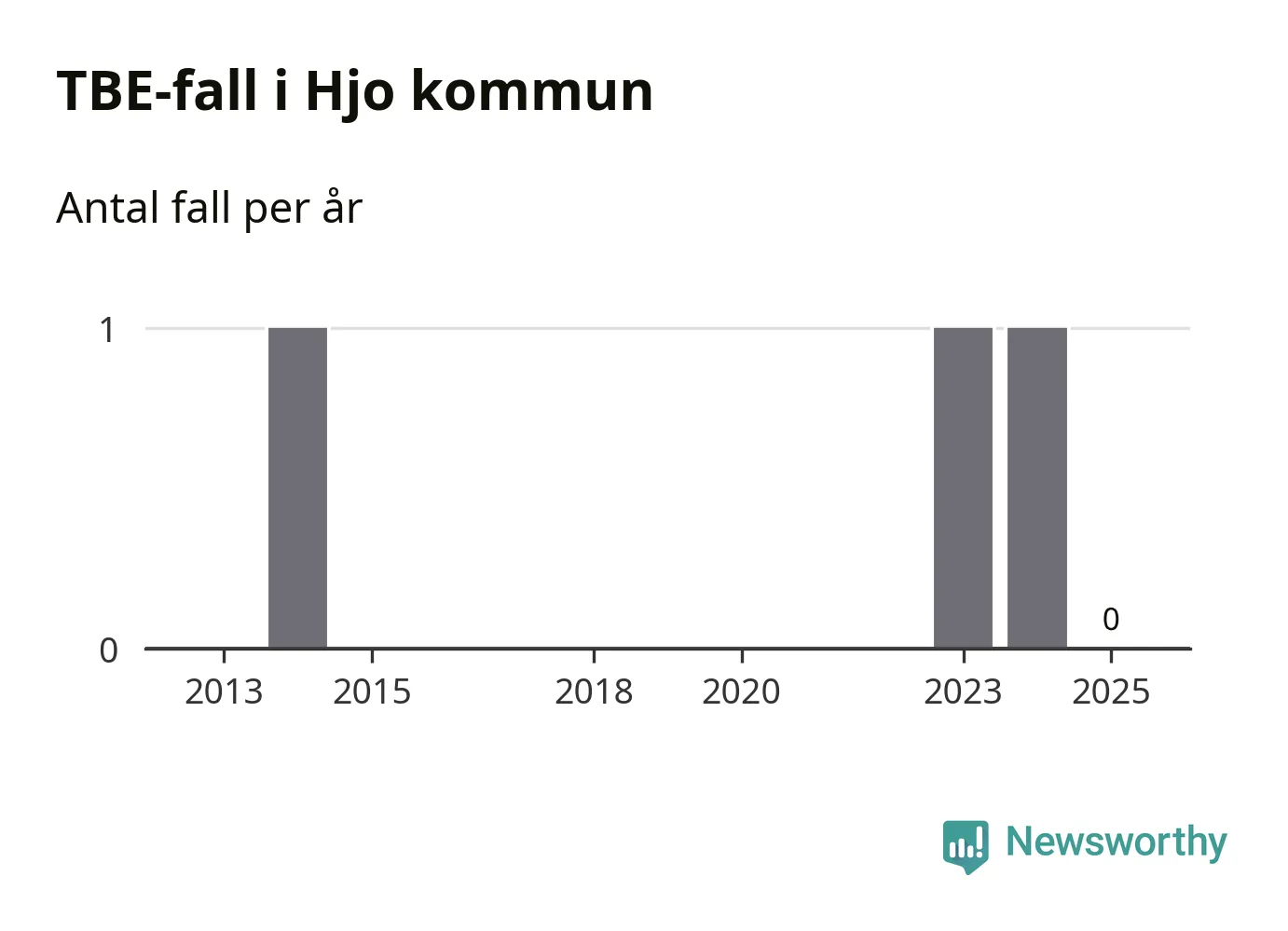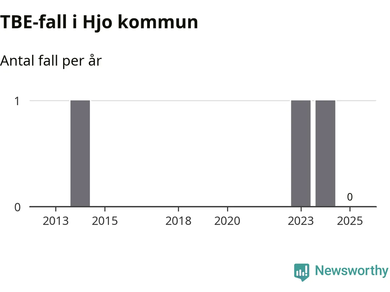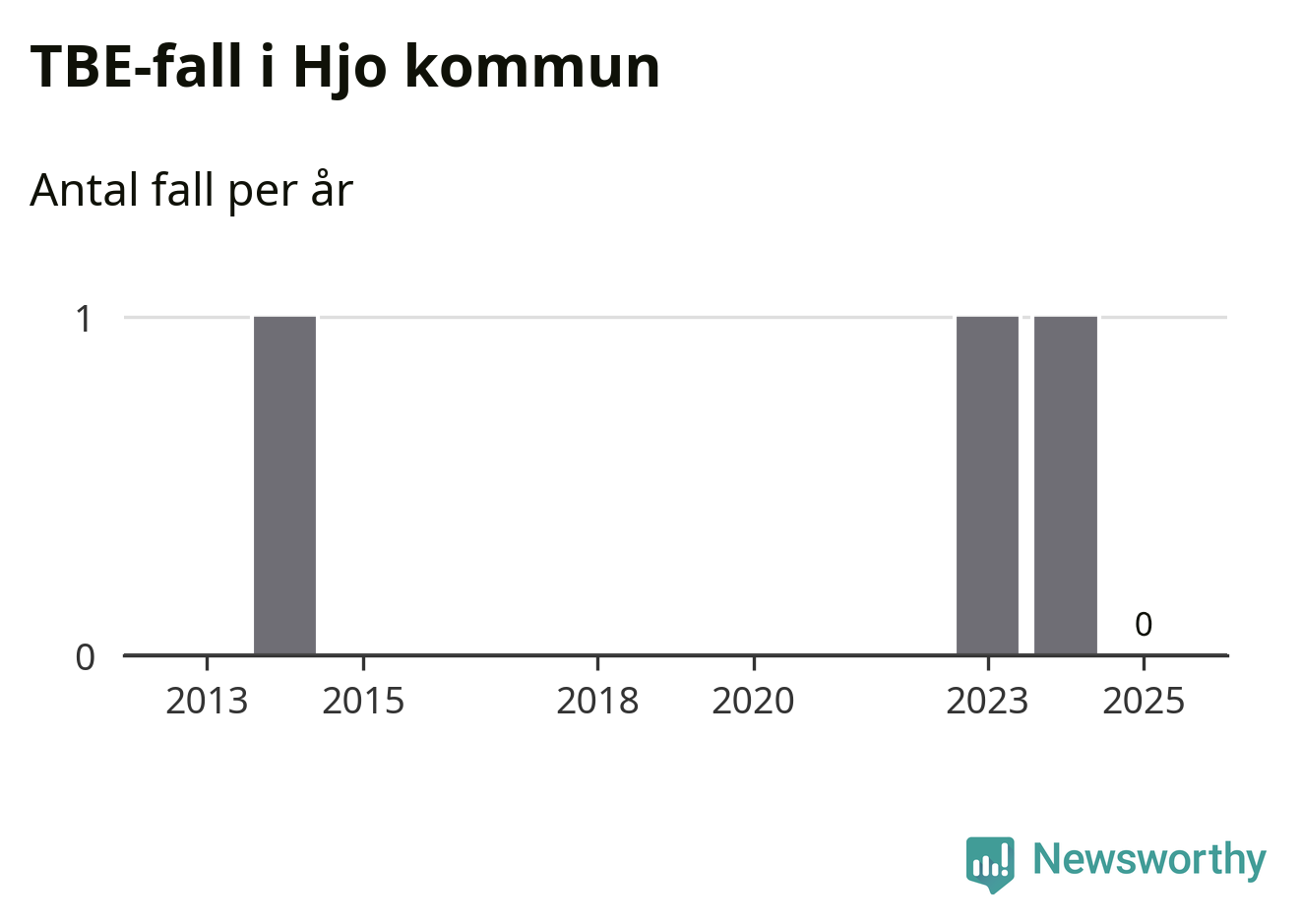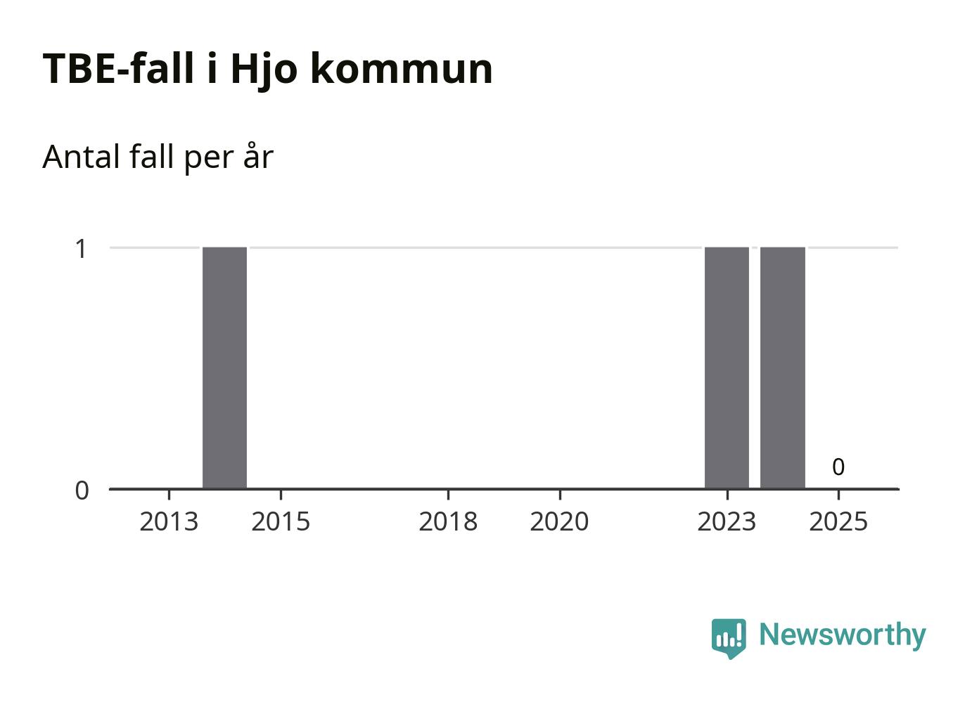 Inget TBE-fall rapporterades i Hjo kommun under 2025. Det är en minskning sedan året innan, då ett fall rapporterades i kommunen.