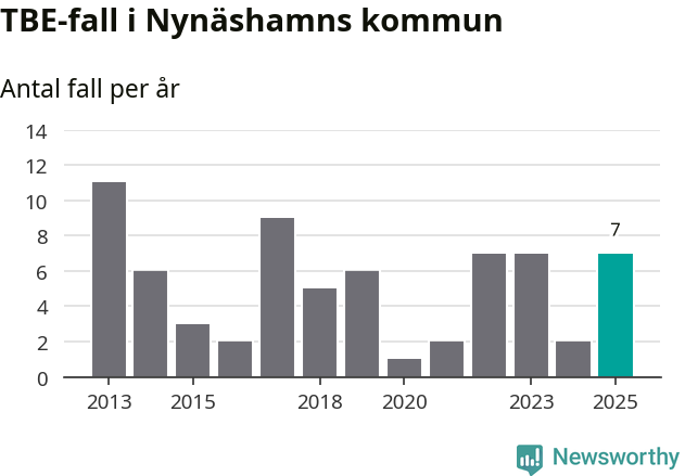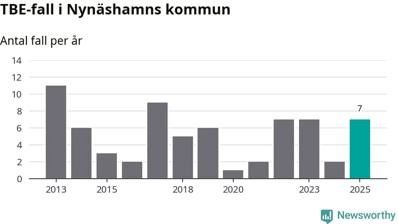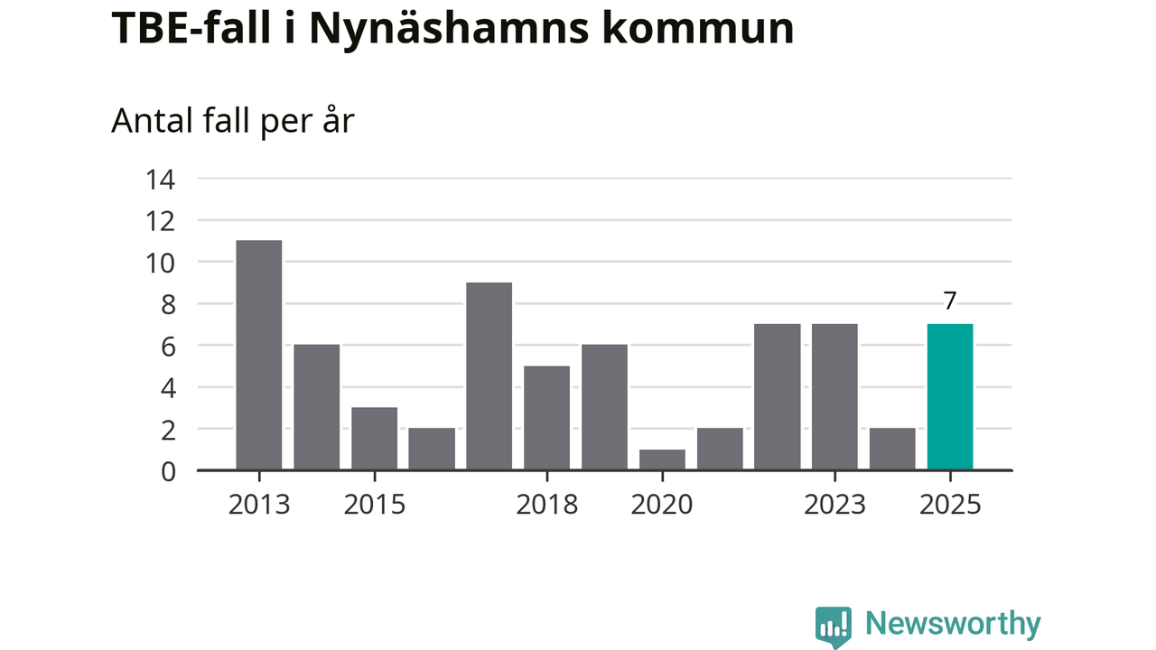 Den långsiktiga trenden är däremot tydlig. TBE-fallen blir allt fler i Sverige. Sett över tid har antalet anmälda fall i landet som helhet ökat med drygt sex procent per år sedan 2013. Totalt motsvarar det en ökning på 141 procent om vi jämför 2013 med 2025 års siffror.