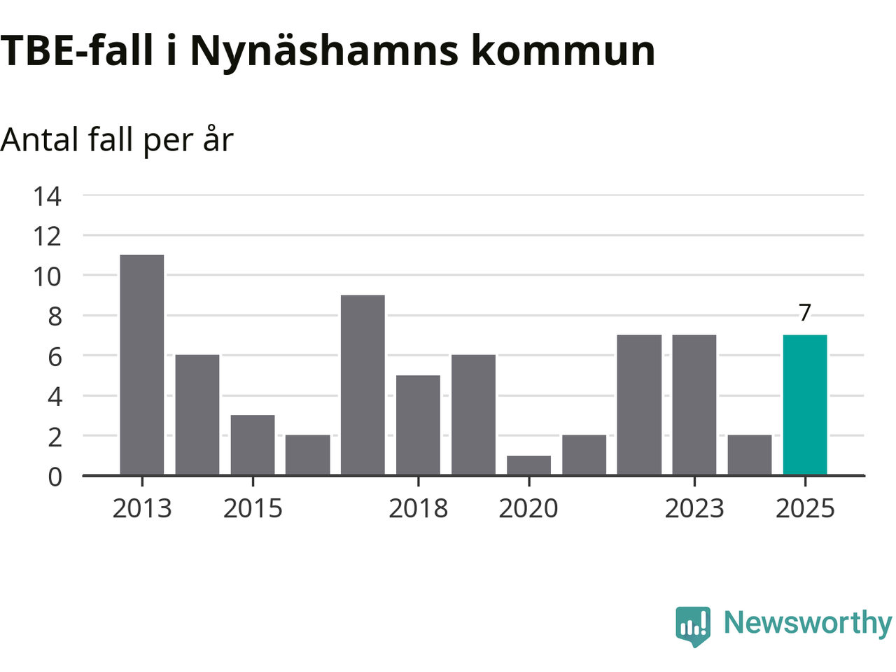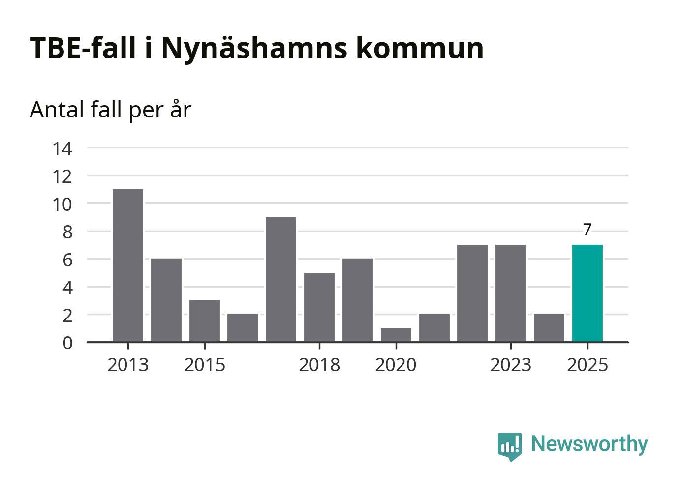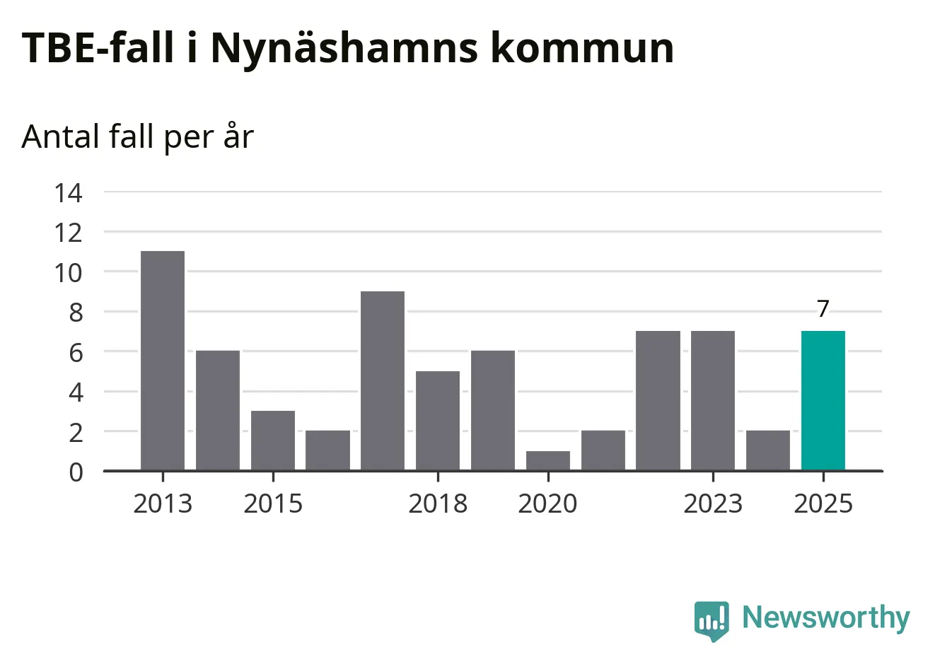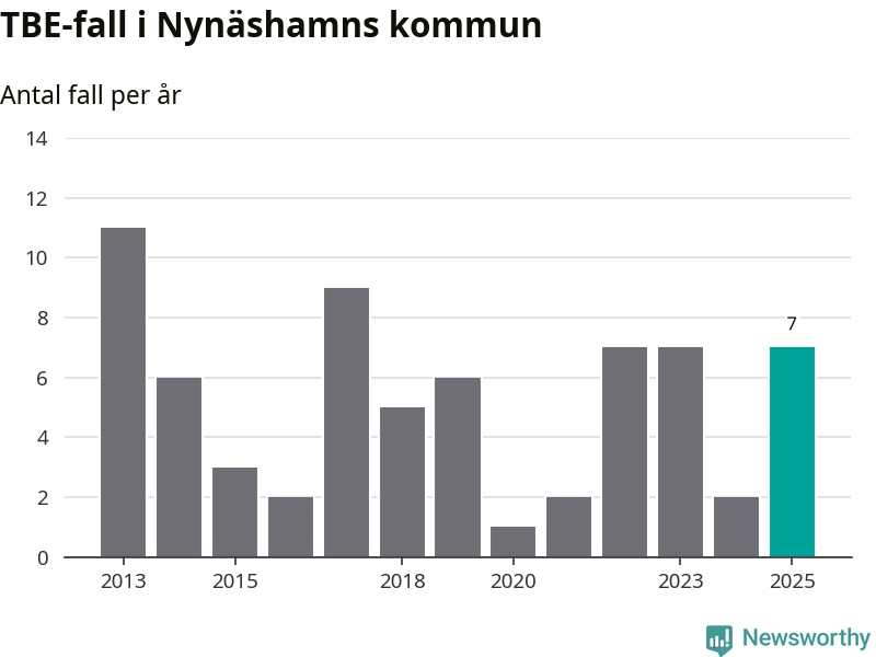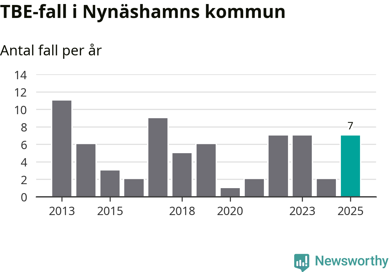 I Nynäshamns kommun rapporterades totalt sju smittfall. Det är en ökning sedan året innan då sjukdomssiffran låg på två rapporterade fall.