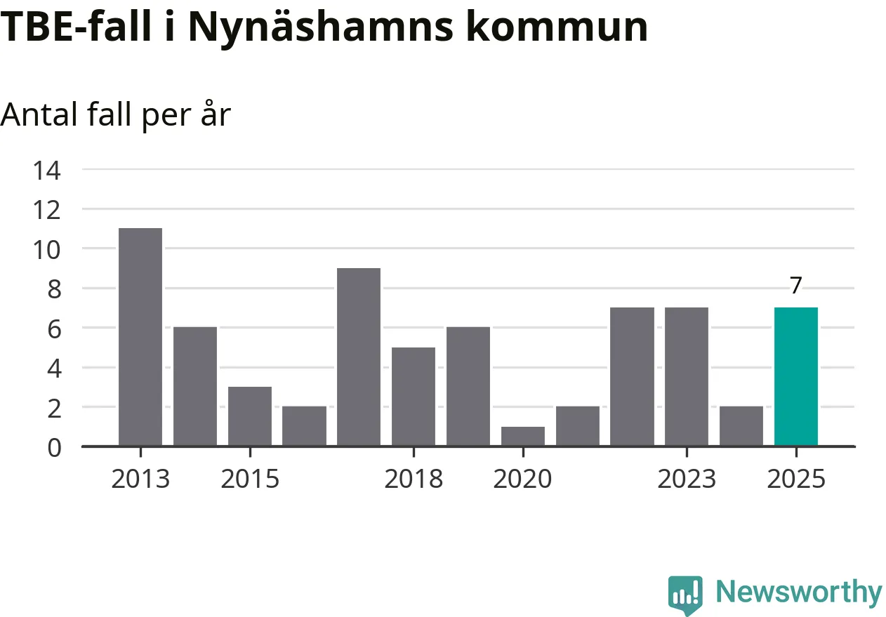 Under 2025 tillkom sju nya kommuner på den listan. Nynäshamns kommun räknas till kommunerna med förhöjd förekomst av TBE. Det gör även resten av Stockholms län.