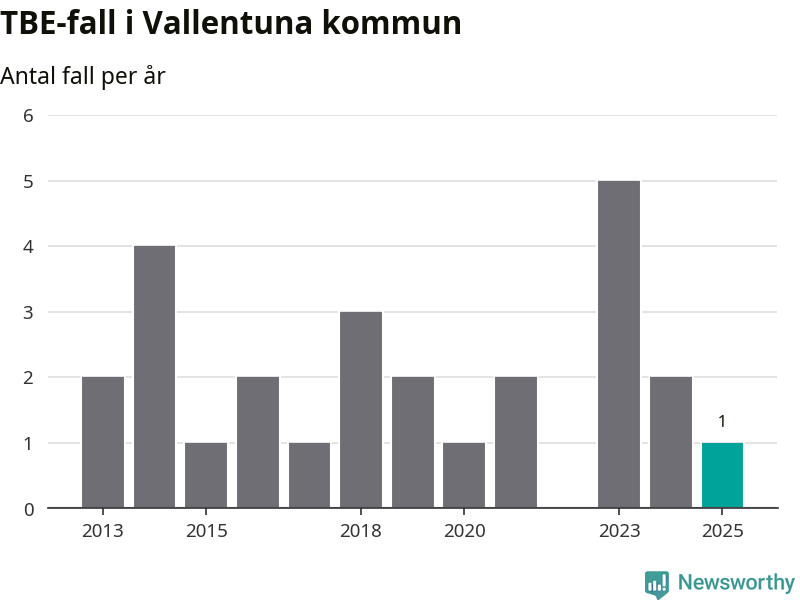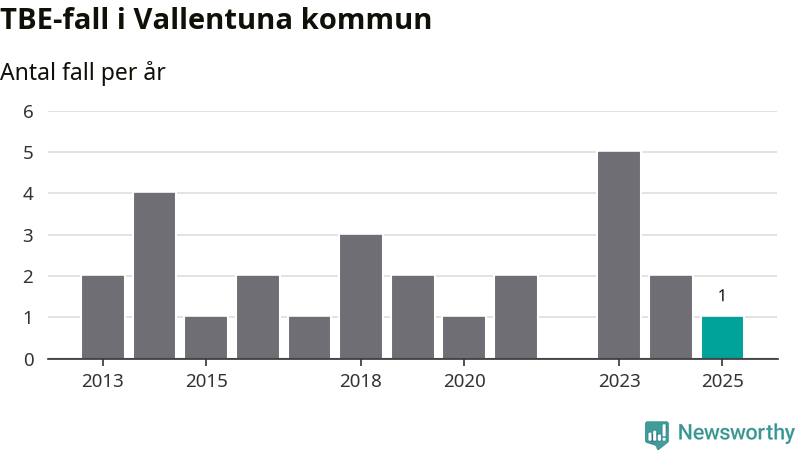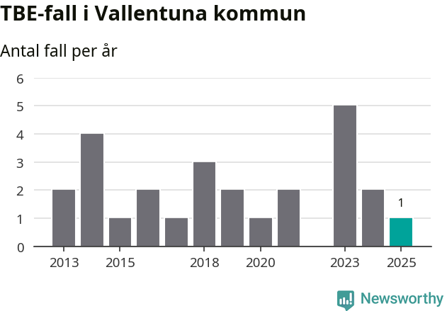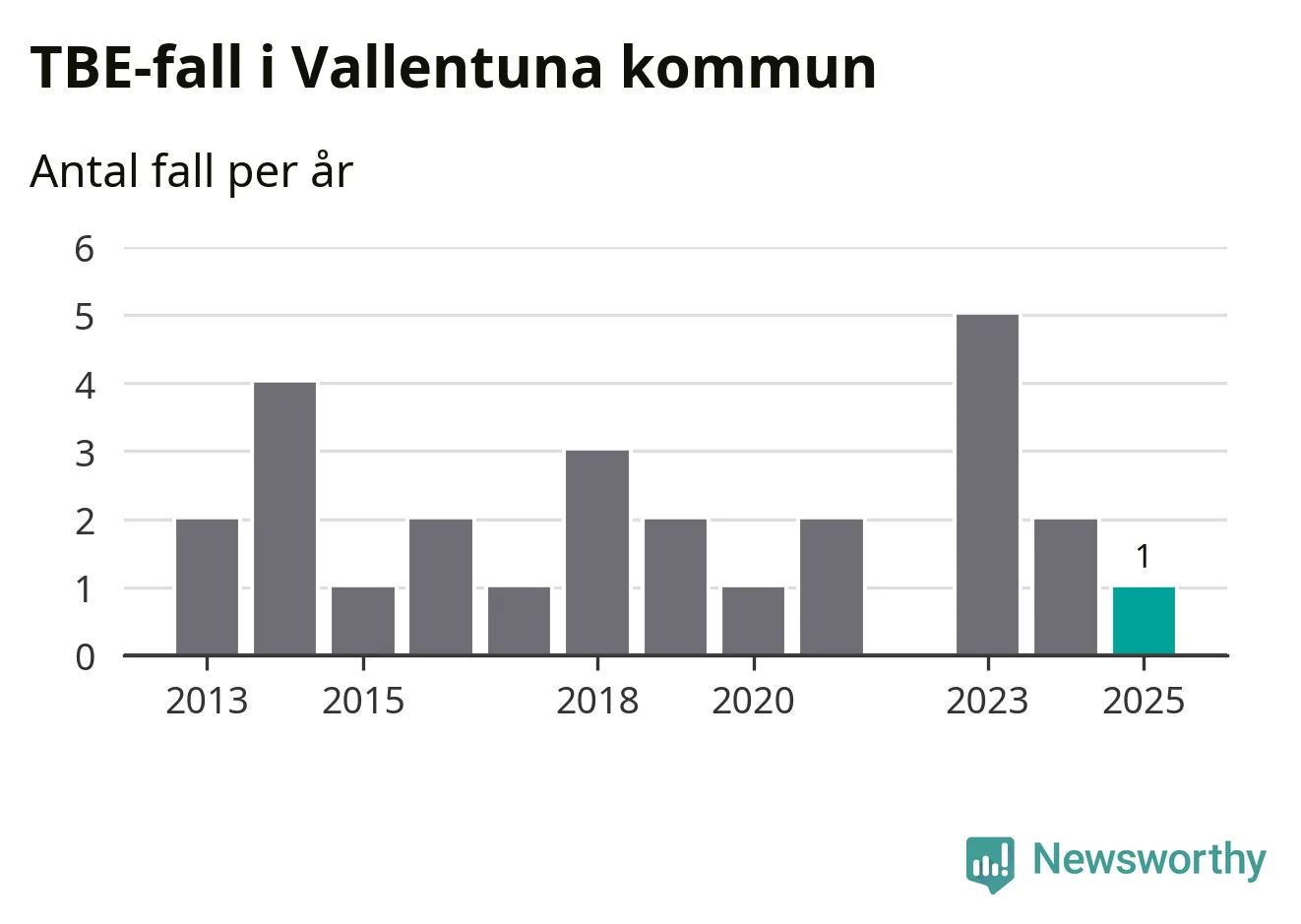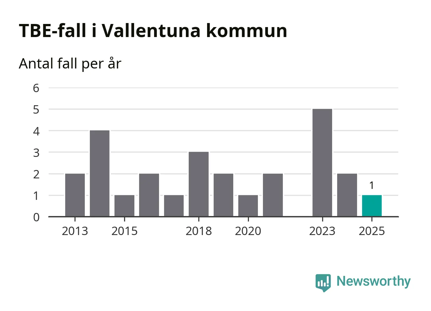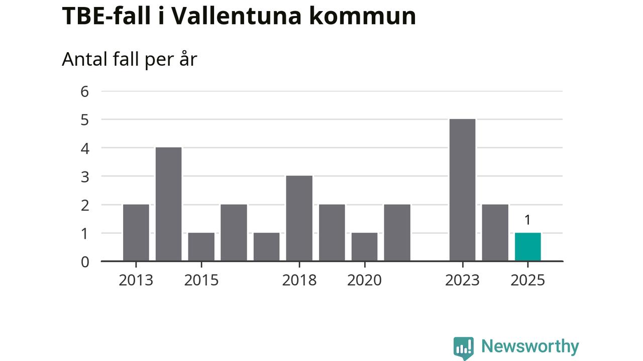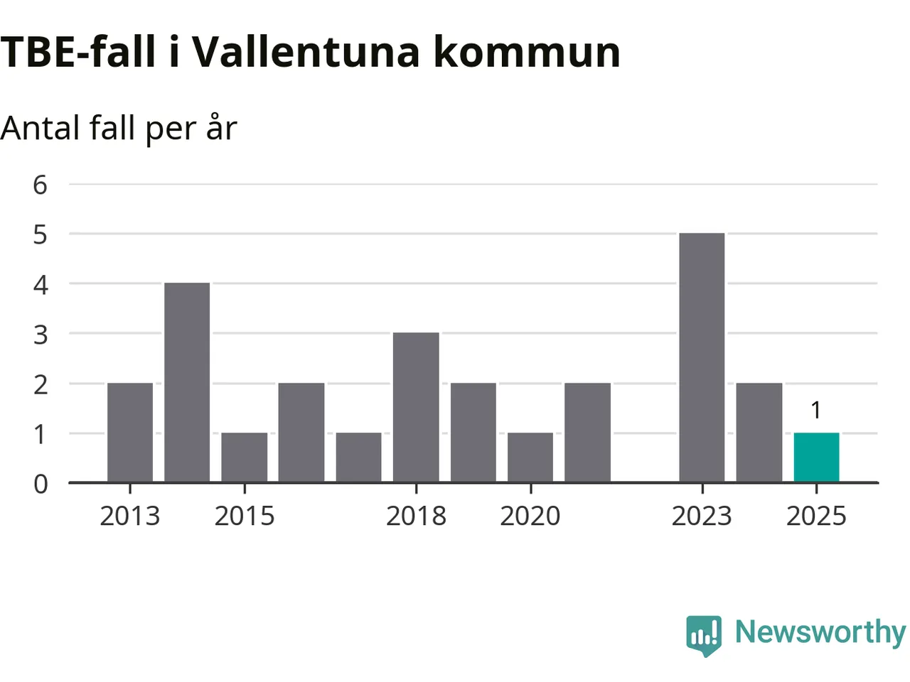 Under 2025 tillkom sju nya kommuner på den listan. Vallentuna kommun räknas till kommunerna med förhöjd förekomst av TBE. Det gör även resten av Stockholms län.