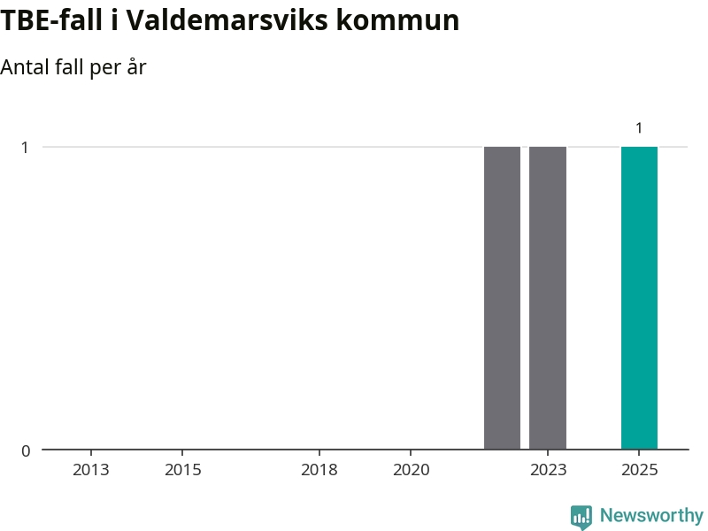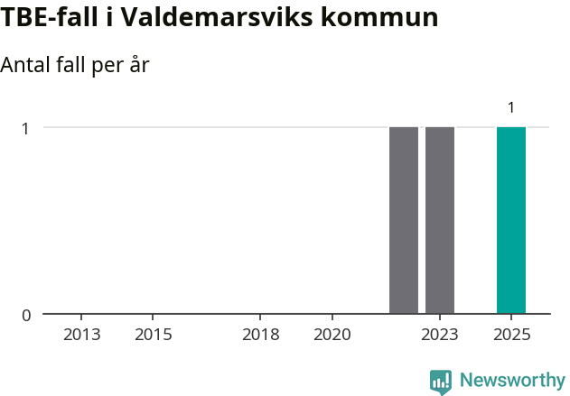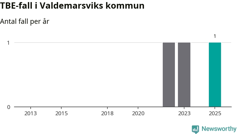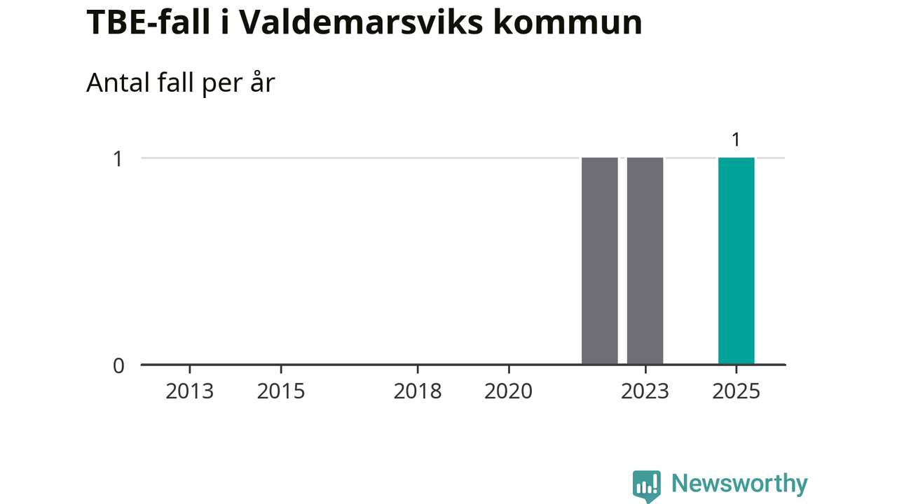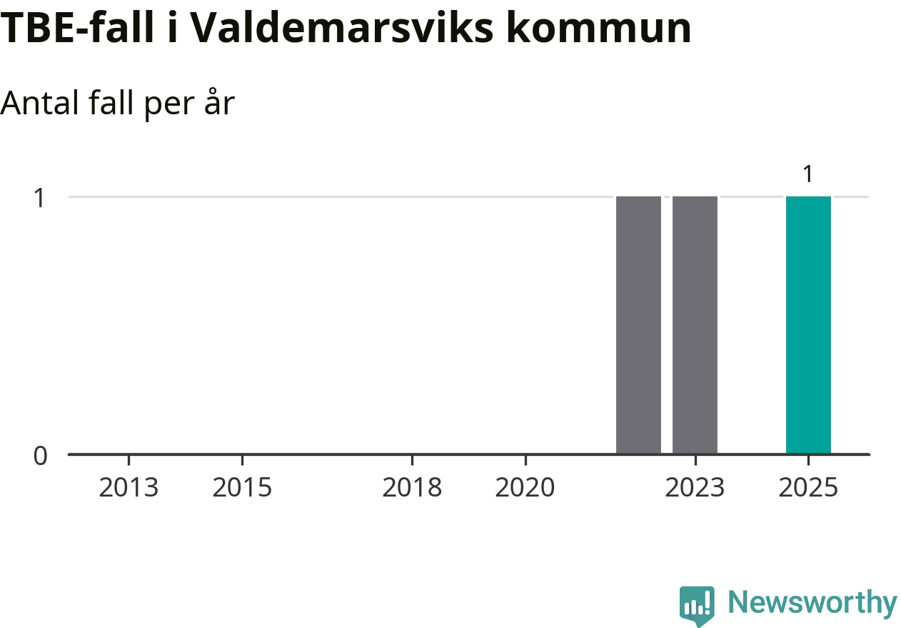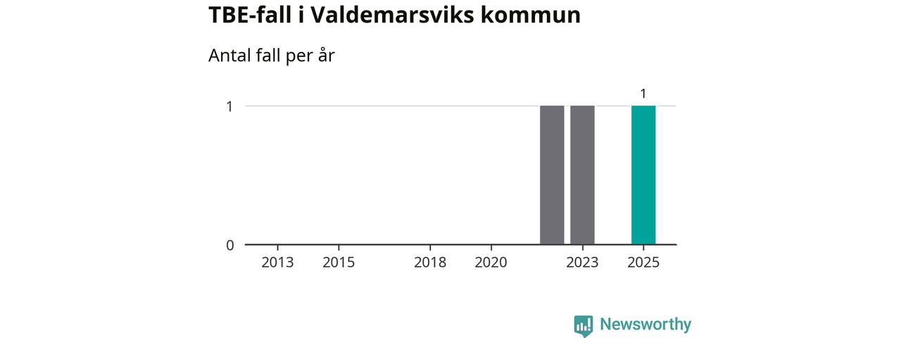 I Valdemarsviks kommun rapporterades totalt ett smittfall. Sedan 2013 har det rapporterats totalt tre fall i kommunen.