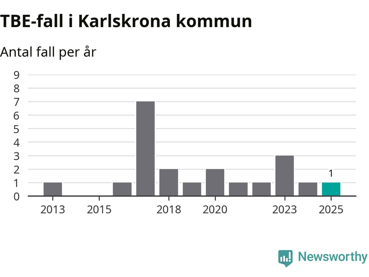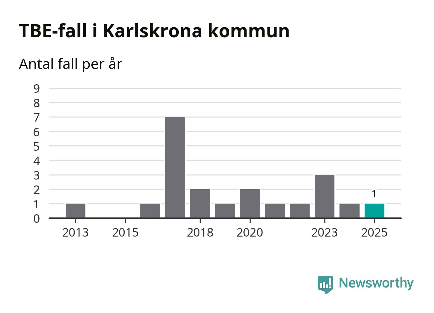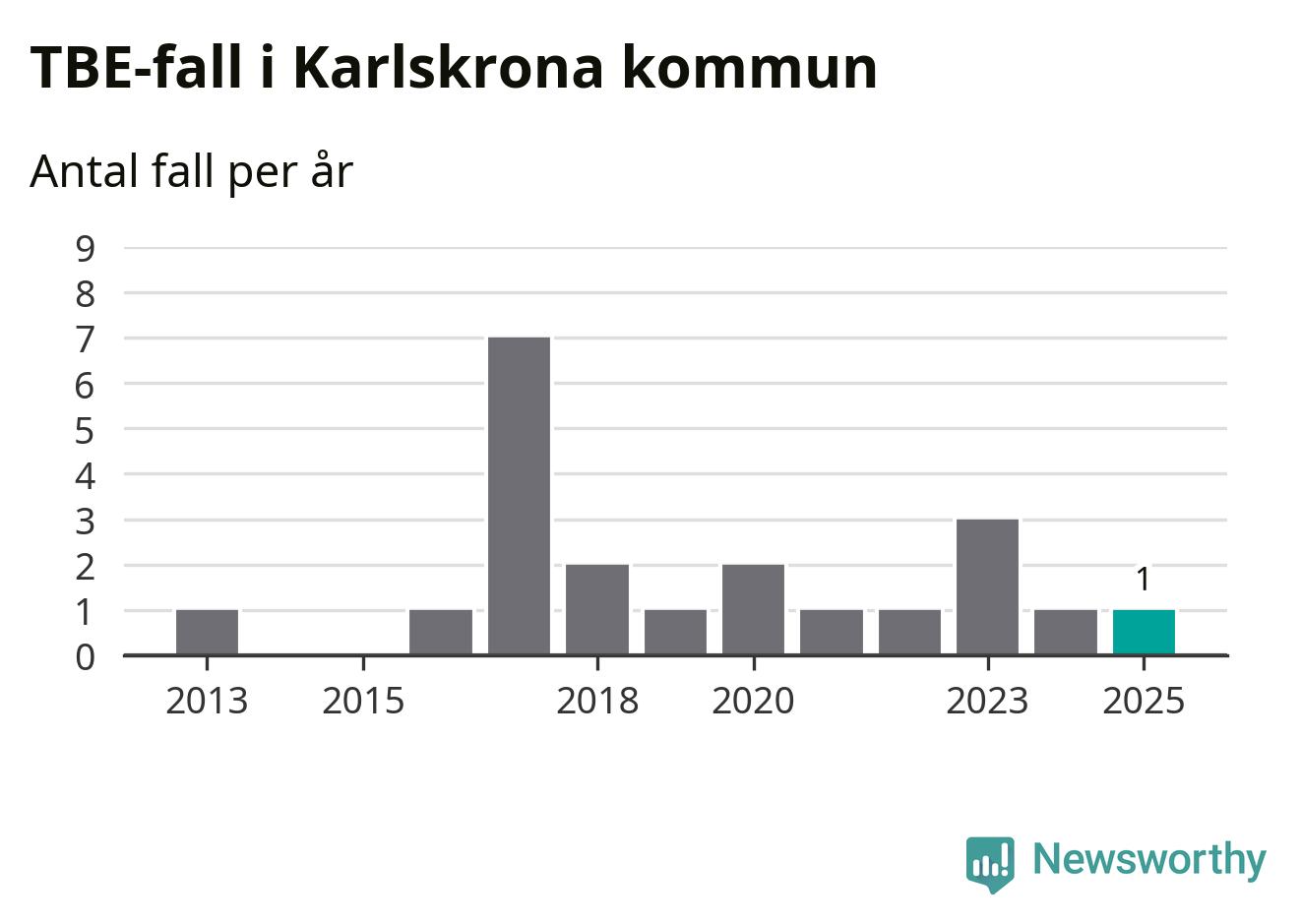 I Karlskrona kommun rapporterades totalt ett smittfall. Det är lika många som året innan.