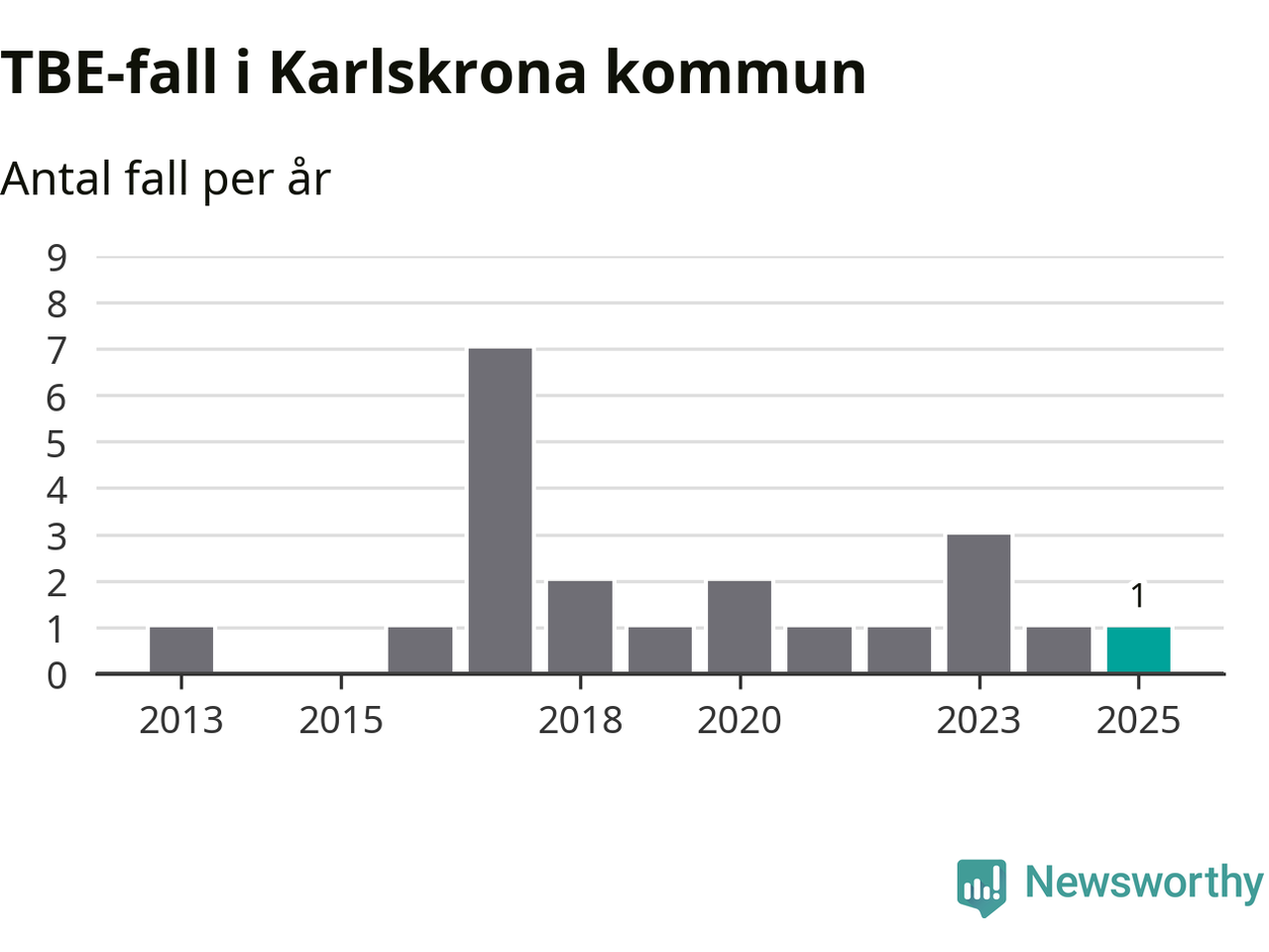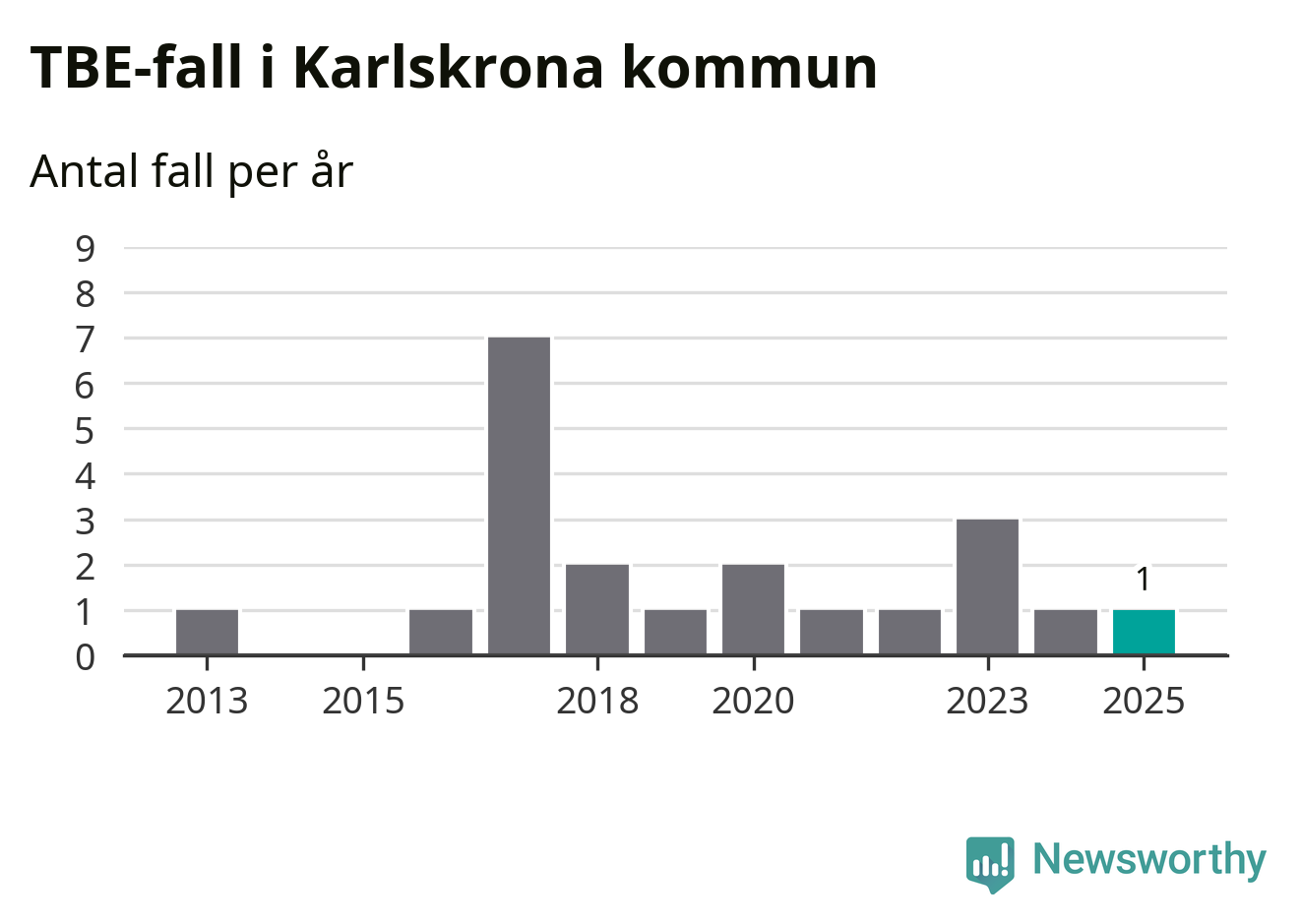 Den långsiktiga trenden är däremot tydlig. TBE-fallen blir allt fler i Sverige. Sett över tid har antalet anmälda fall i landet som helhet ökat med drygt sex procent per år sedan 2013. Totalt motsvarar det en ökning på 141 procent om vi jämför 2013 med 2025 års siffror.