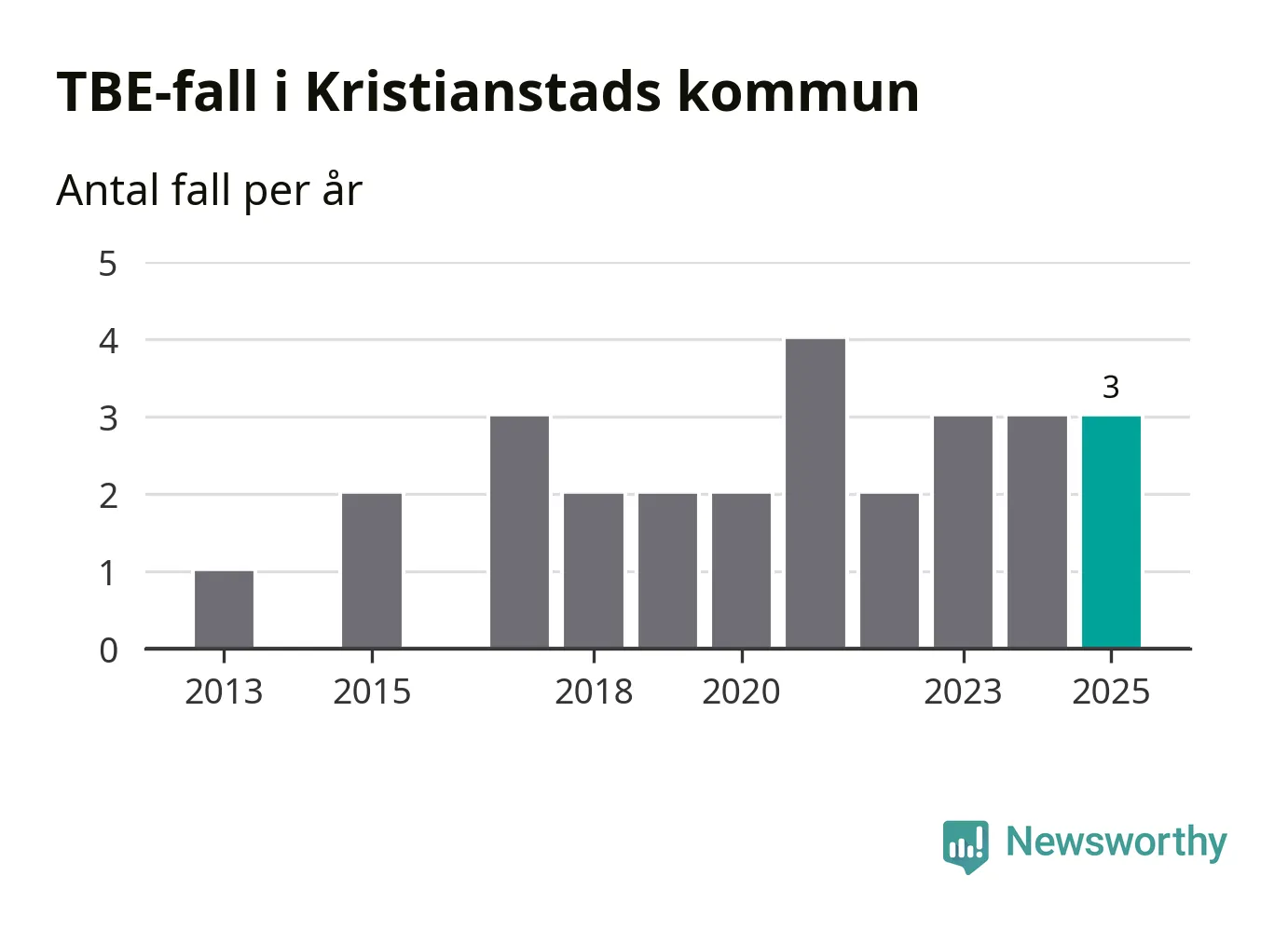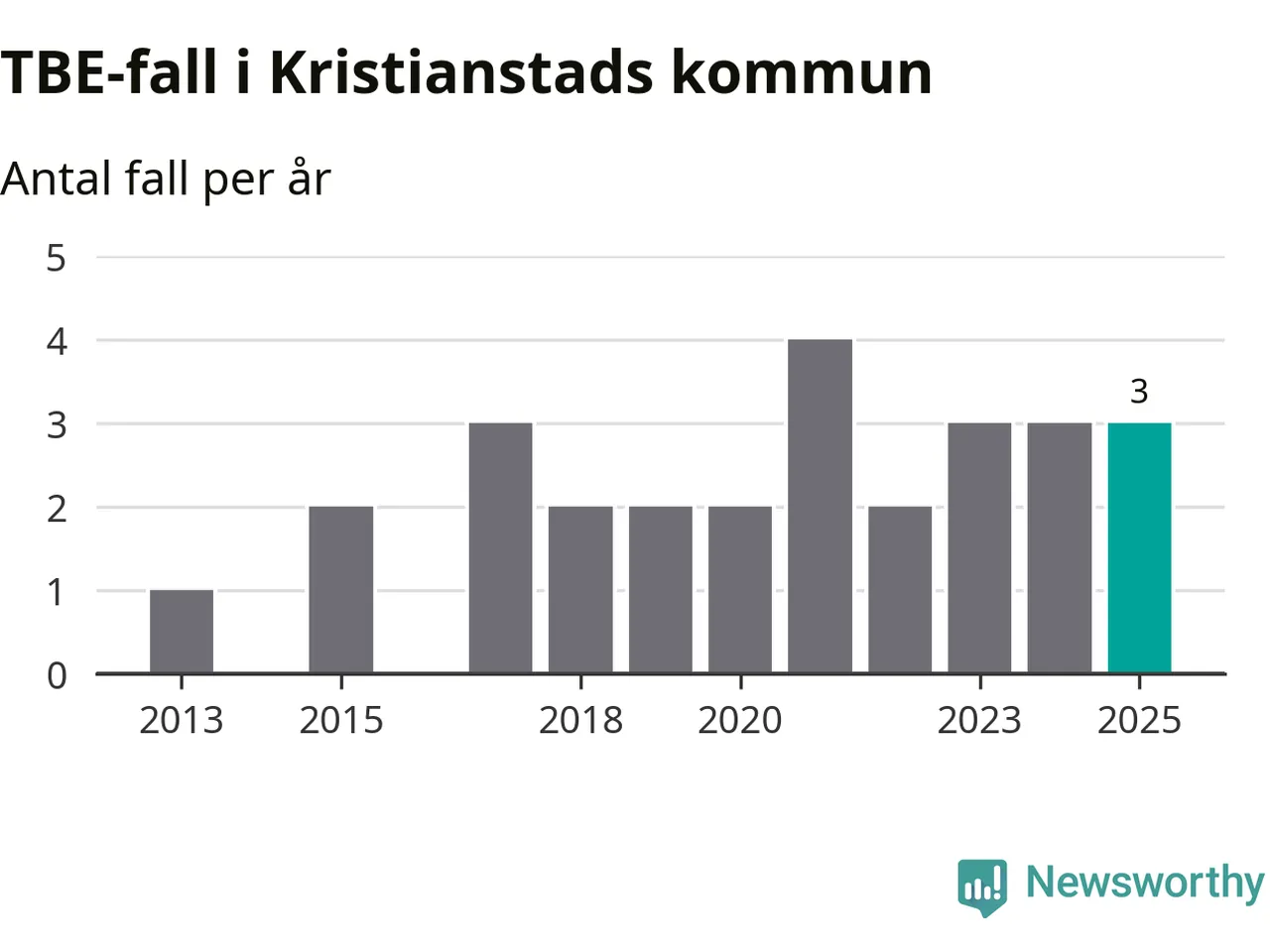 Den långsiktiga trenden är däremot tydlig. TBE-fallen blir allt fler i Sverige. Sett över tid har antalet anmälda fall i landet som helhet ökat med drygt sex procent per år sedan 2013. Totalt motsvarar det en ökning på 141 procent om vi jämför 2013 med 2025 års siffror.