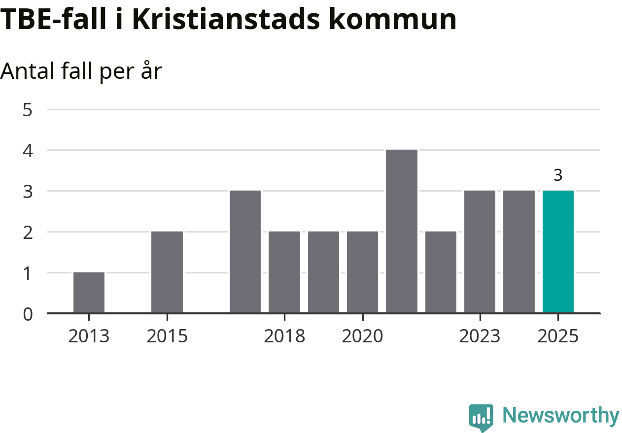 Under 2025 tillkom sju nya kommuner på den listan. Kristianstads kommun räknas till kommunerna med förhöjd förekomst av TBE.