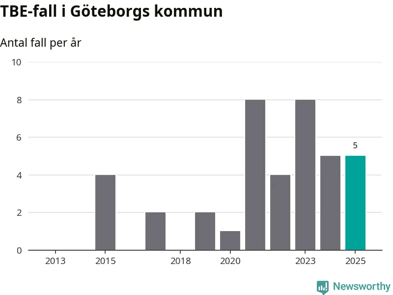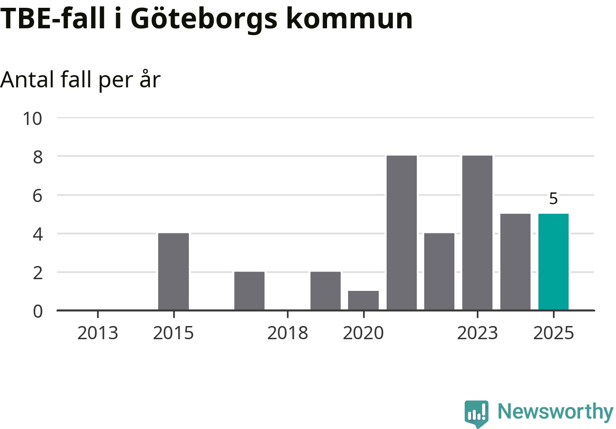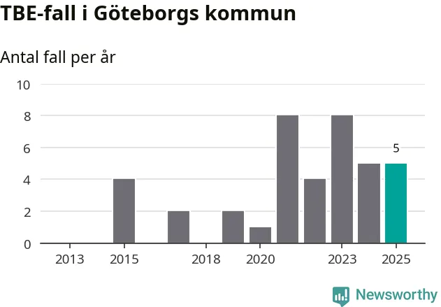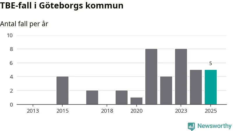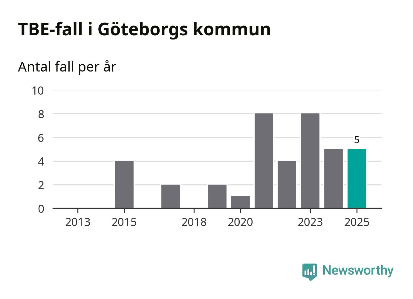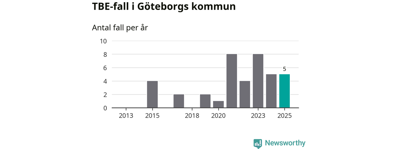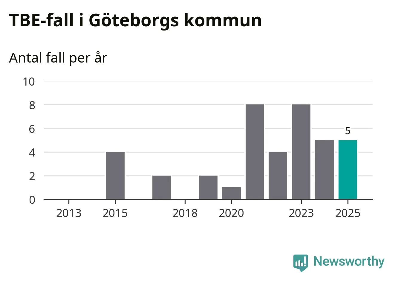 Under 2025 tillkom sju nya kommuner på den listan. Göteborgs kommun räknas till kommunerna med förhöjd förekomst av TBE. Det gör även resten av Västra Götalands län.