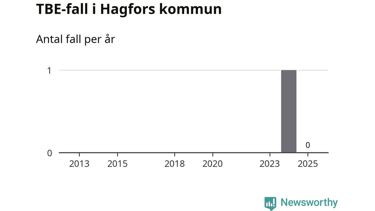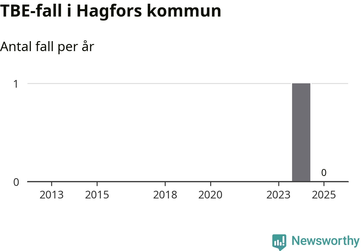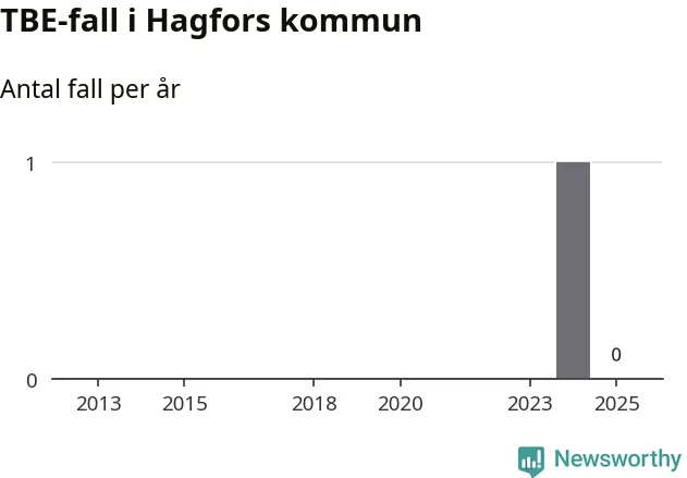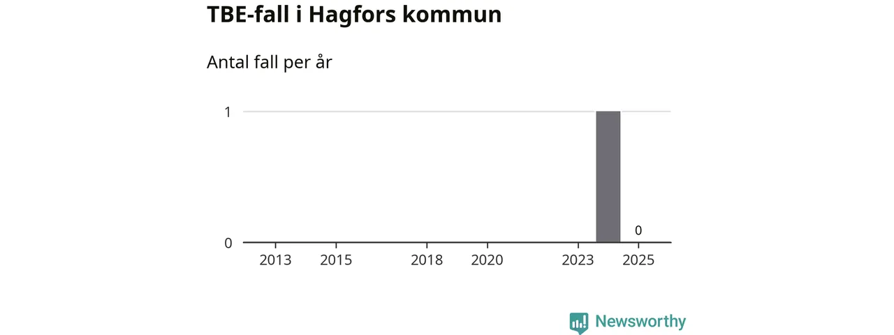 Inget TBE-fall rapporterades i Hagfors kommun under 2025. Det är en minskning sedan året innan, då ett fall rapporterades i kommunen.