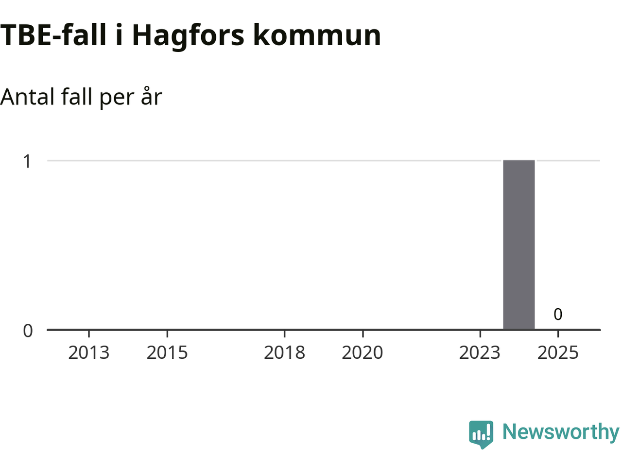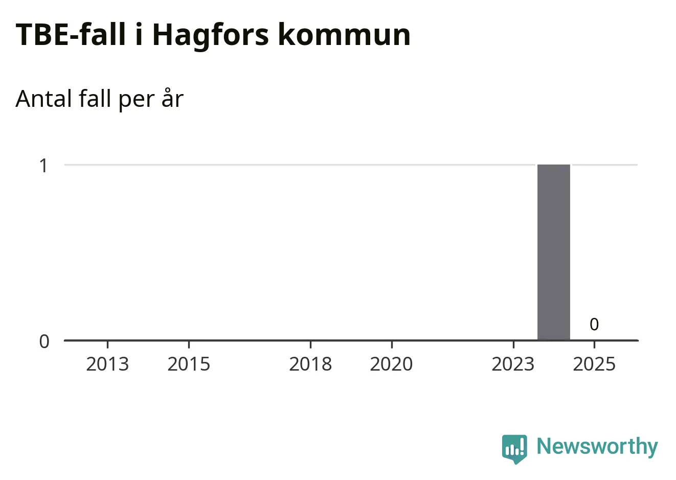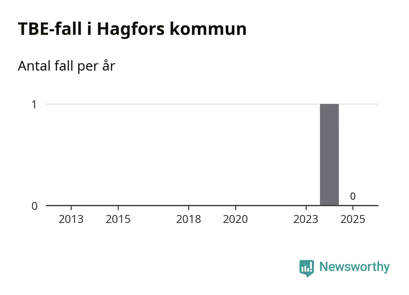 Inget TBE-fall rapporterades i Hagfors kommun under 2025. Det är en minskning sedan året innan, då ett fall rapporterades i kommunen.