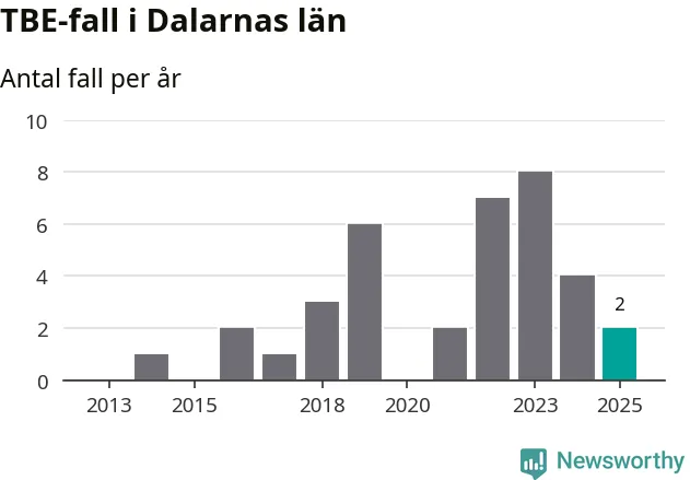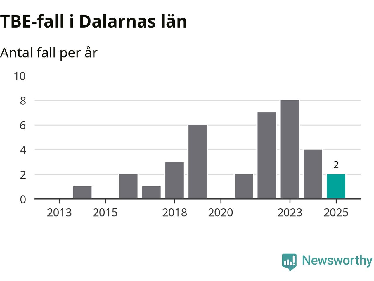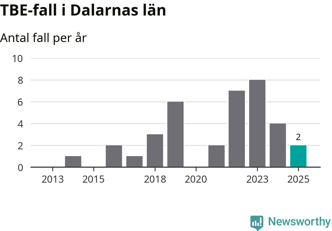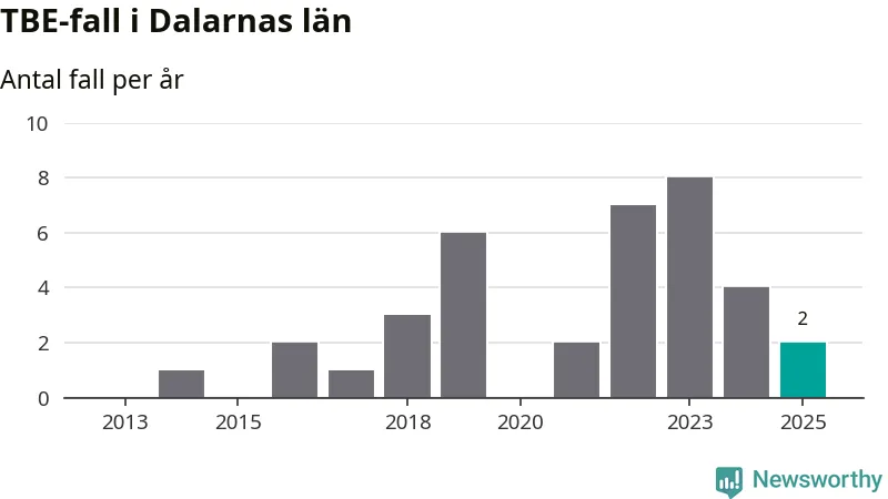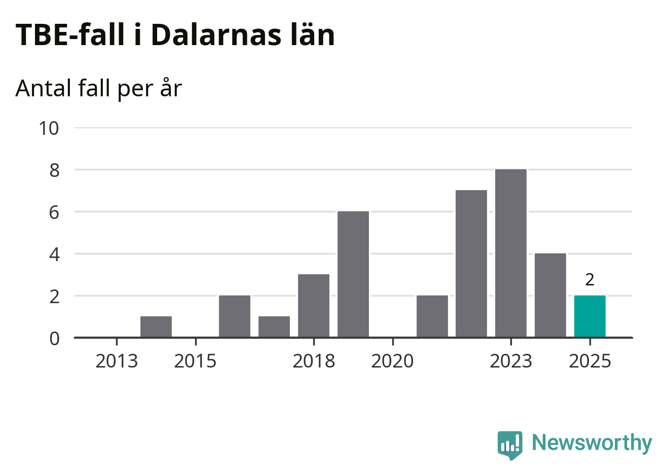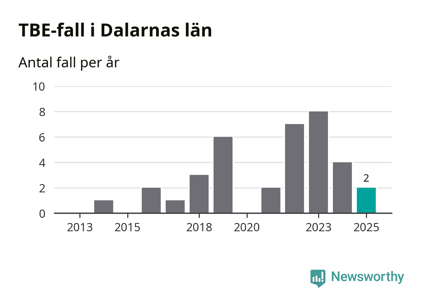 Under 2025 tillkom sju nya kommuner på den listan. Ingen del av Dalarnas län räknas ännu som ett område med förhöjd förekomst av TBE.