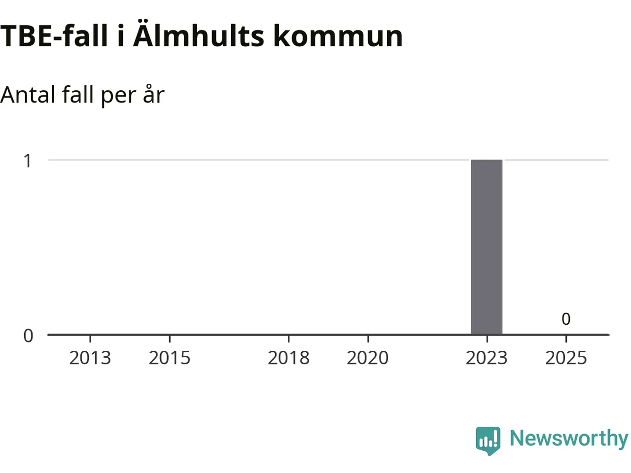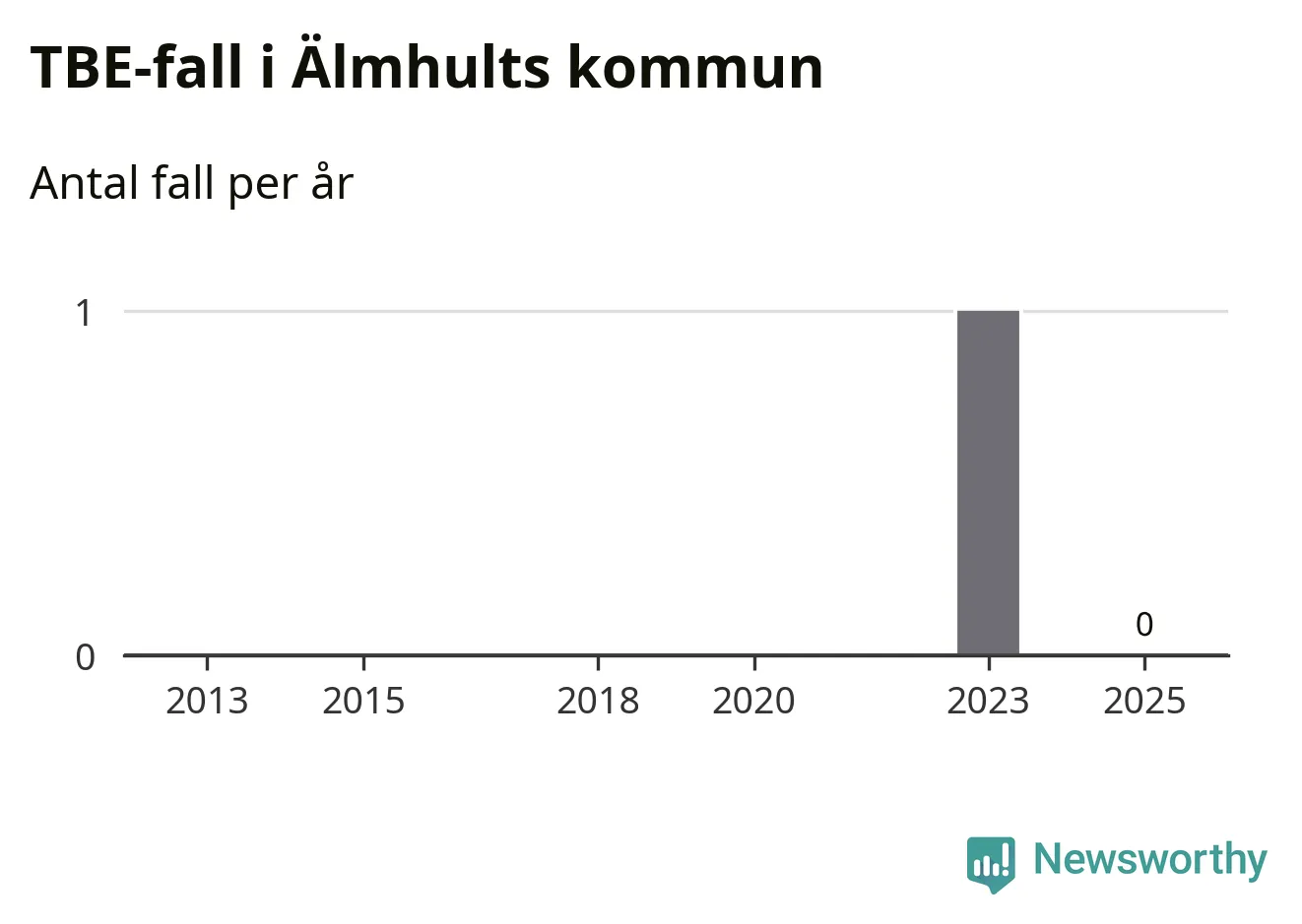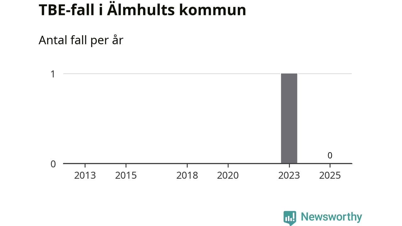 Inget TBE-fall rapporterades i Älmhults kommun under 2025. Inga TBE-fall har rapporterats i kommunen sedan 2023.