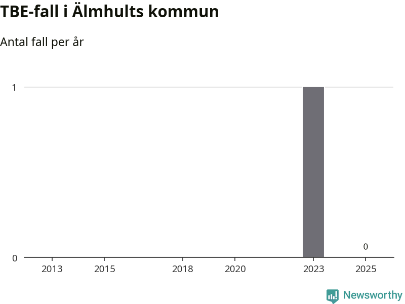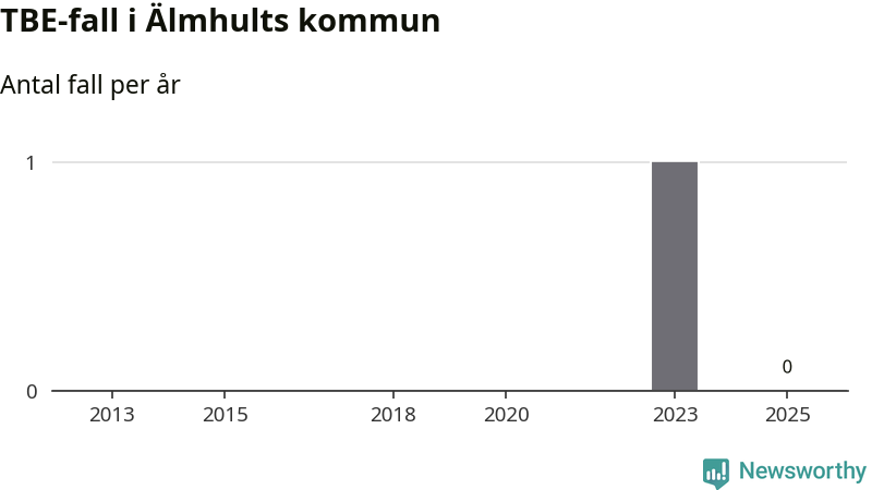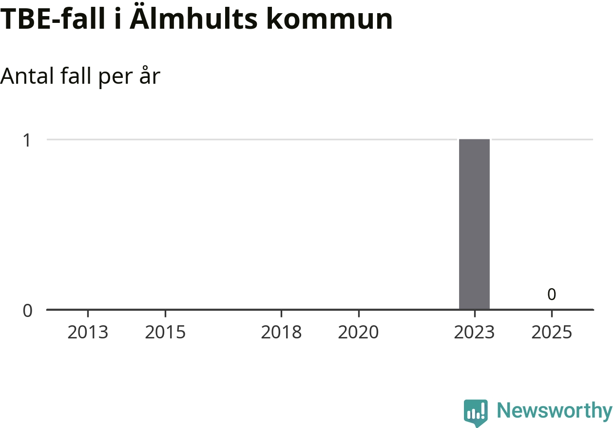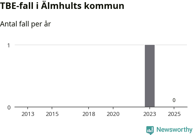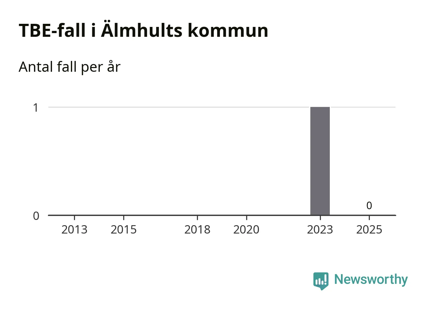 Inget TBE-fall rapporterades i Älmhults kommun under 2025. Inga TBE-fall har rapporterats i kommunen sedan 2023.