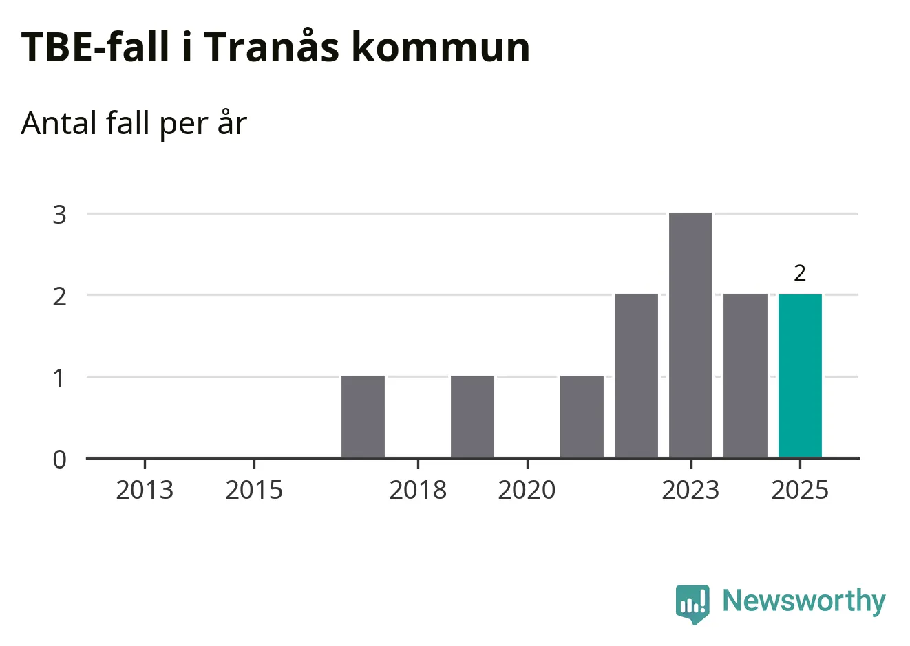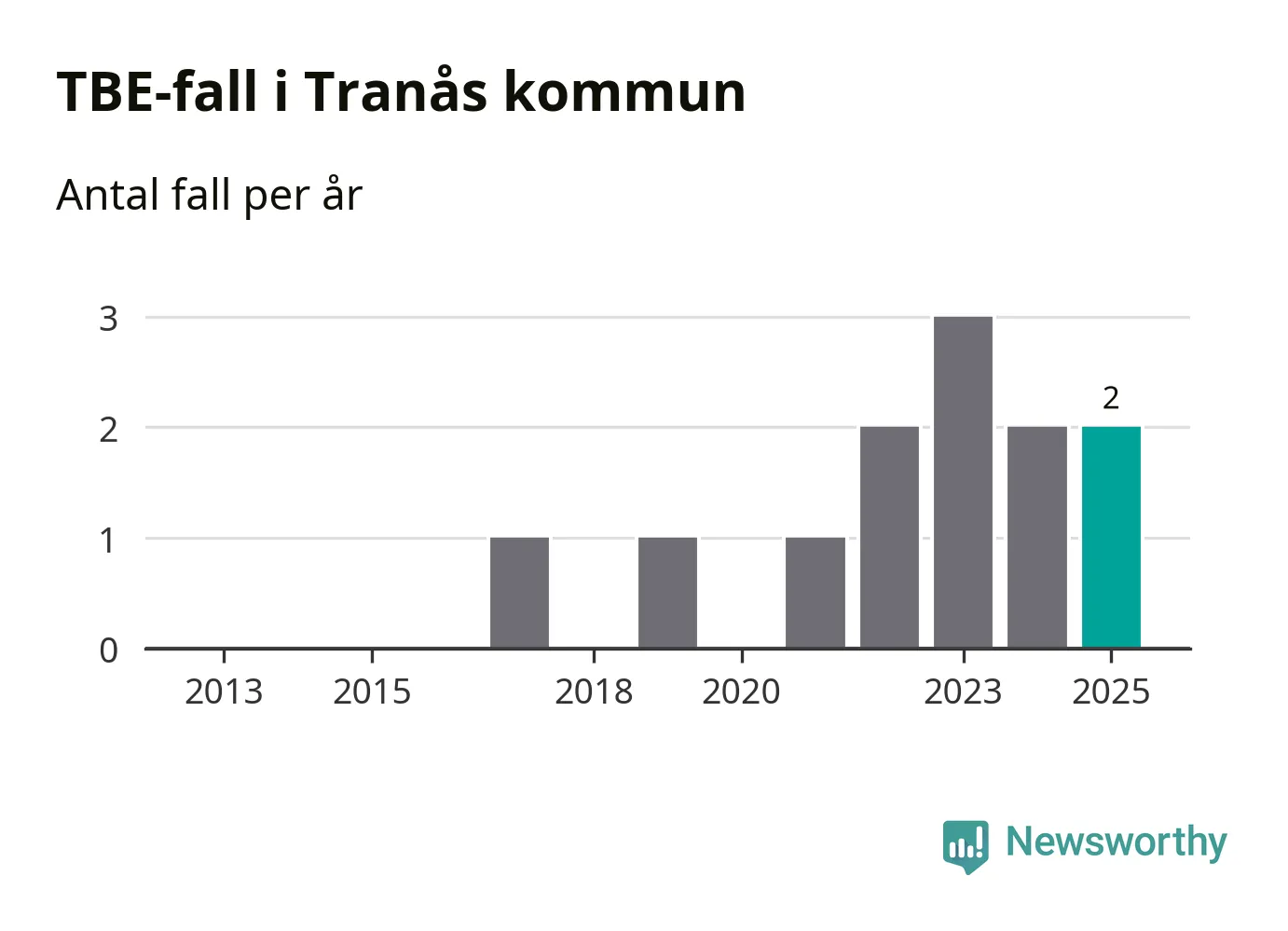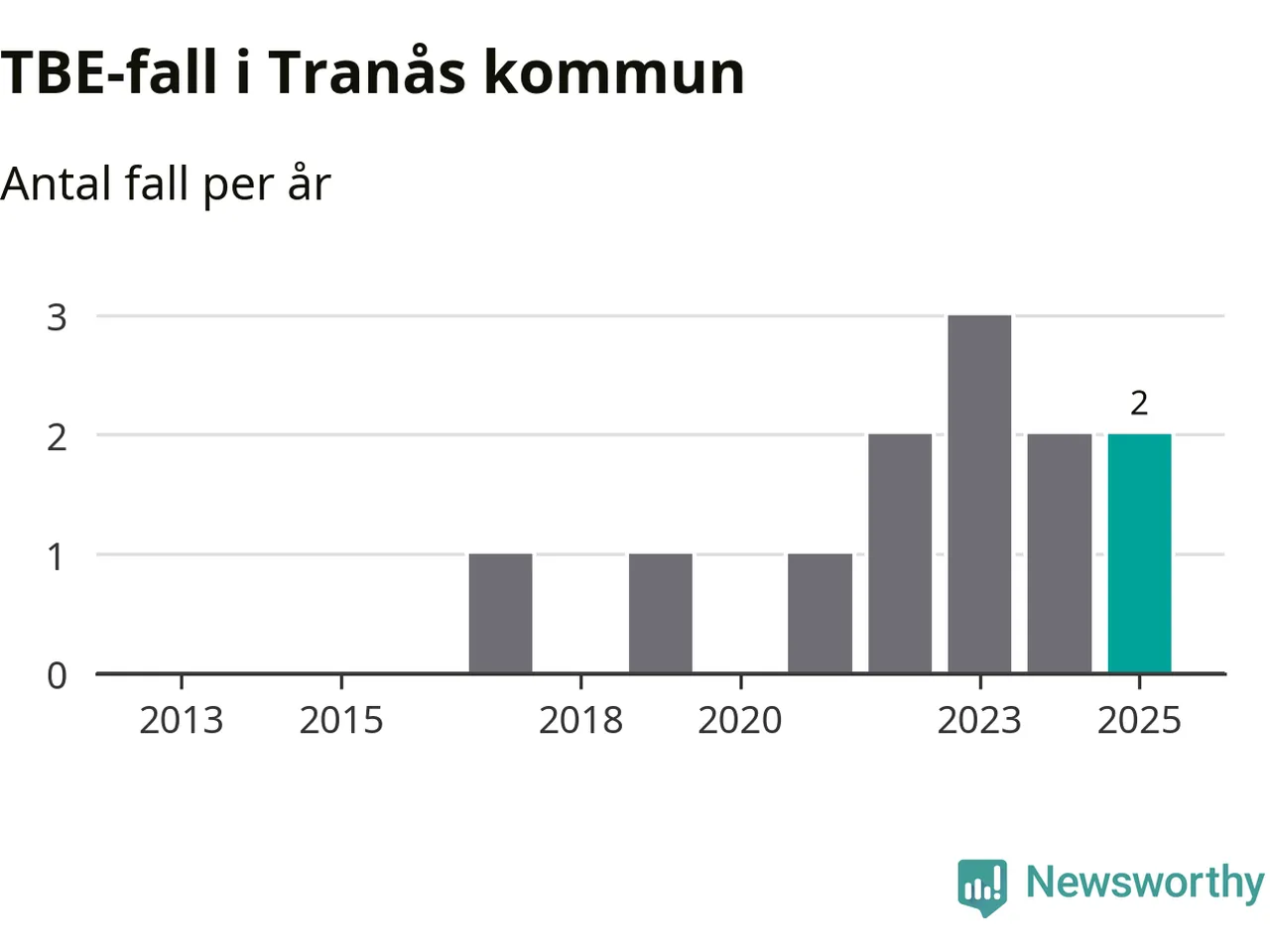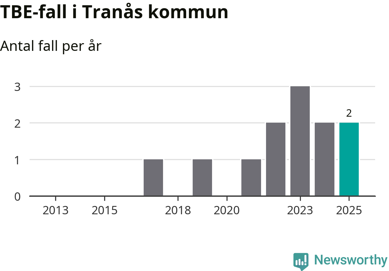I Tranås kommun rapporterades totalt två smittfall. Det är lika många som året innan.