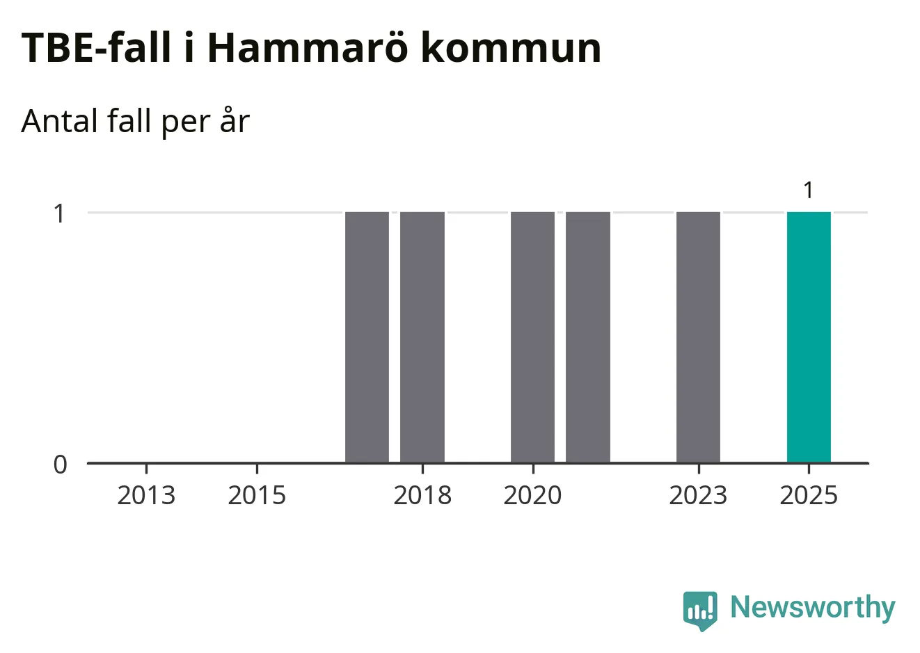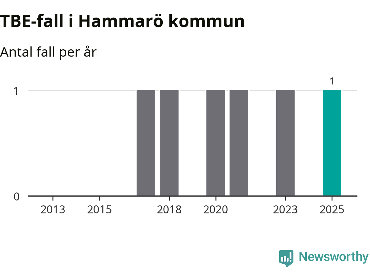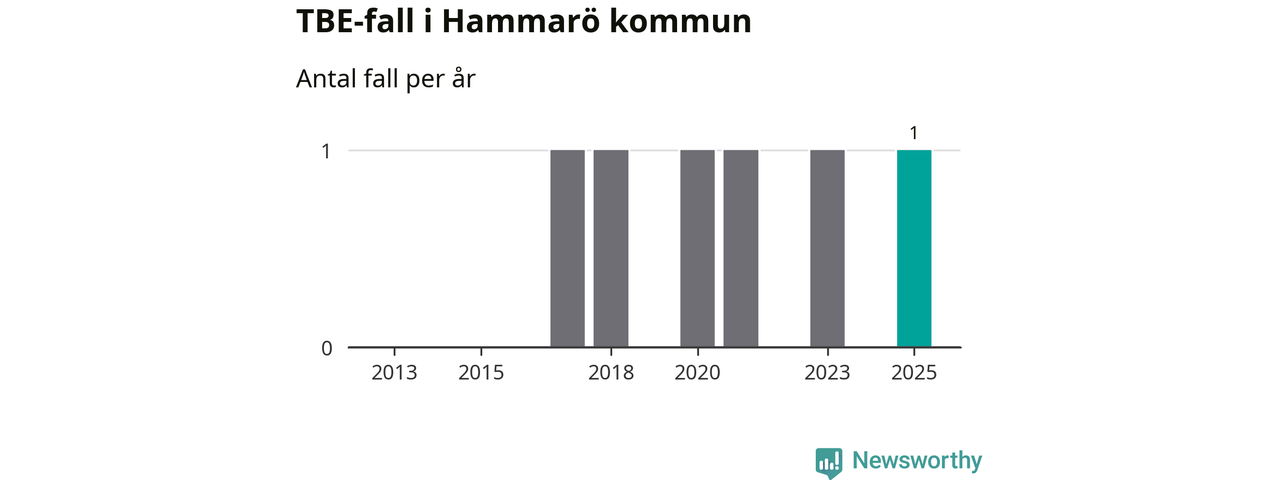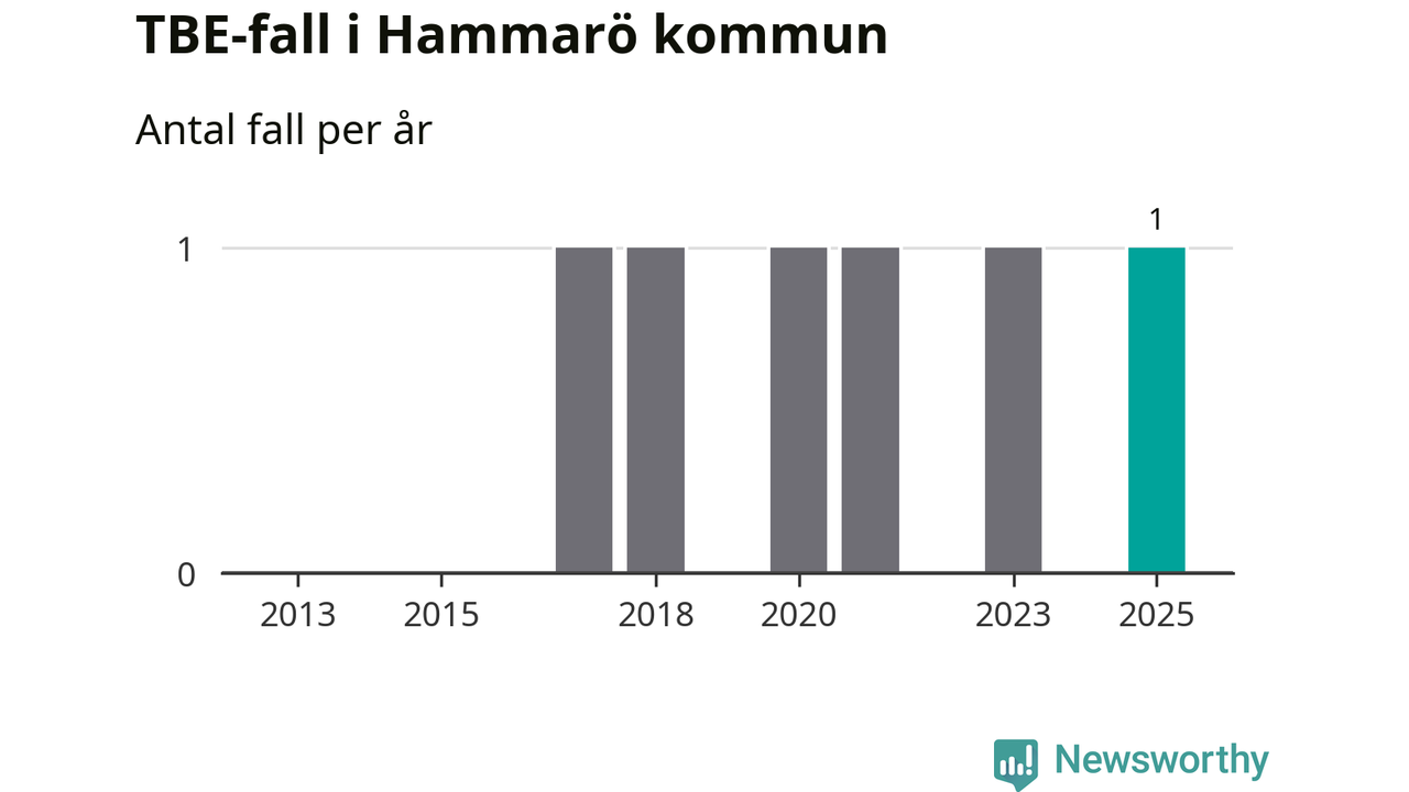 Den långsiktiga trenden är däremot tydlig. TBE-fallen blir allt fler i Sverige. Sett över tid har antalet anmälda fall i landet som helhet ökat med drygt sex procent per år sedan 2013. Totalt motsvarar det en ökning på 141 procent om vi jämför 2013 med 2025 års siffror.