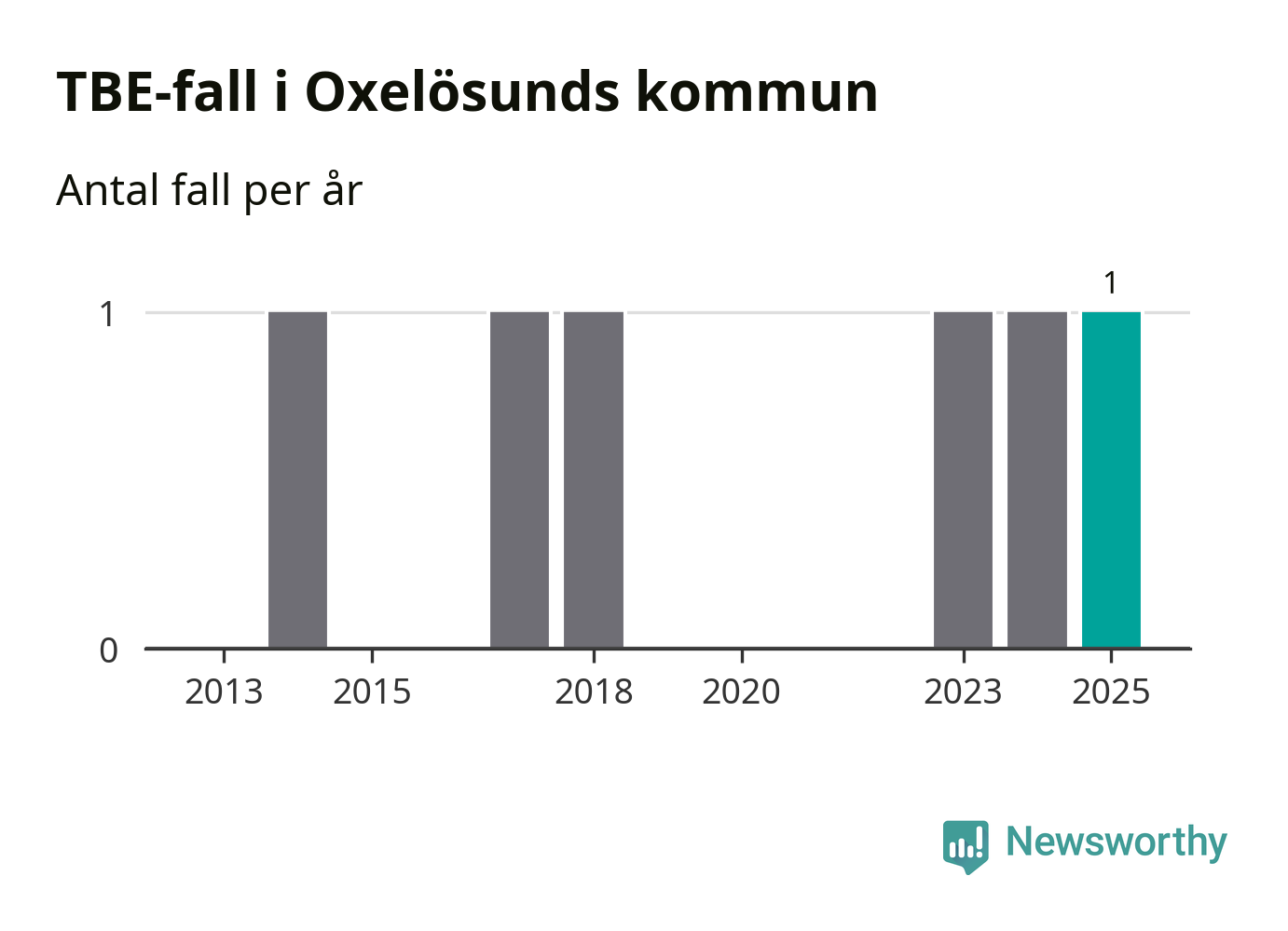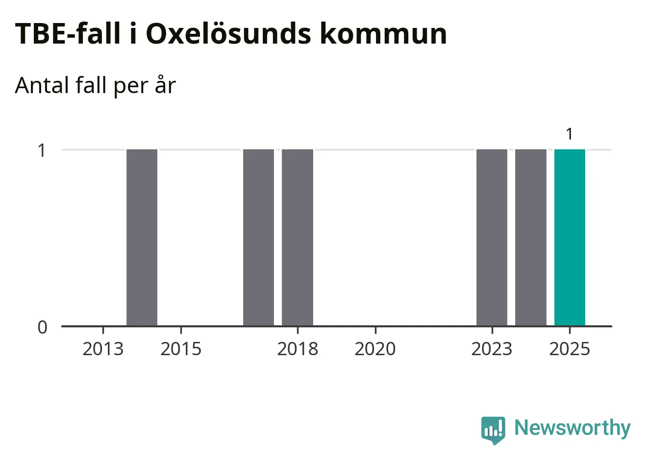 I Oxelösunds kommun rapporterades totalt ett smittfall. Det är lika många som året innan.