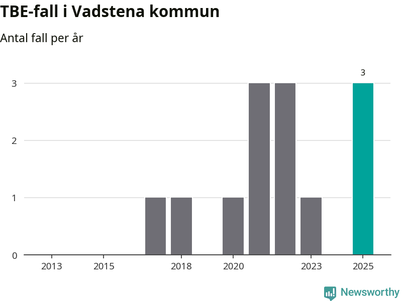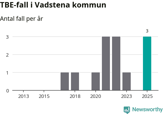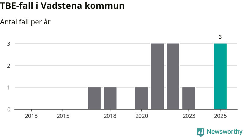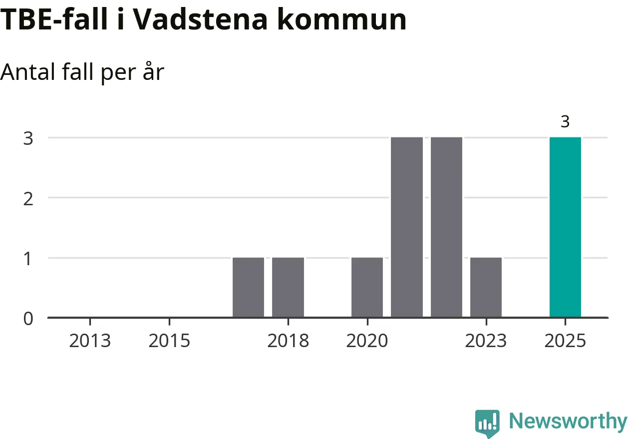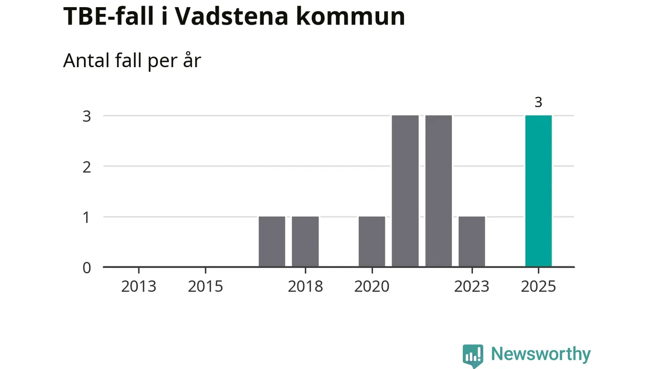 Under 2025 tillkom sju nya kommuner på den listan. Vadstena kommun räknas till kommunerna med förhöjd förekomst av TBE. Det gör även resten av Östergötlands län.
