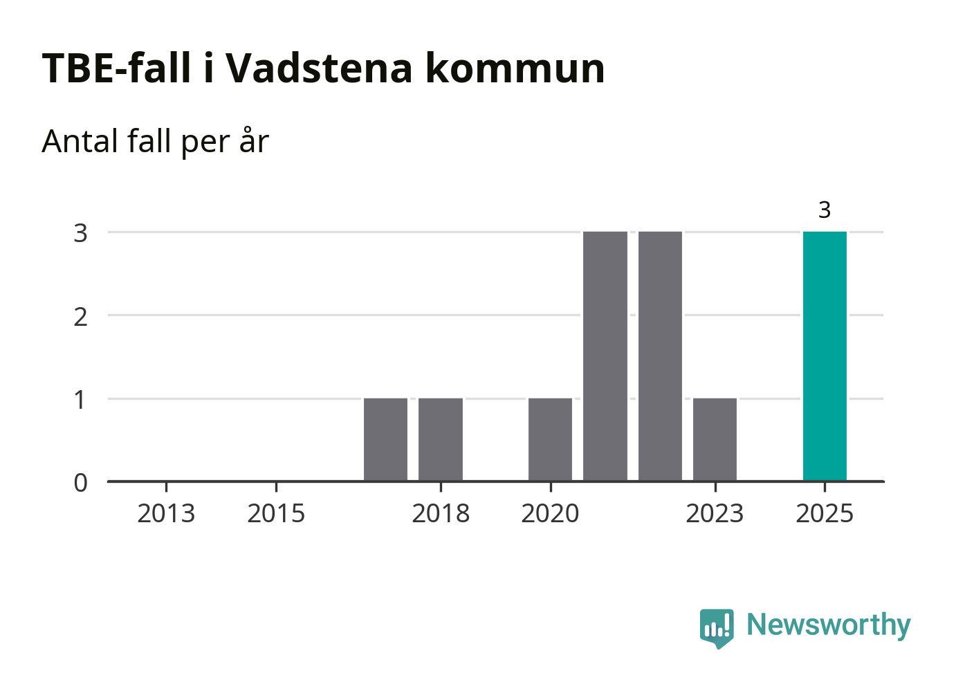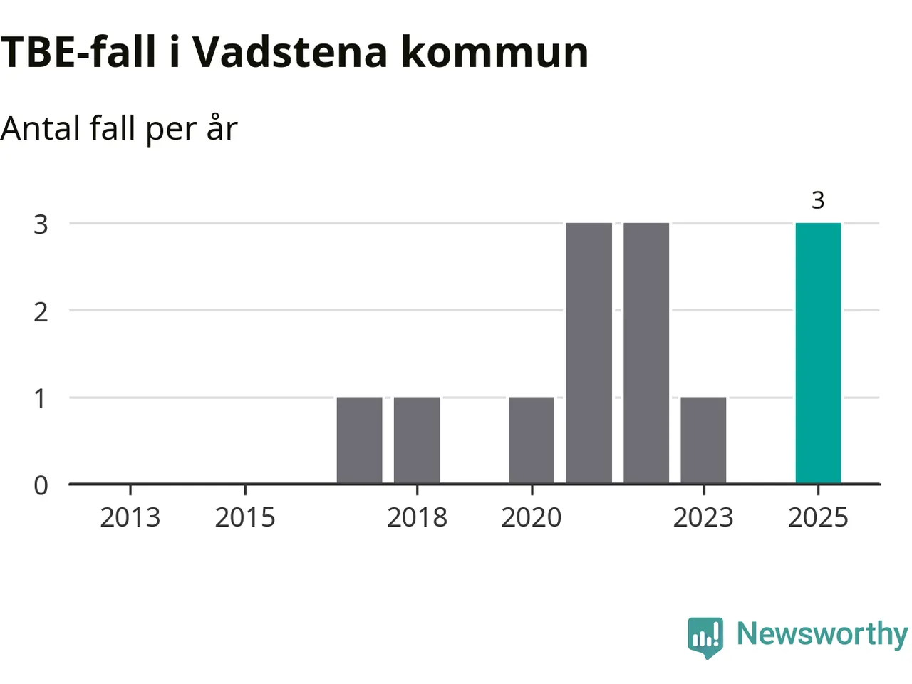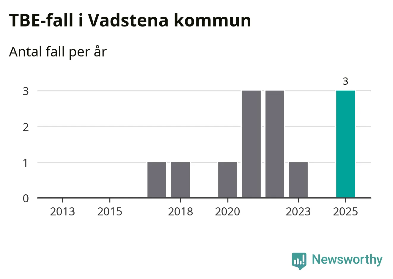 Den långsiktiga trenden är däremot tydlig. TBE-fallen blir allt fler i Sverige. Sett över tid har antalet anmälda fall i landet som helhet ökat med drygt sex procent per år sedan 2013. Totalt motsvarar det en ökning på 141 procent om vi jämför 2013 med 2025 års siffror.