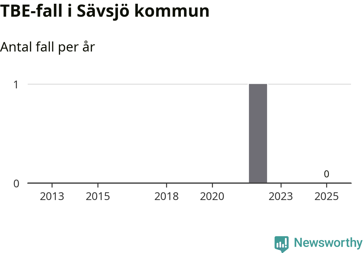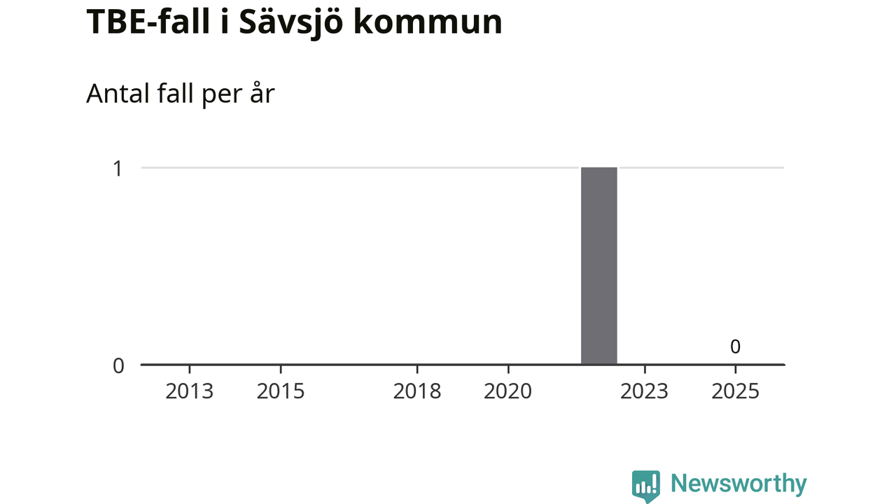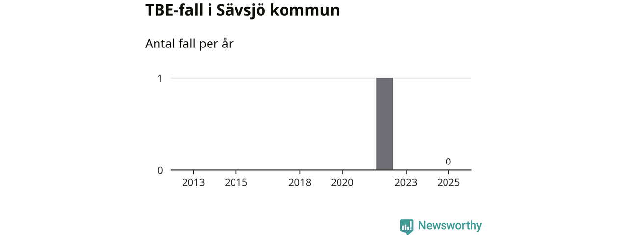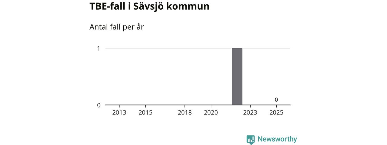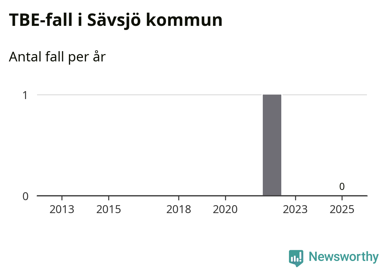 Inget TBE-fall rapporterades i Sävsjö kommun under 2025. Inga TBE-fall har rapporterats i kommunen sedan 2022.