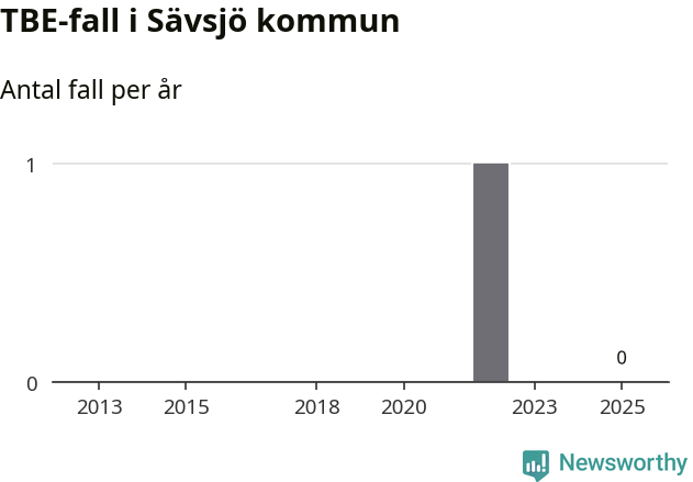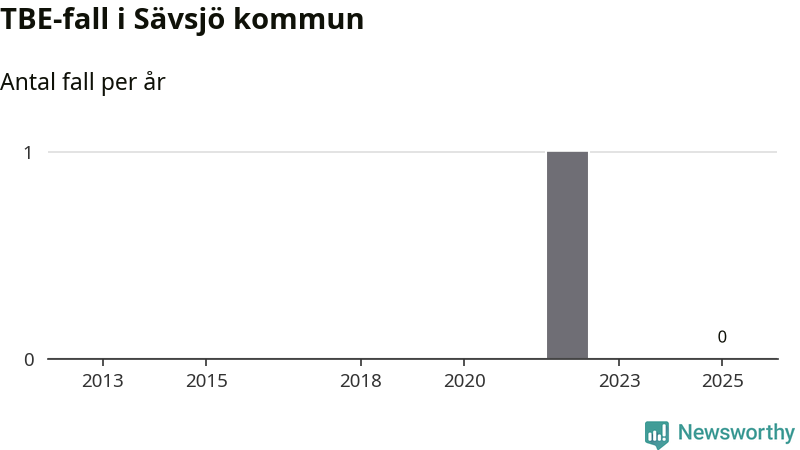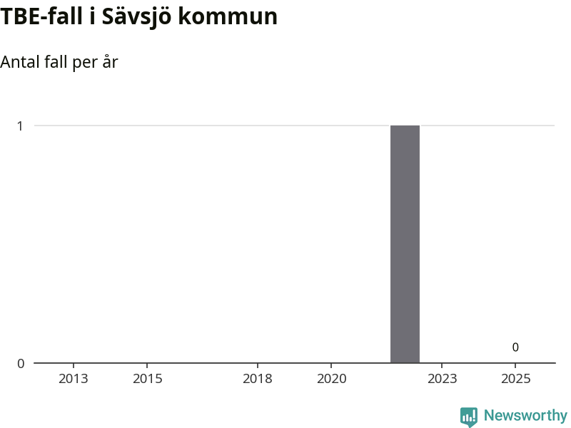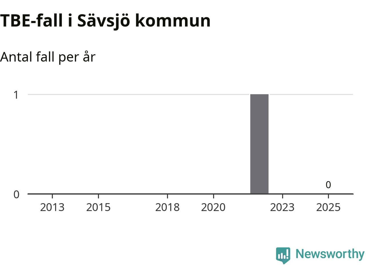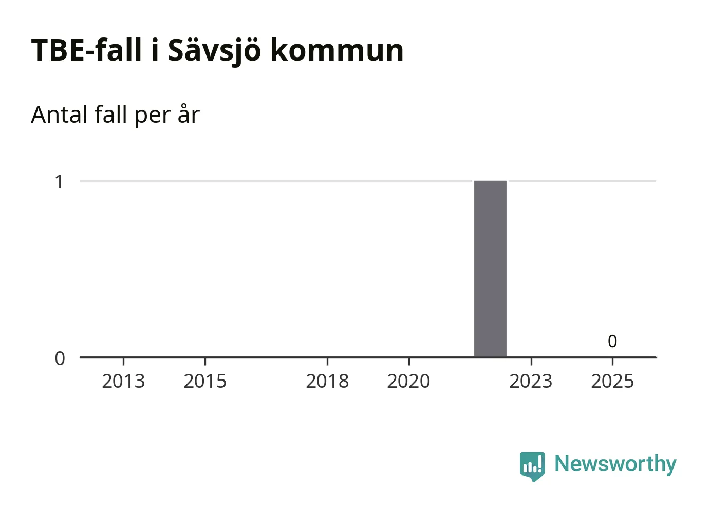 Inget TBE-fall rapporterades i Sävsjö kommun under 2025. Inga TBE-fall har rapporterats i kommunen sedan 2022.
