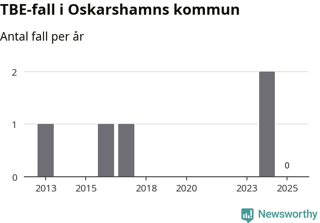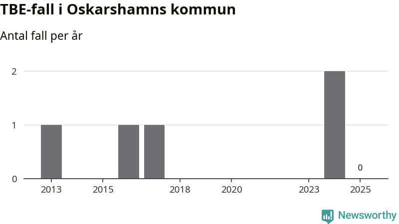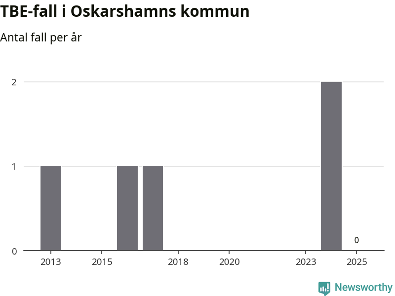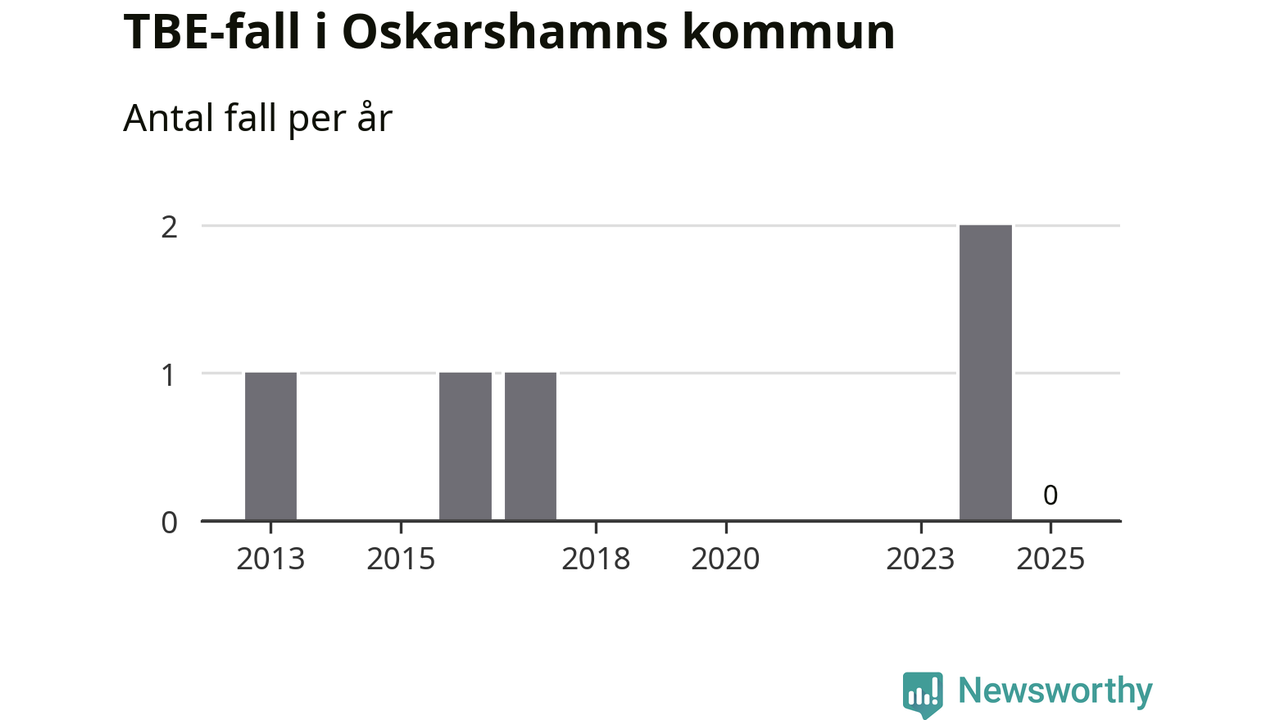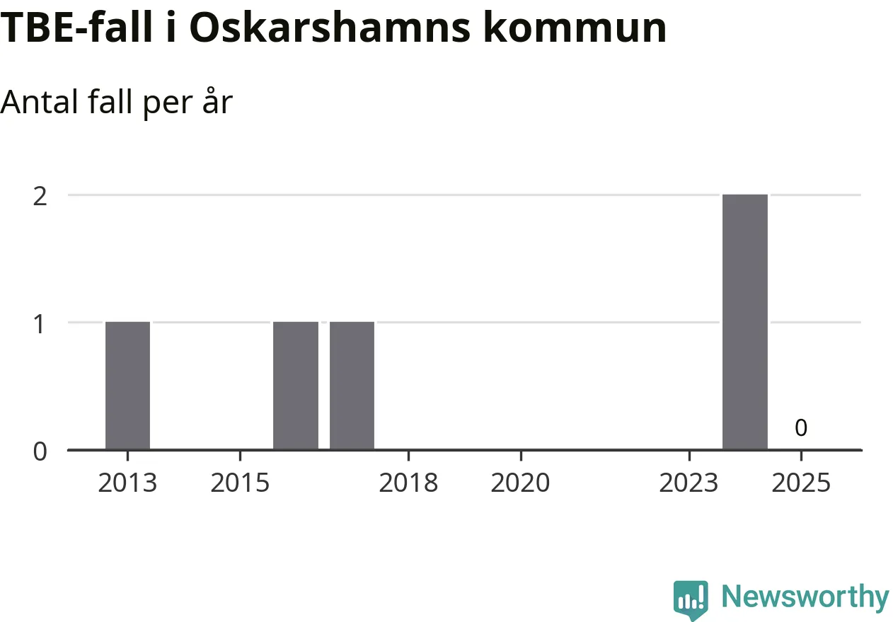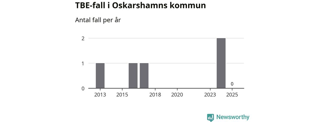 Inget TBE-fall rapporterades i Oskarshamns kommun under 2025. Det är en minskning sedan året innan, då två fall rapporterades i kommunen.