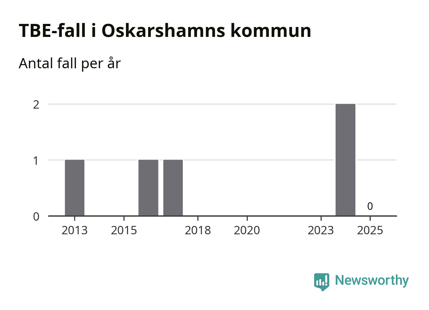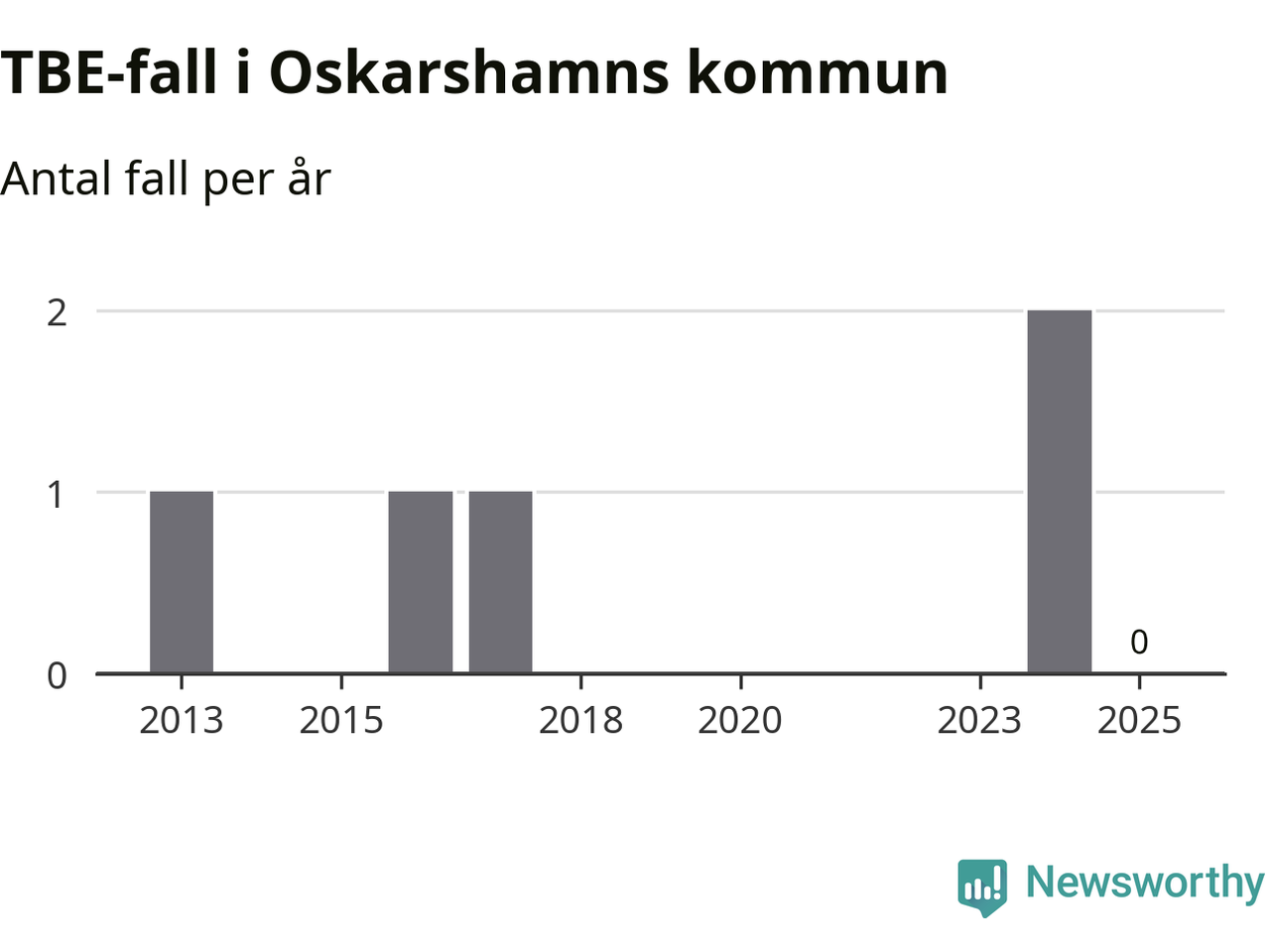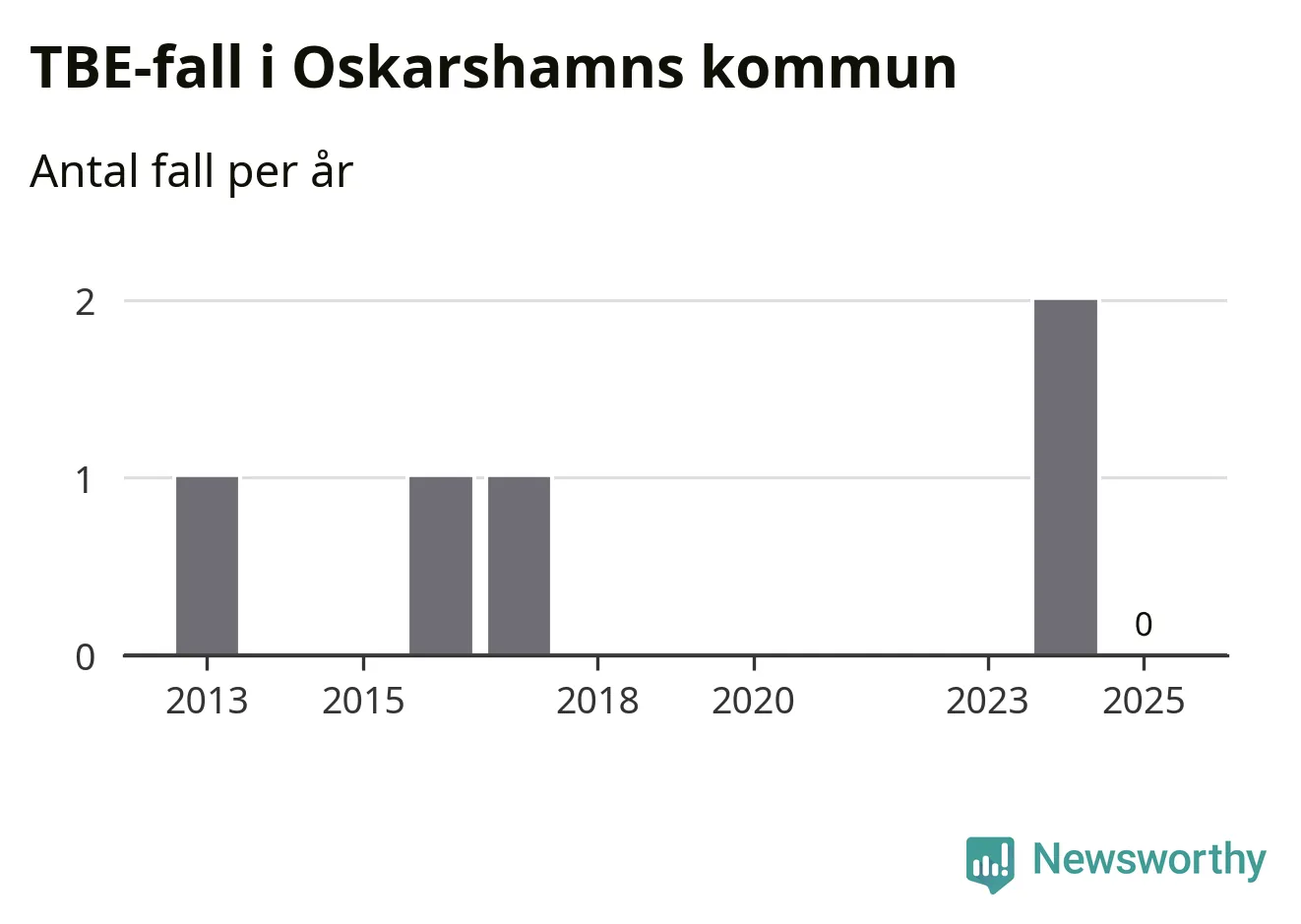 Inget TBE-fall rapporterades i Oskarshamns kommun under 2025. Det är en minskning sedan året innan, då två fall rapporterades i kommunen.