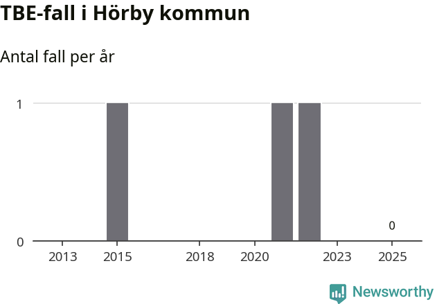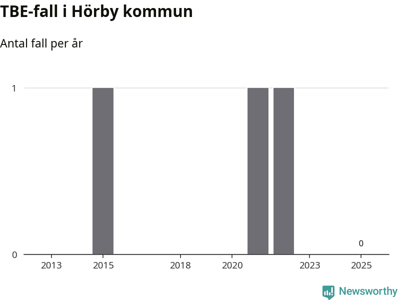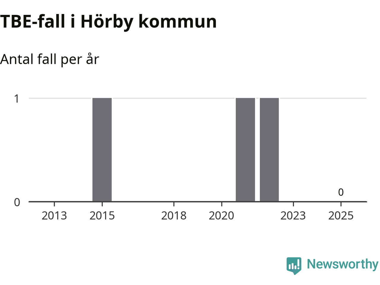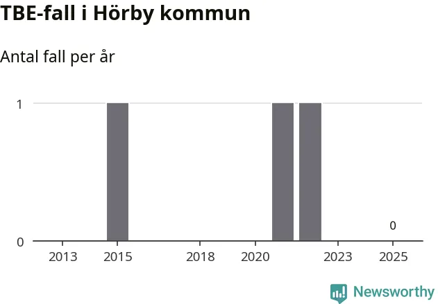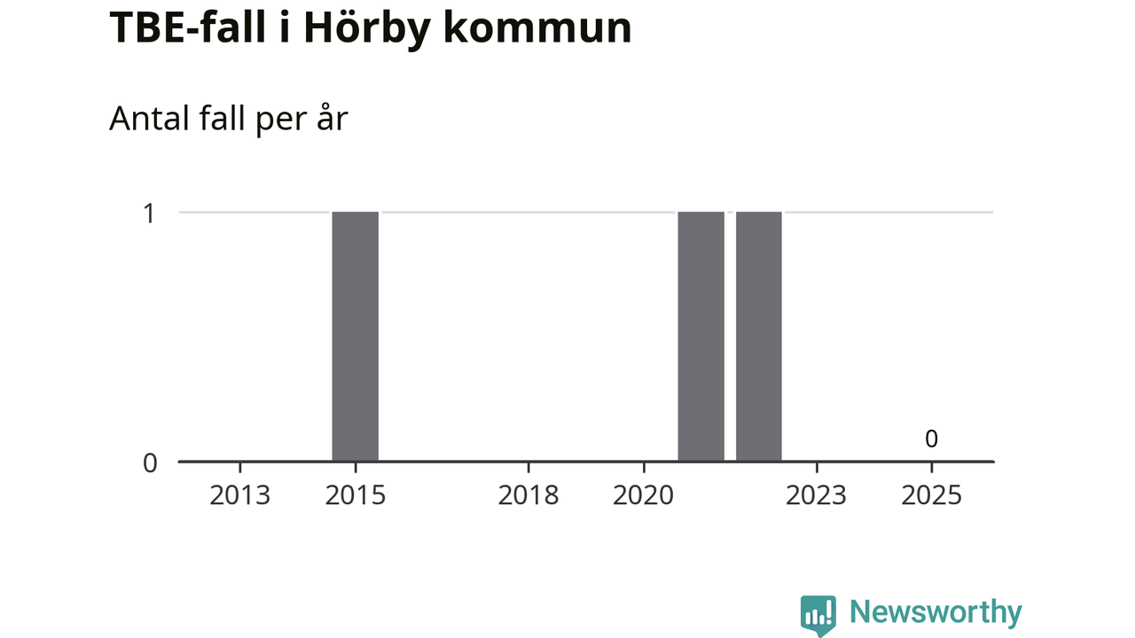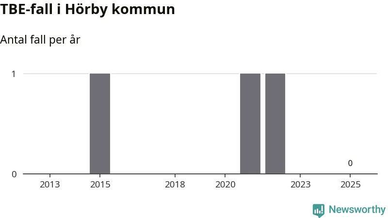 Inget TBE-fall rapporterades i Hörby kommun under 2025. Inga TBE-fall har rapporterats i kommunen sedan 2022.