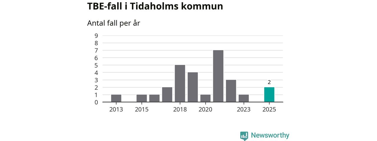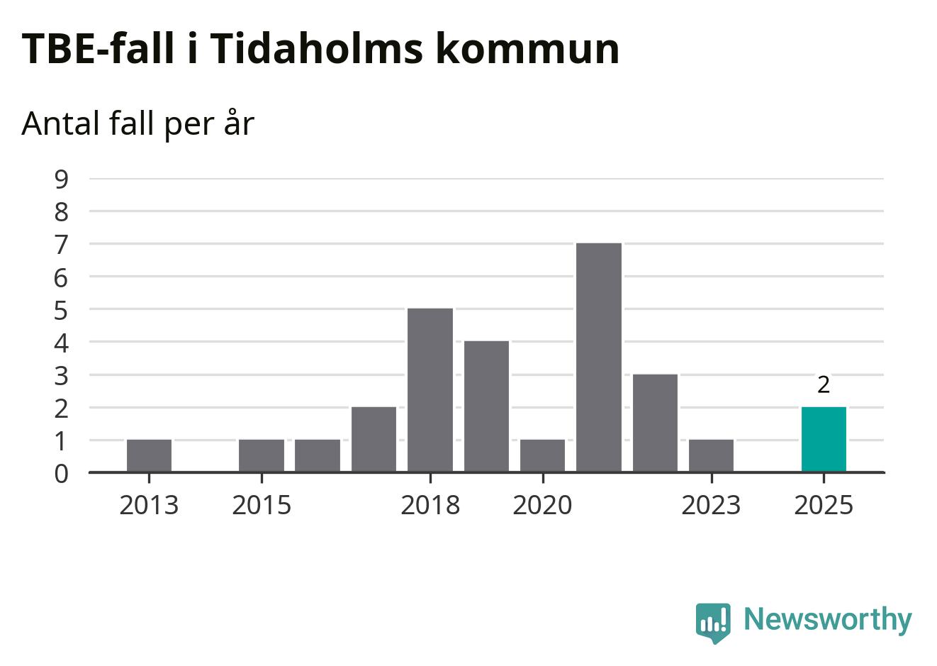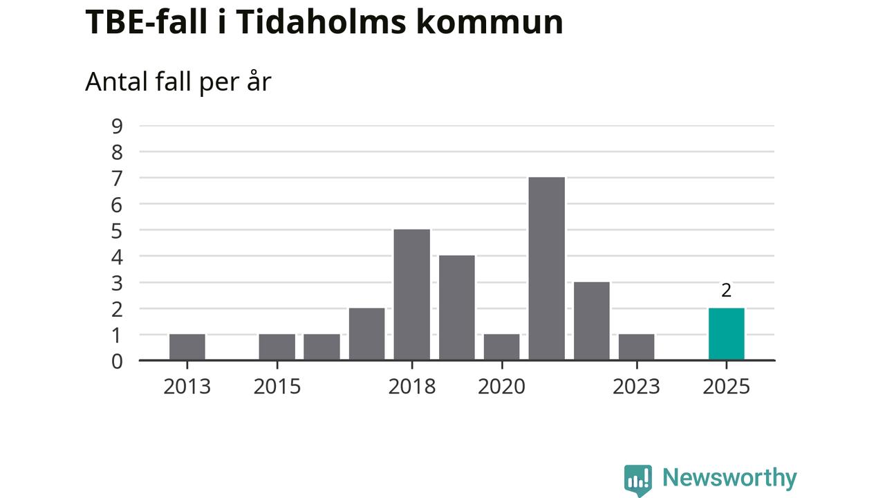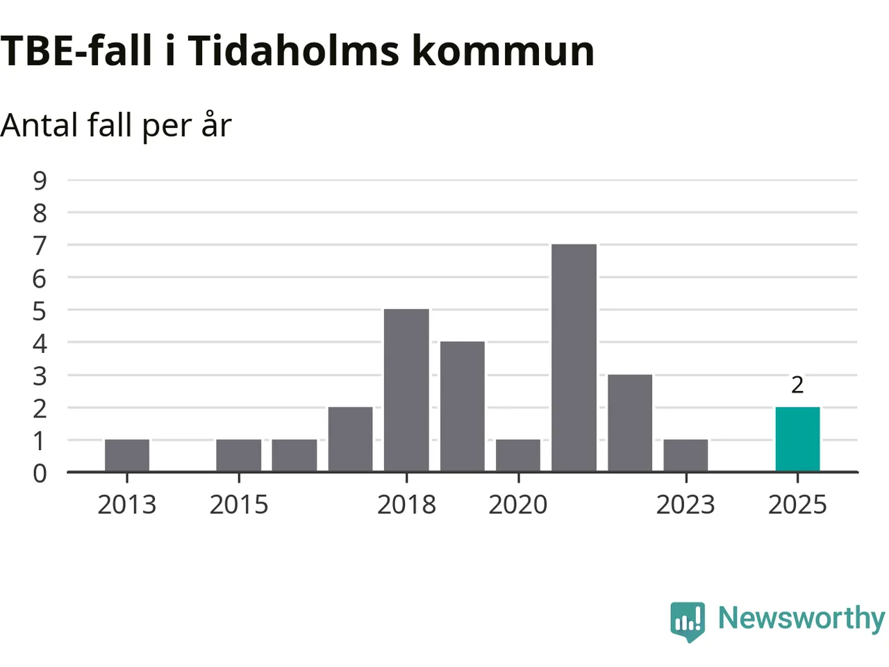 Under 2025 tillkom sju nya kommuner på den listan. Tidaholms kommun räknas till kommunerna med förhöjd förekomst av TBE. Det gör även resten av Västra Götalands län.