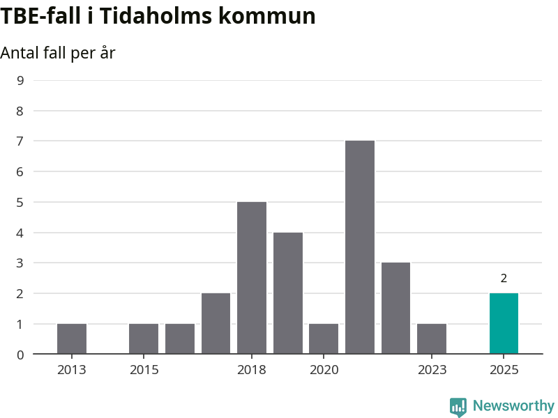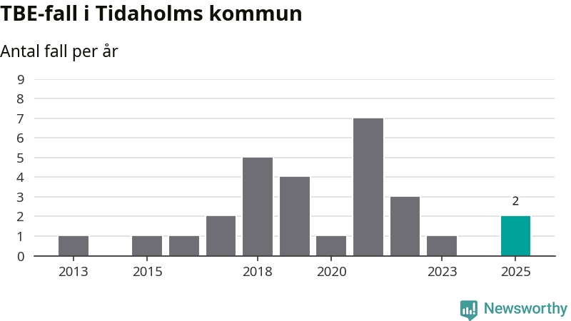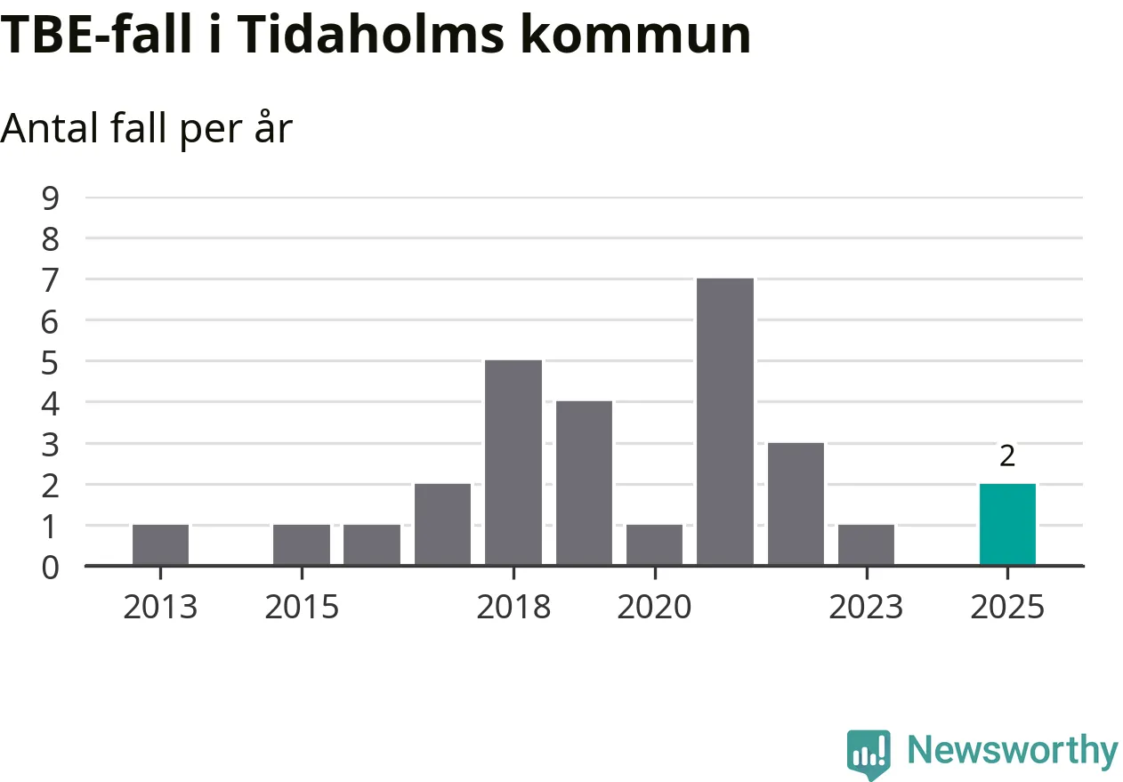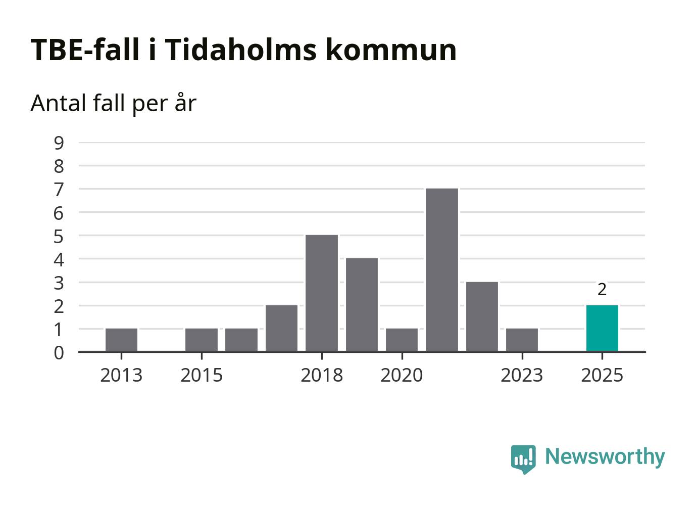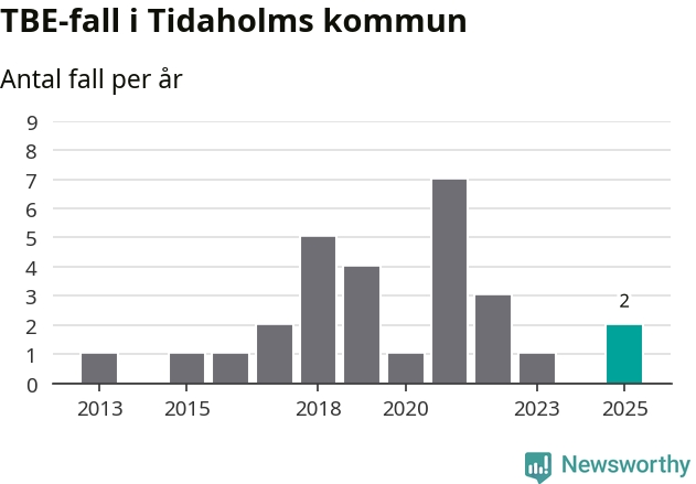 Under 2025 tillkom sju nya kommuner på den listan. Tidaholms kommun räknas till kommunerna med förhöjd förekomst av TBE. Det gör även resten av Västra Götalands län.