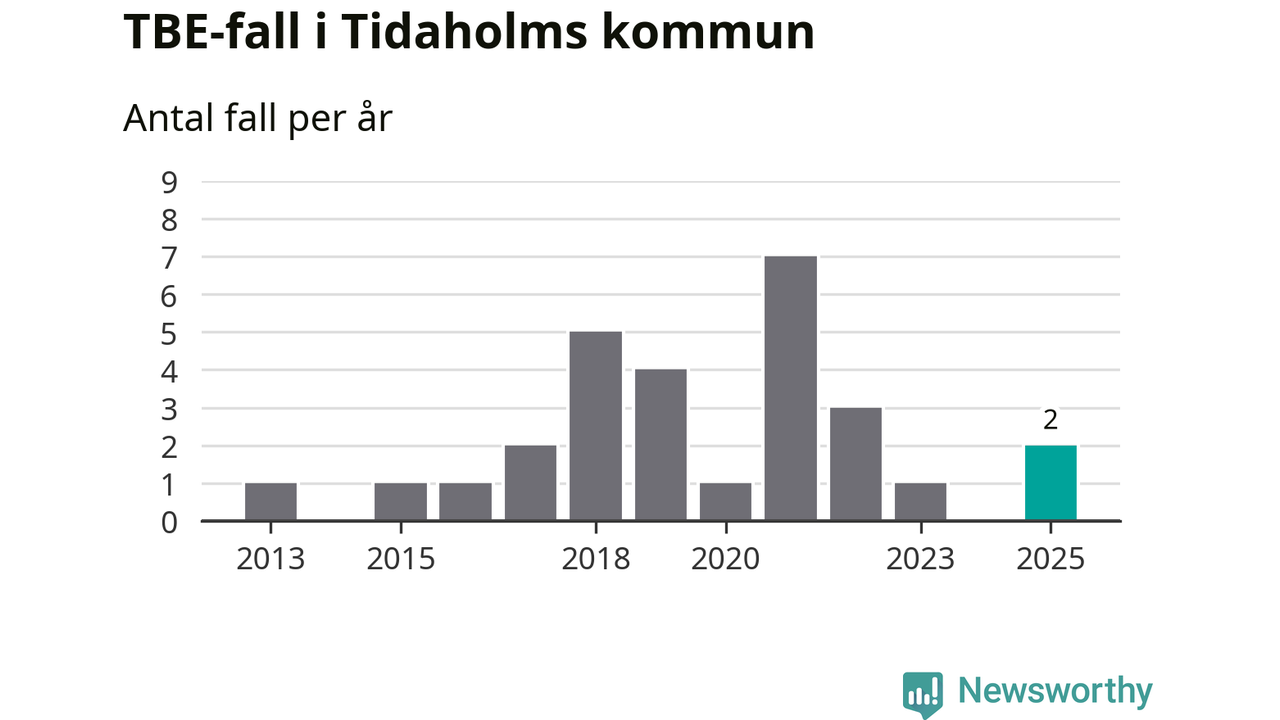 Den långsiktiga trenden är däremot tydlig. TBE-fallen blir allt fler i Sverige. Sett över tid har antalet anmälda fall i landet som helhet ökat med drygt sex procent per år sedan 2013. Totalt motsvarar det en ökning på 141 procent om vi jämför 2013 med 2025 års siffror.
