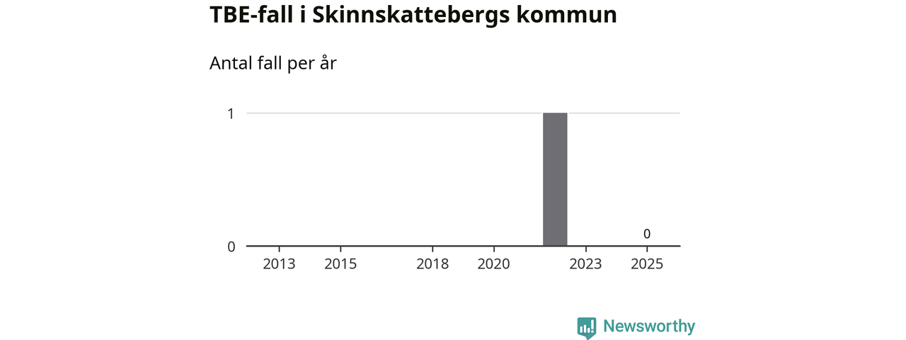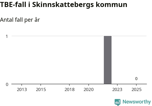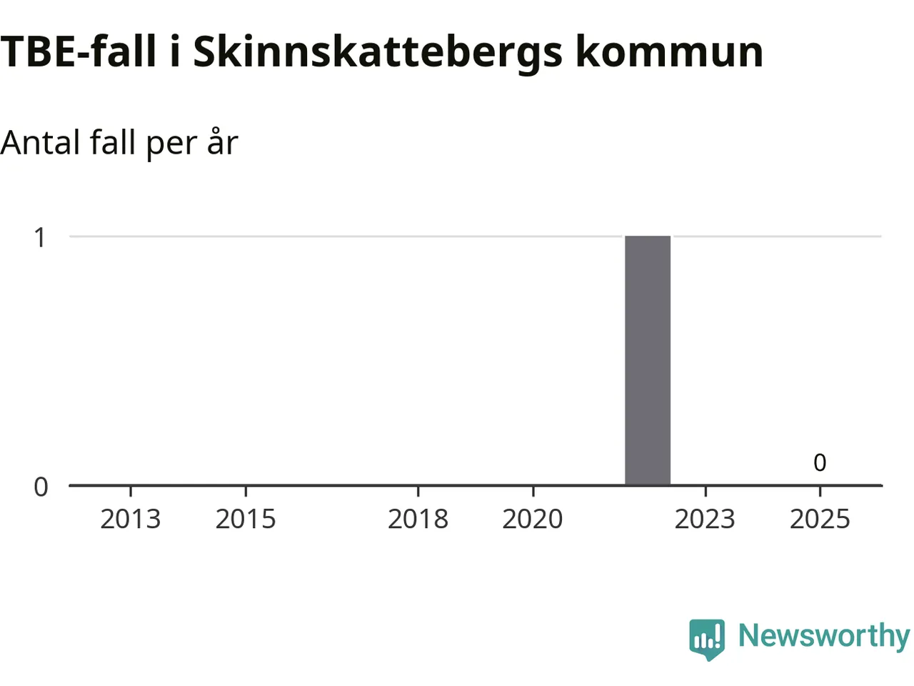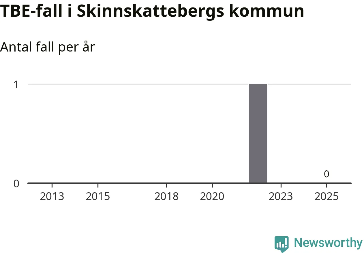 Inget TBE-fall rapporterades i Skinnskattebergs kommun under 2025. Inga TBE-fall har rapporterats i kommunen sedan 2022.