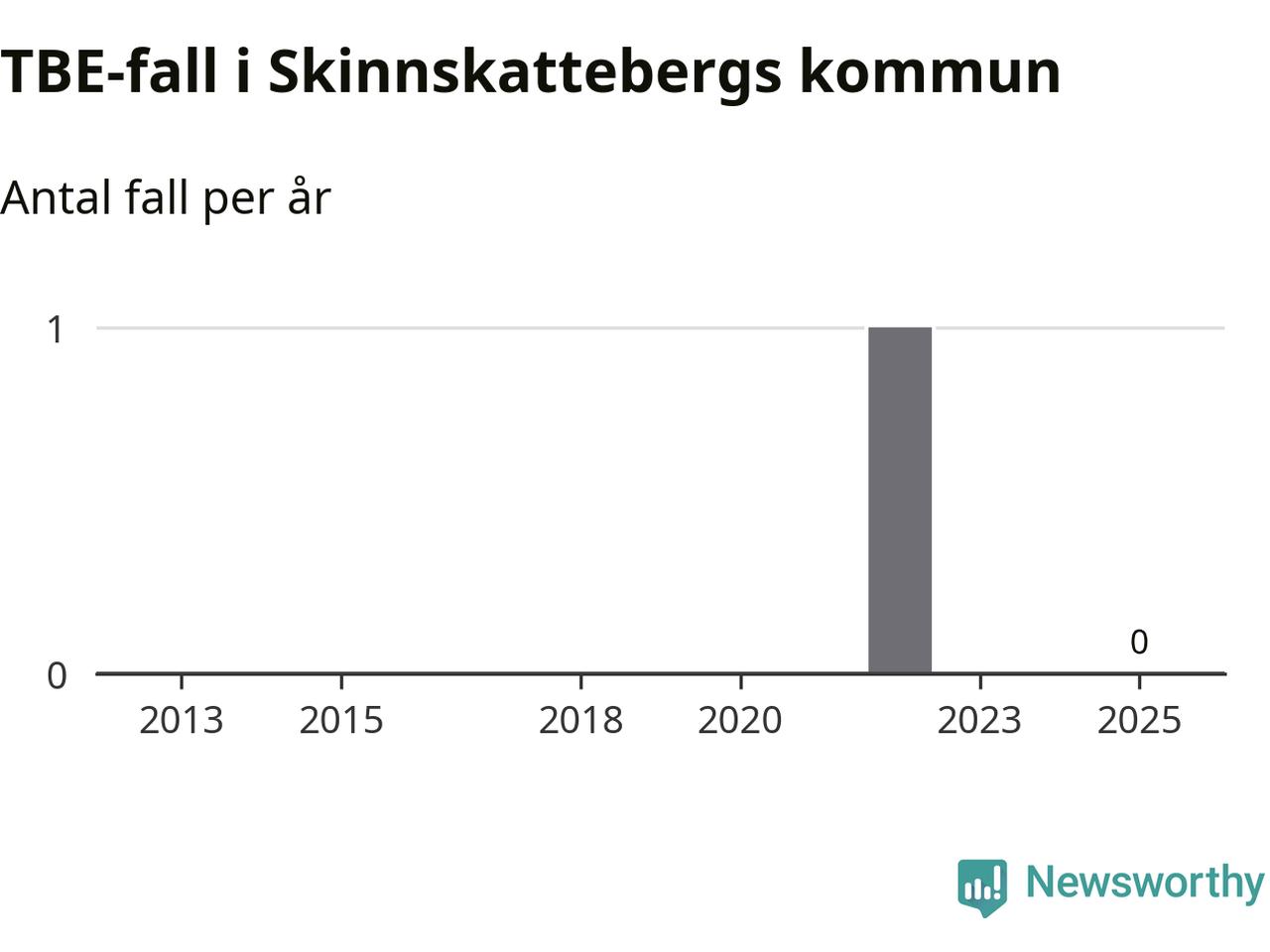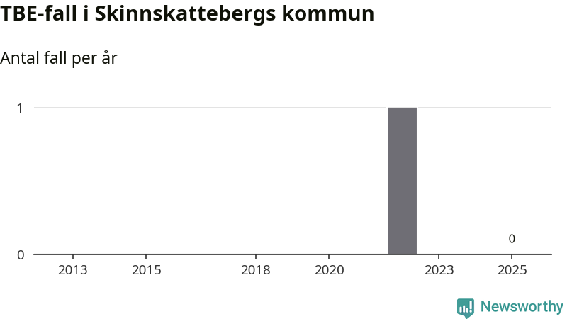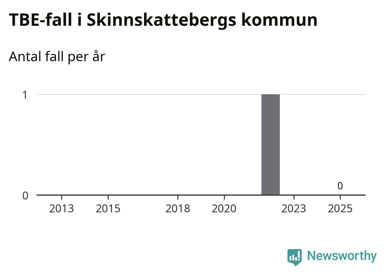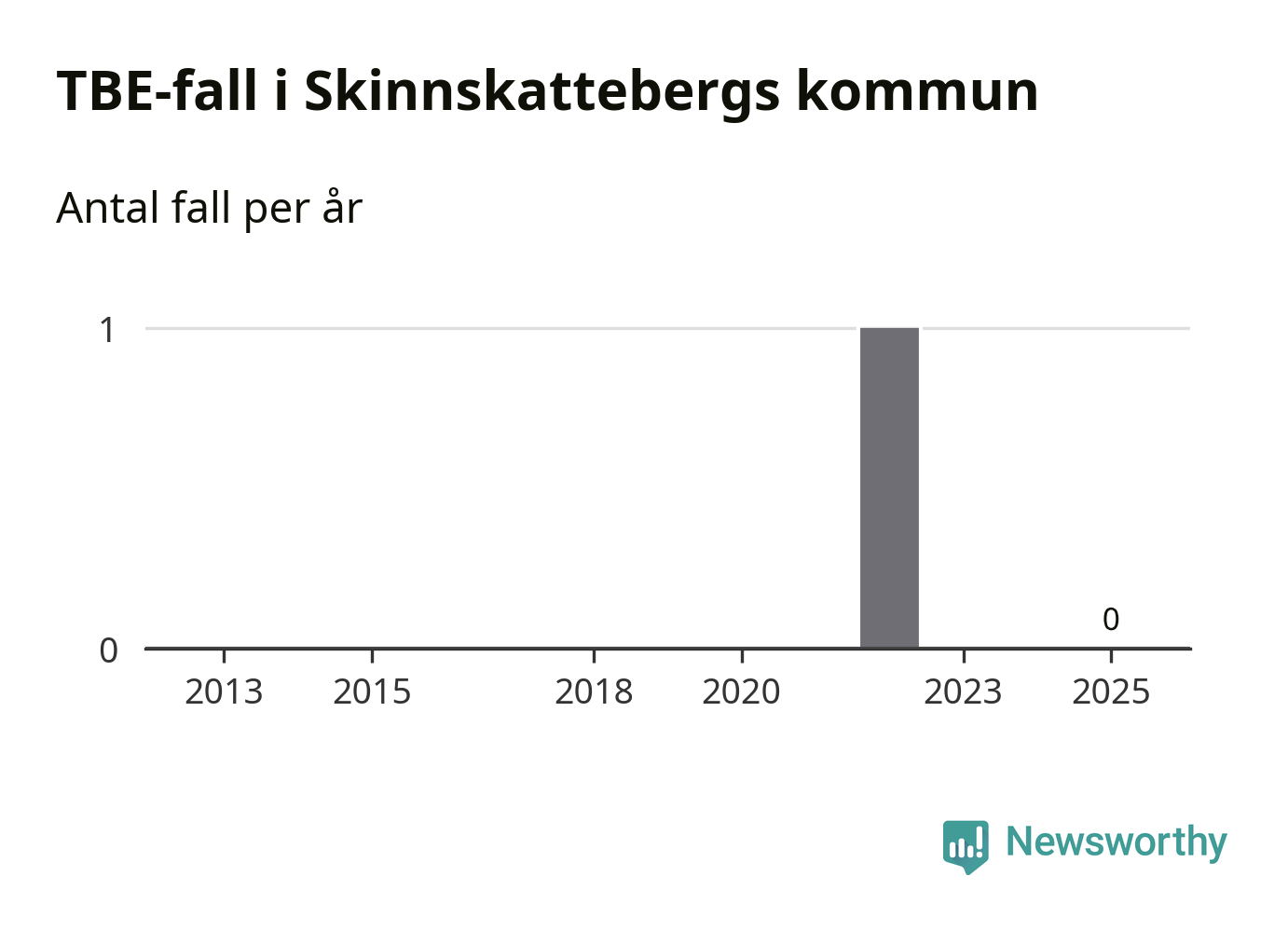 Inget TBE-fall rapporterades i Skinnskattebergs kommun under 2025. Inga TBE-fall har rapporterats i kommunen sedan 2022.