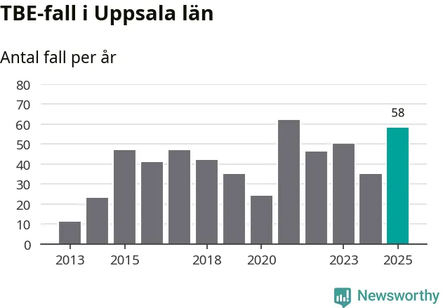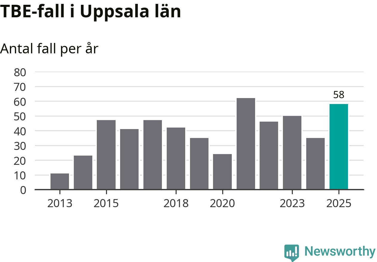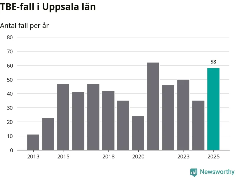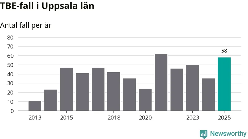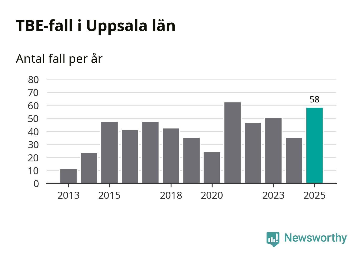 I Uppsala län rapporterades totalt 58 smittfall. Det är den högsta siffran sedan 2021, då totalt 62 fall rapporterades i länet.