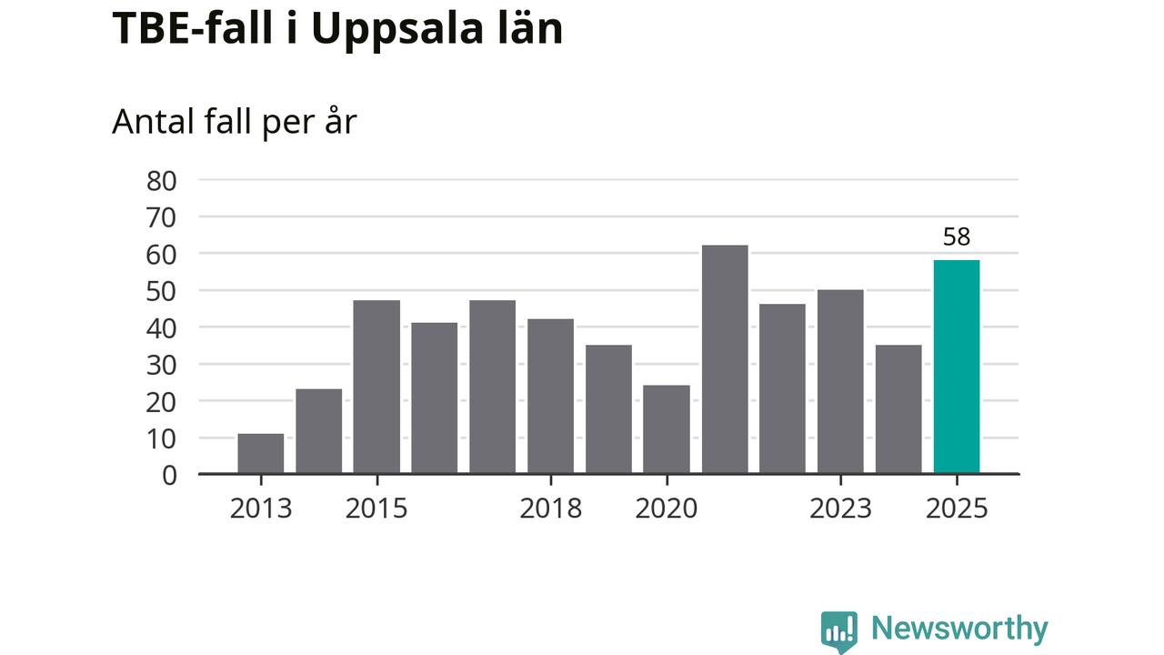 Under 2025 tillkom sju nya kommuner på den listan. Ingen del av Uppsala län räknas ännu som ett område med förhöjd förekomst av TBE.