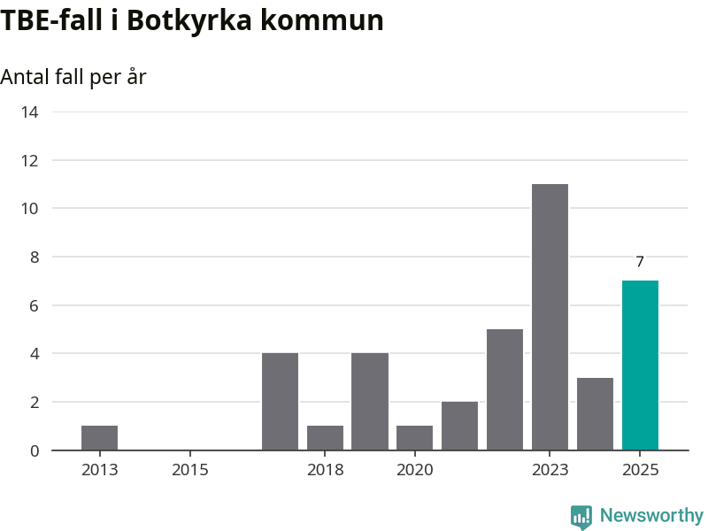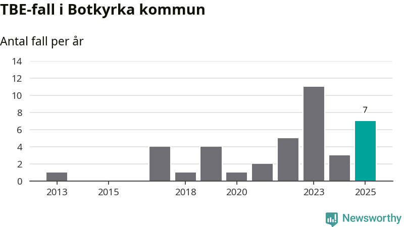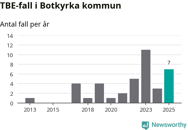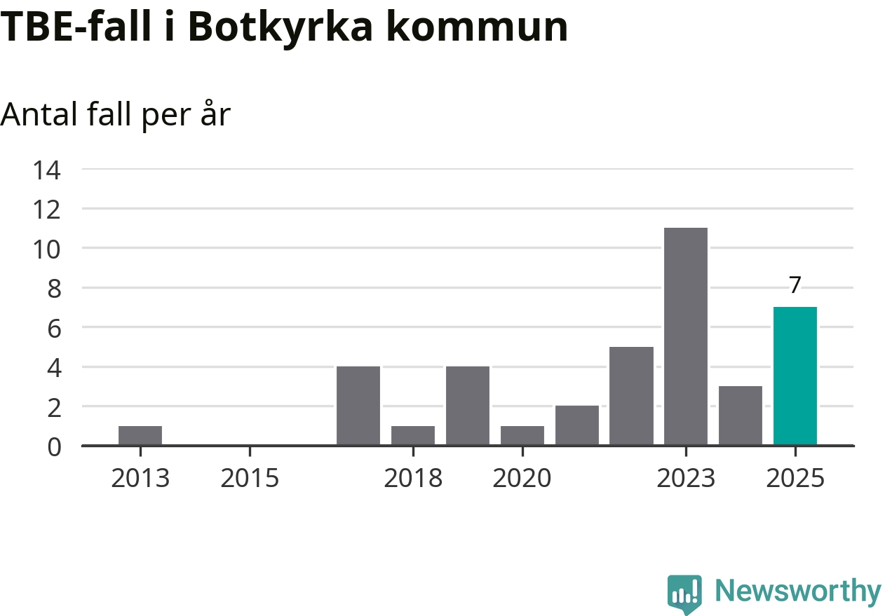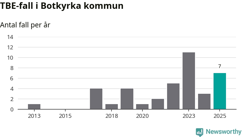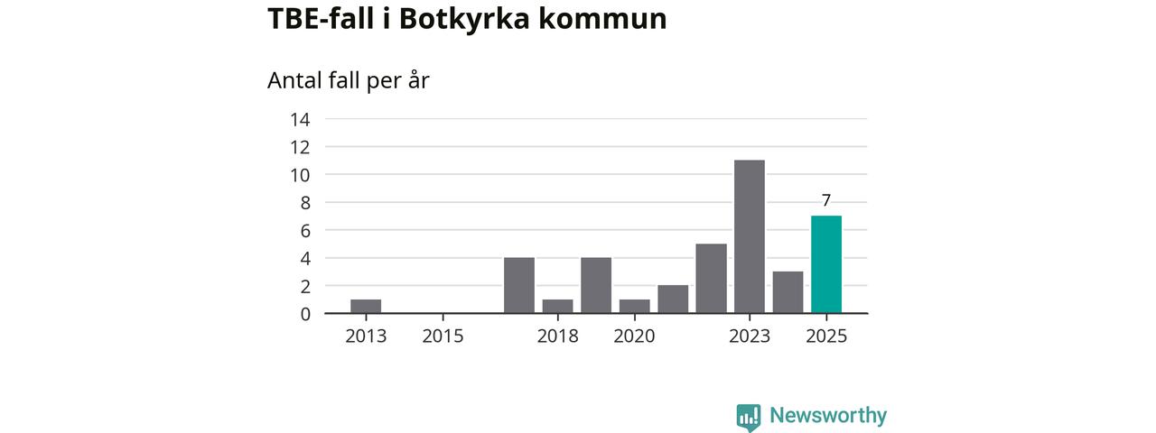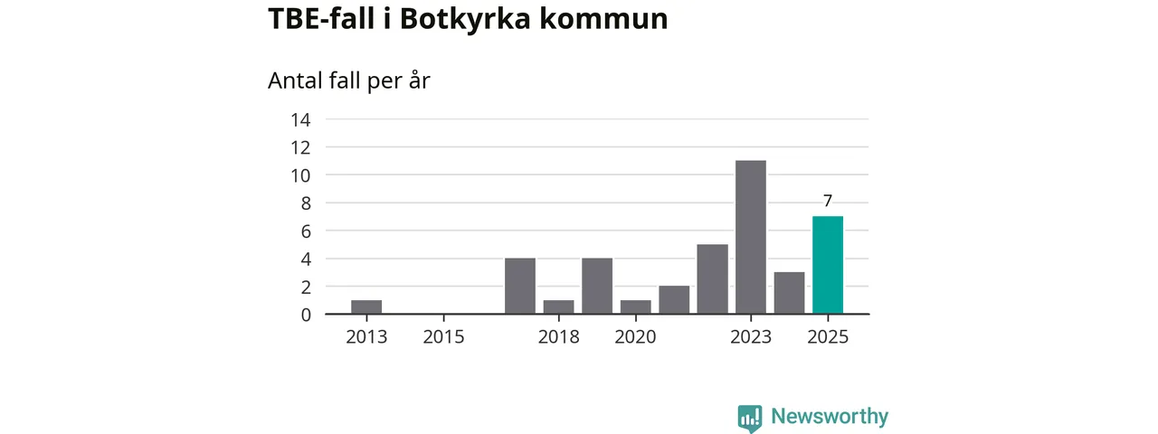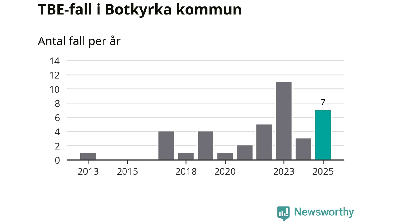 Den långsiktiga trenden är däremot tydlig. TBE-fallen blir allt fler i Sverige. Sett över tid har antalet anmälda fall i landet som helhet ökat med drygt sex procent per år sedan 2013. Totalt motsvarar det en ökning på 141 procent om vi jämför 2013 med 2025 års siffror.