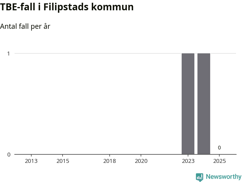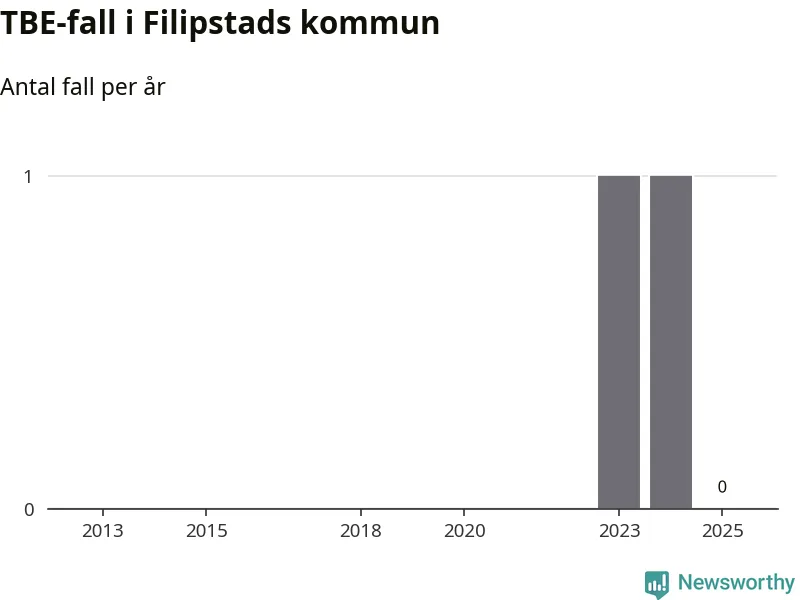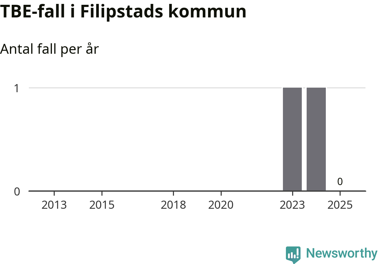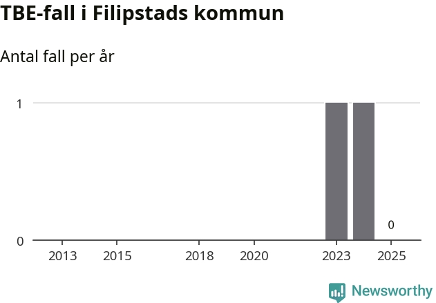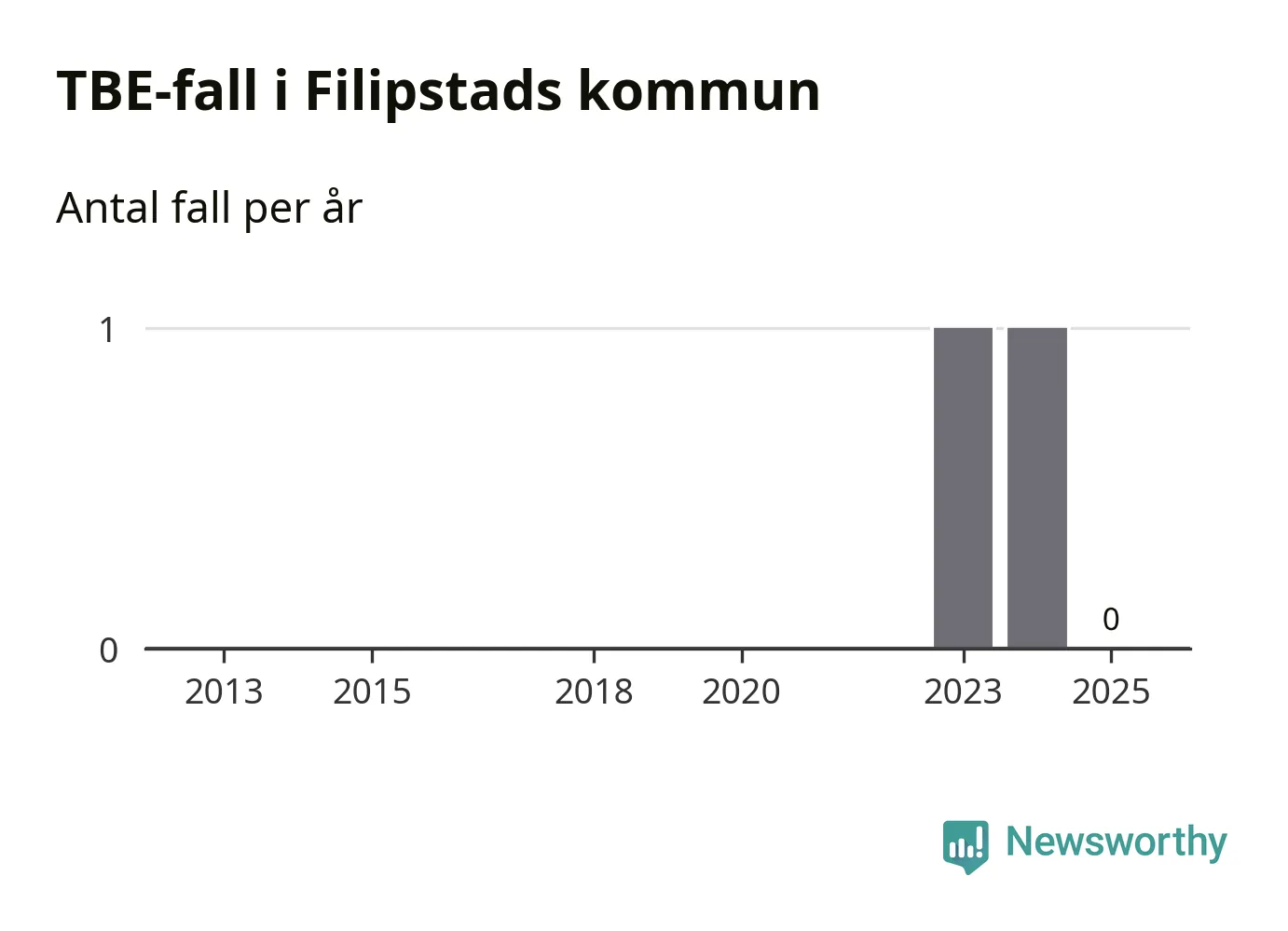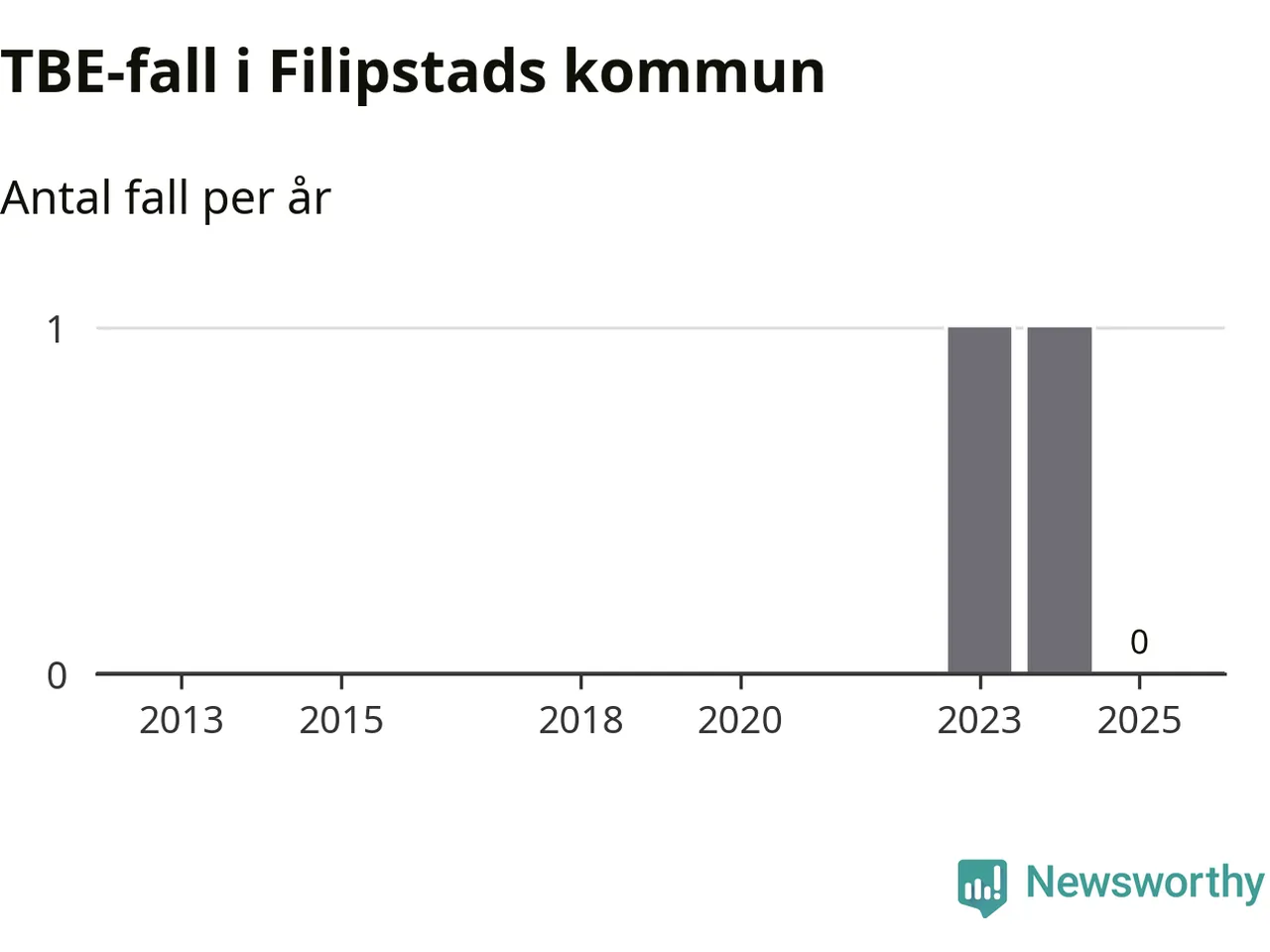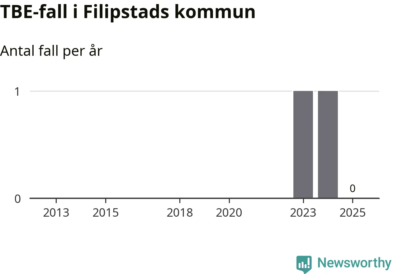 Inget TBE-fall rapporterades i Filipstads kommun under 2025. Det är en minskning sedan året innan, då ett fall rapporterades i kommunen.