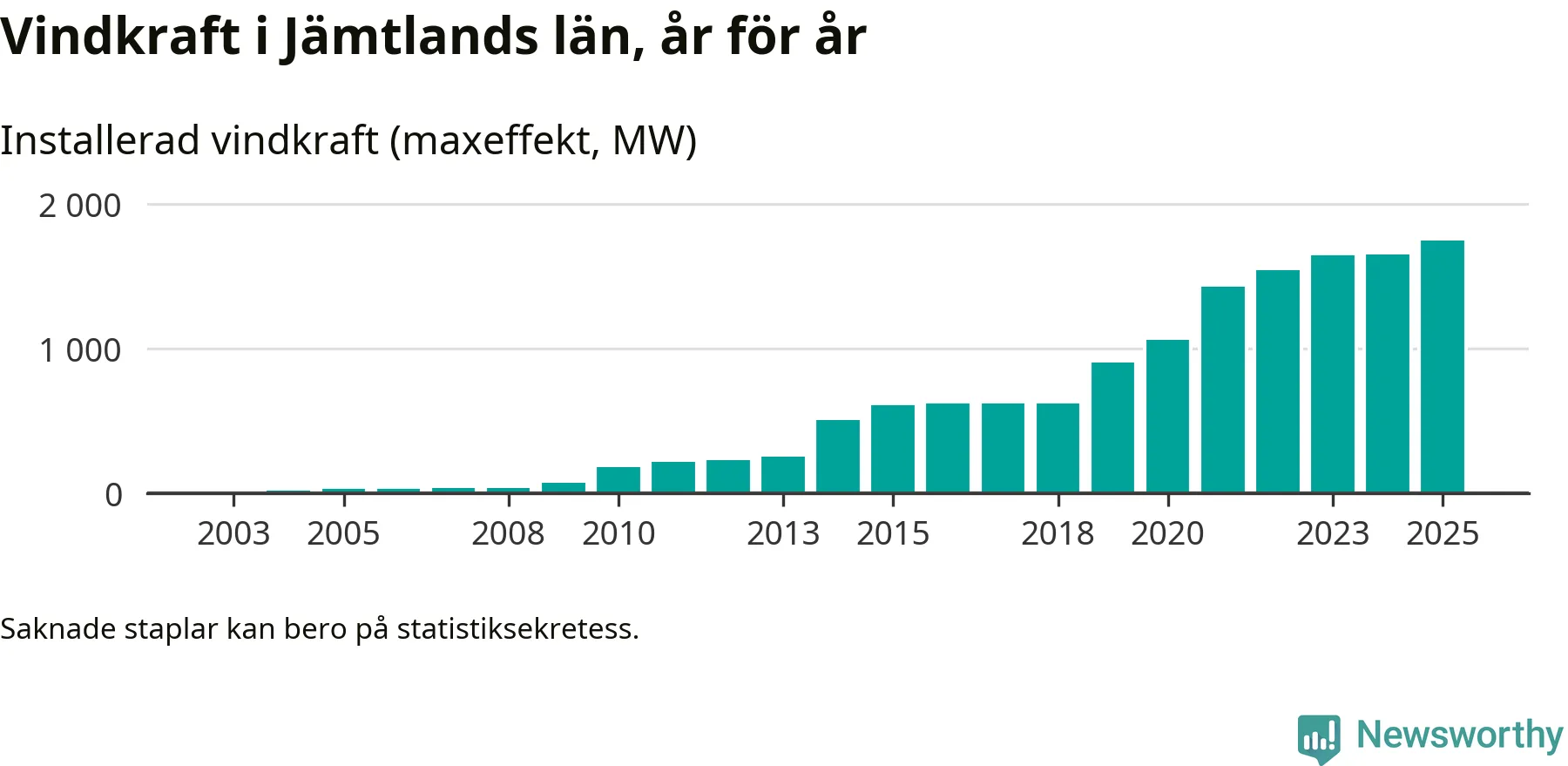 Fler vindkraftverk byggdes i fjol än året innan, men utbyggnaden är fortfarande betydligt mindre än vi vant oss vid det senaste decenniet. Så här ser det ut i Jämtland