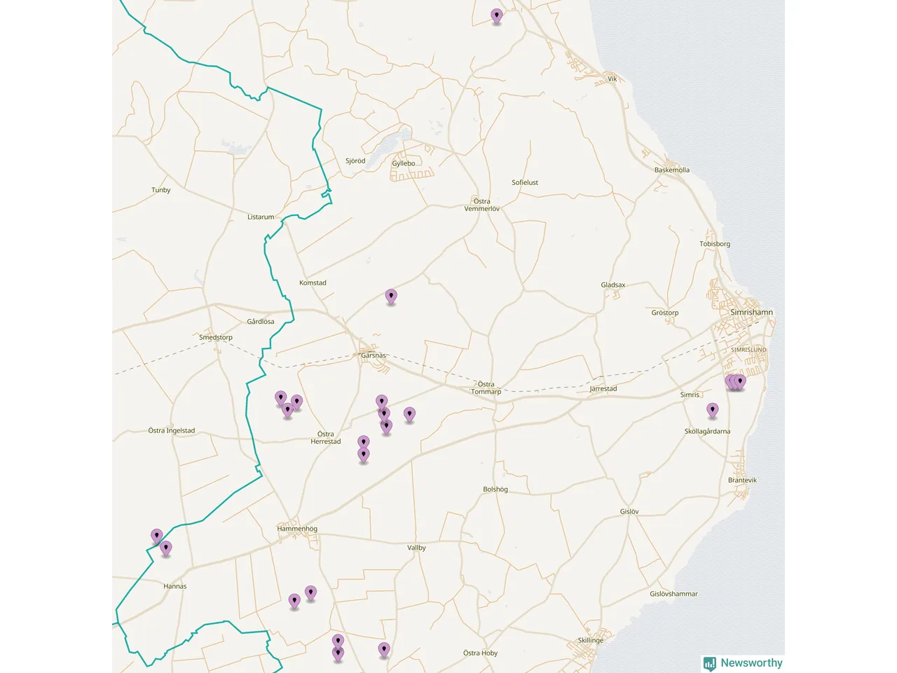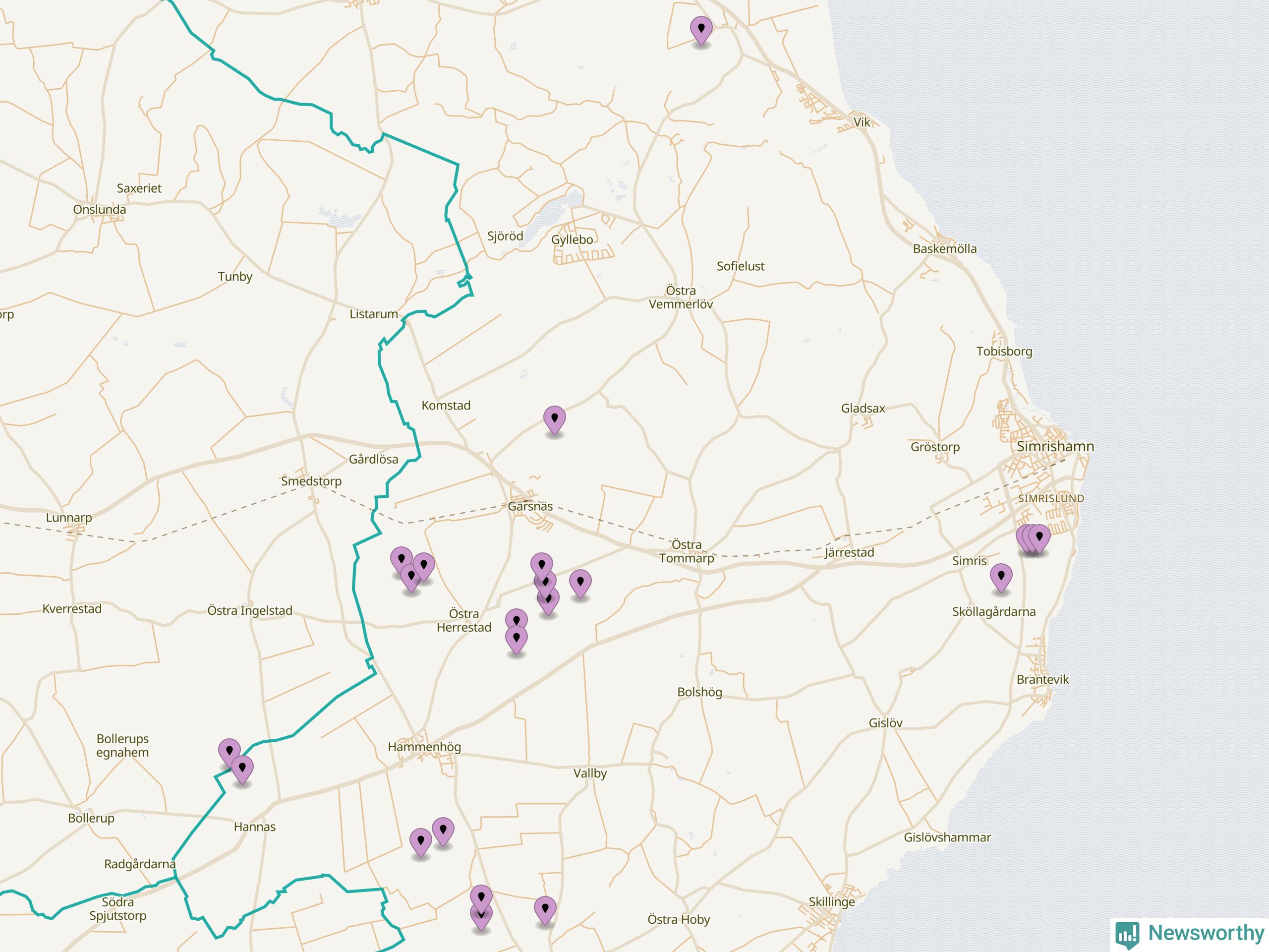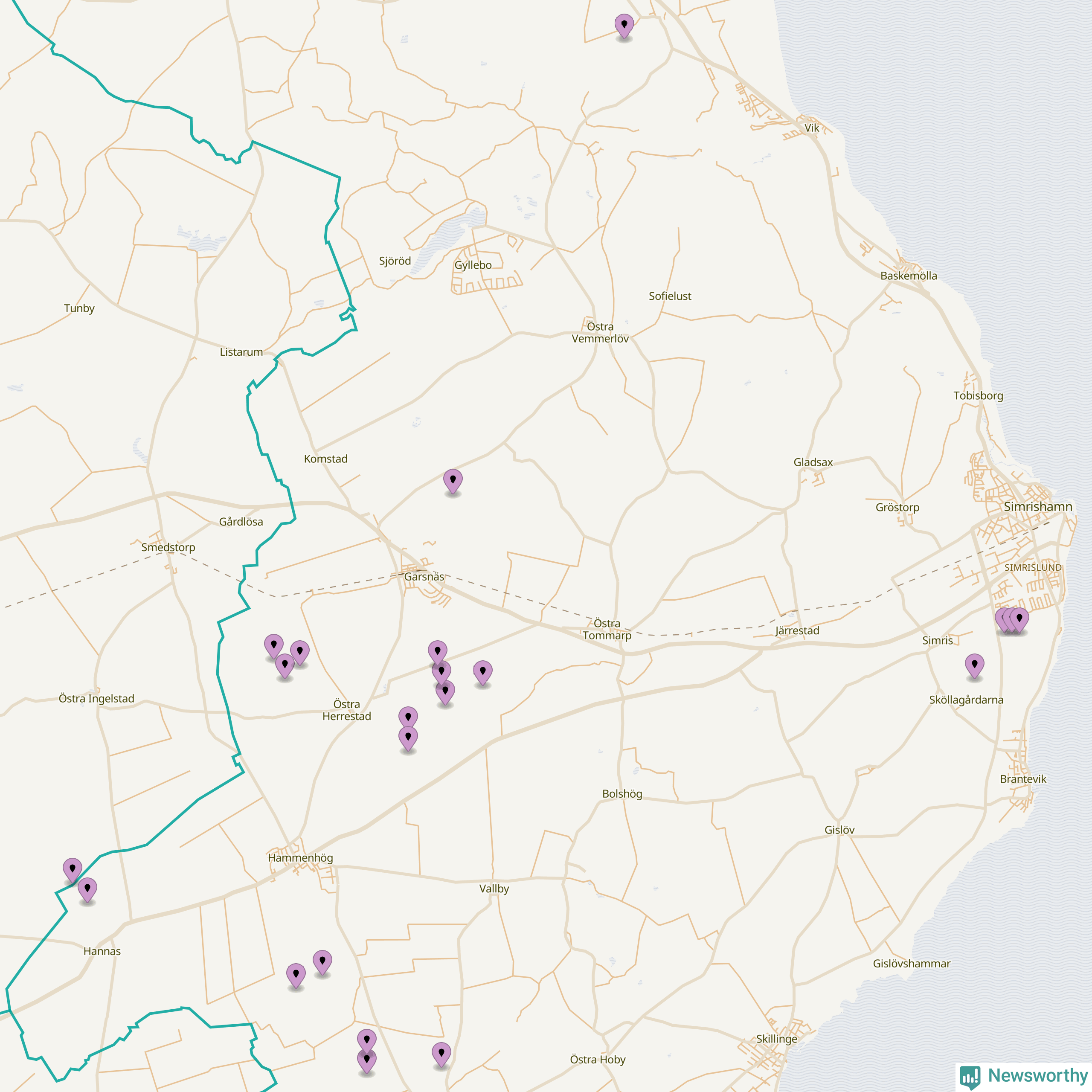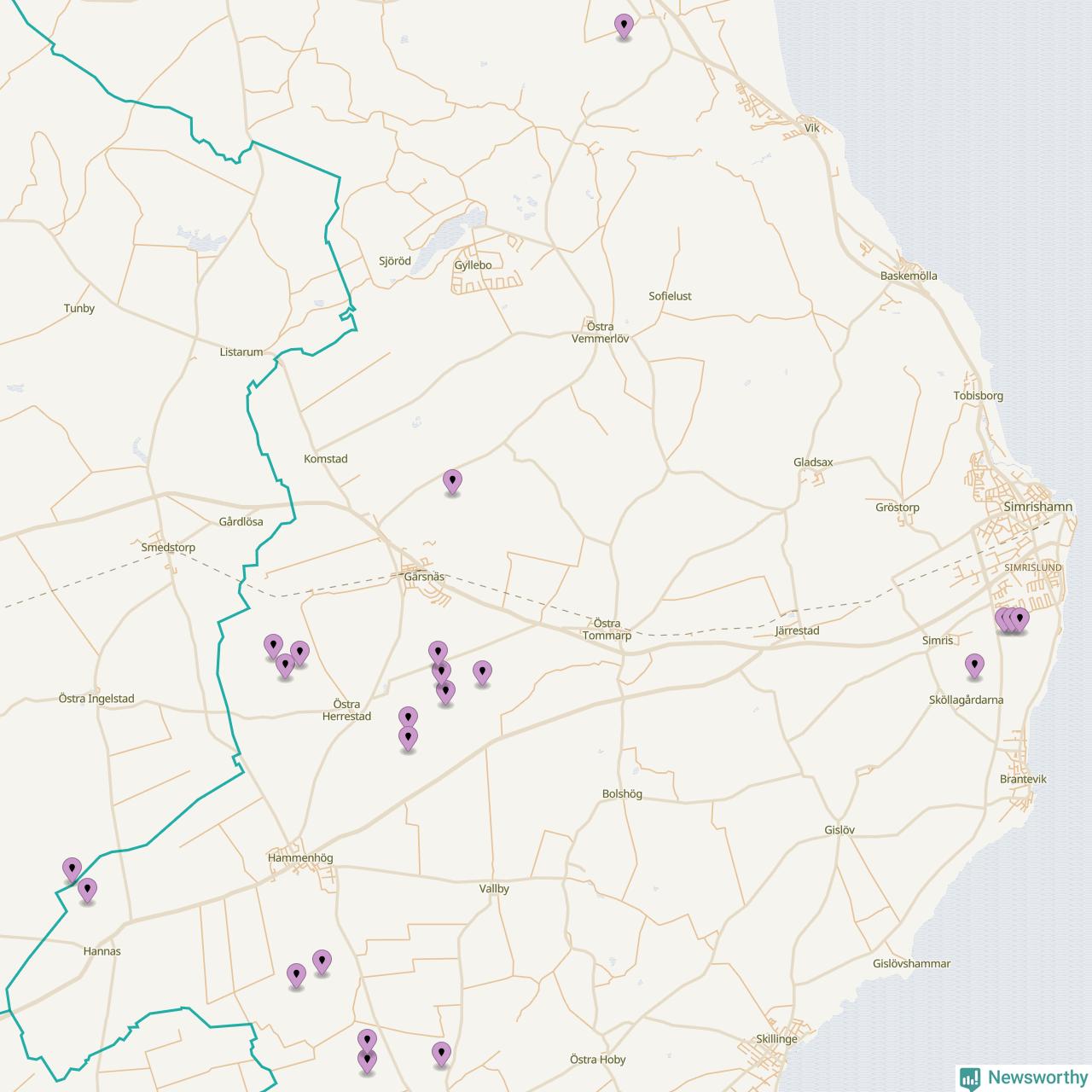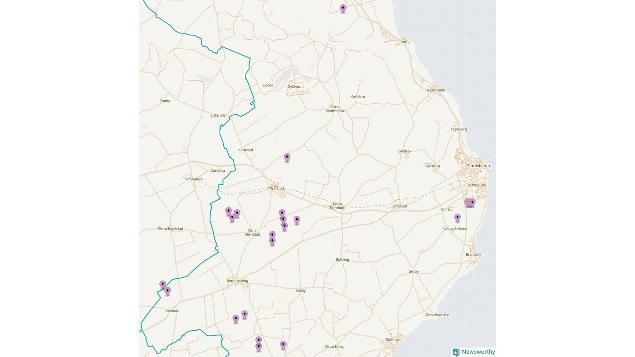 Karta över vindkraftverk i Simrishamns kommun