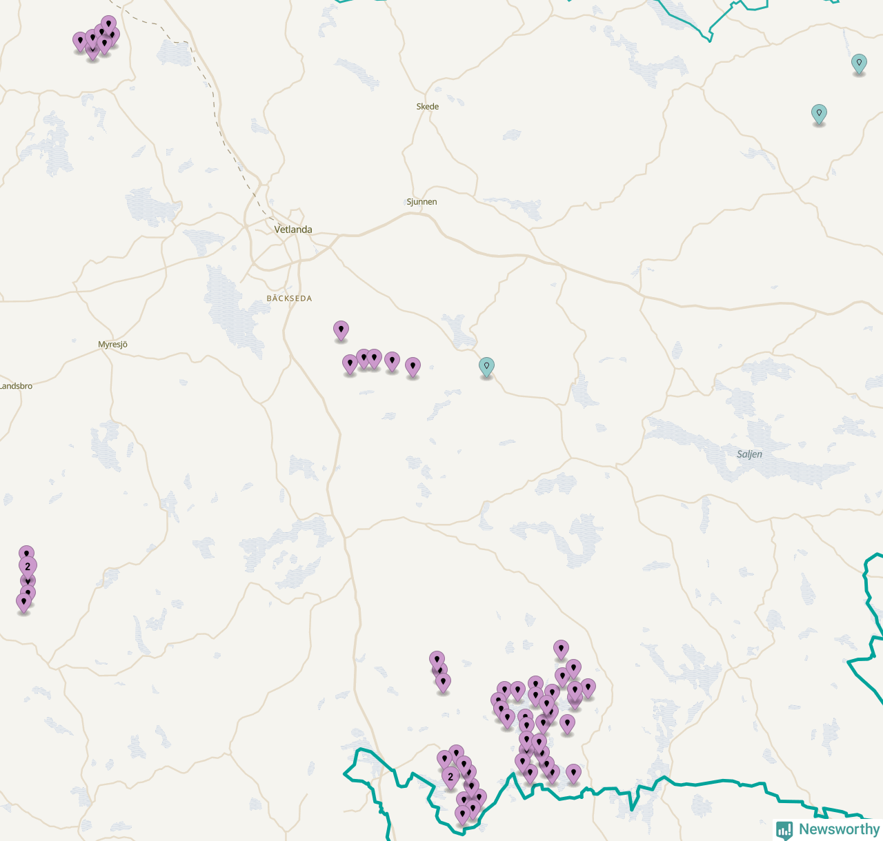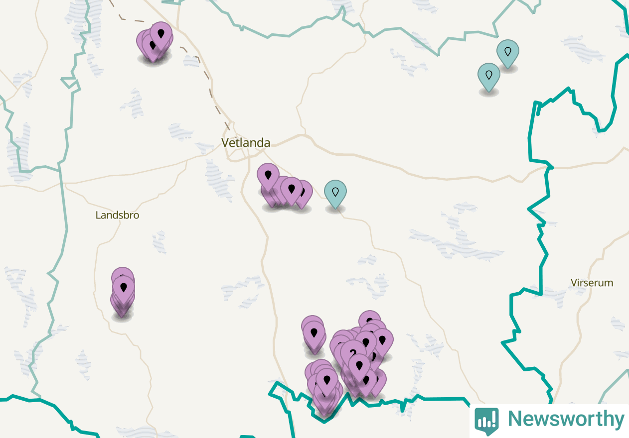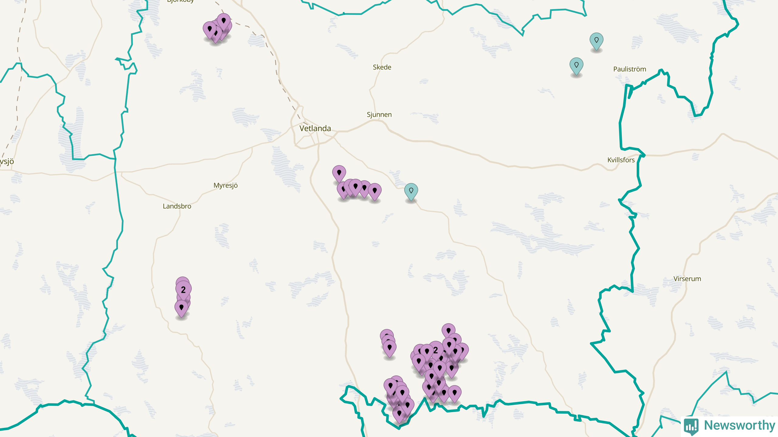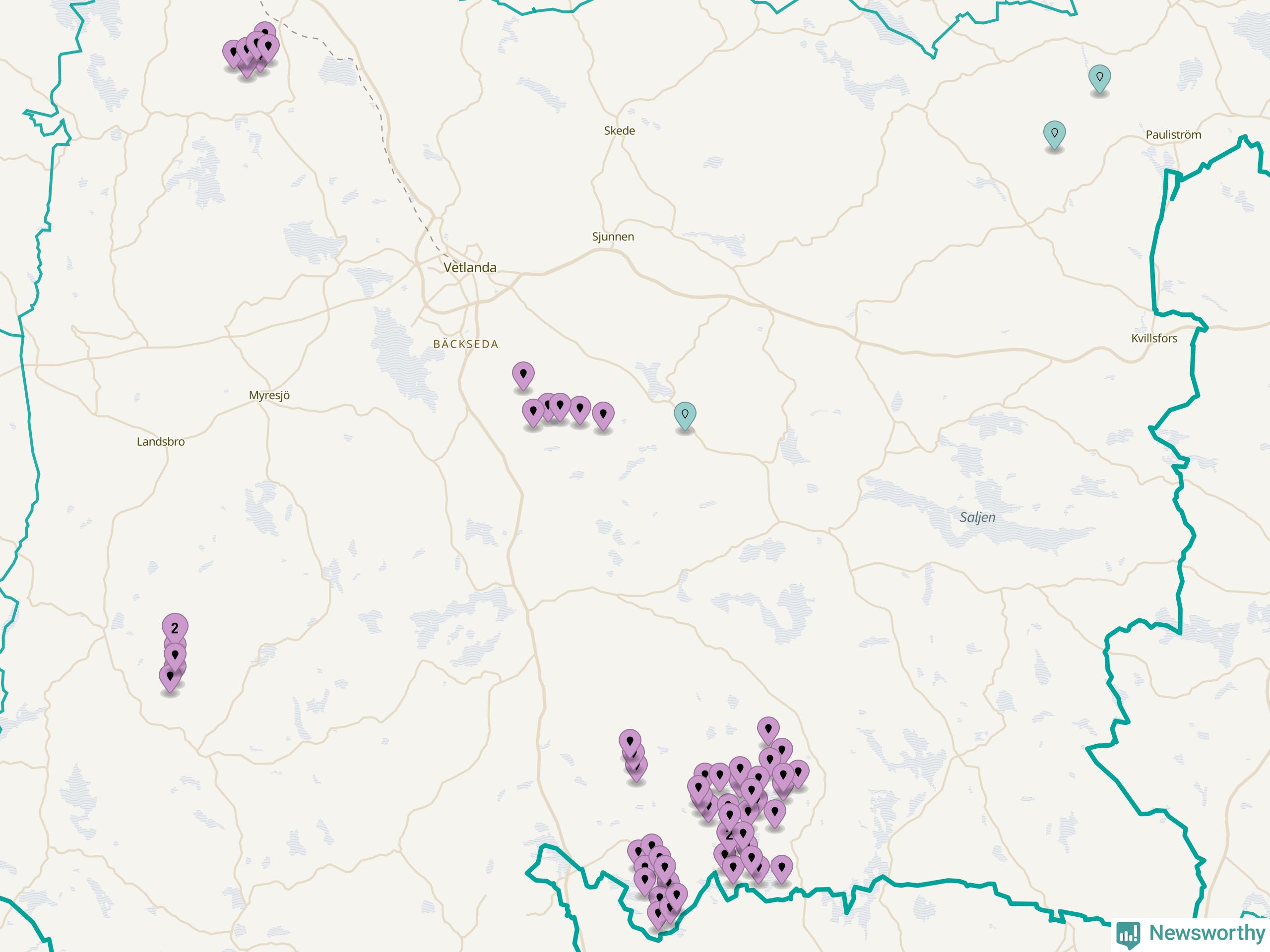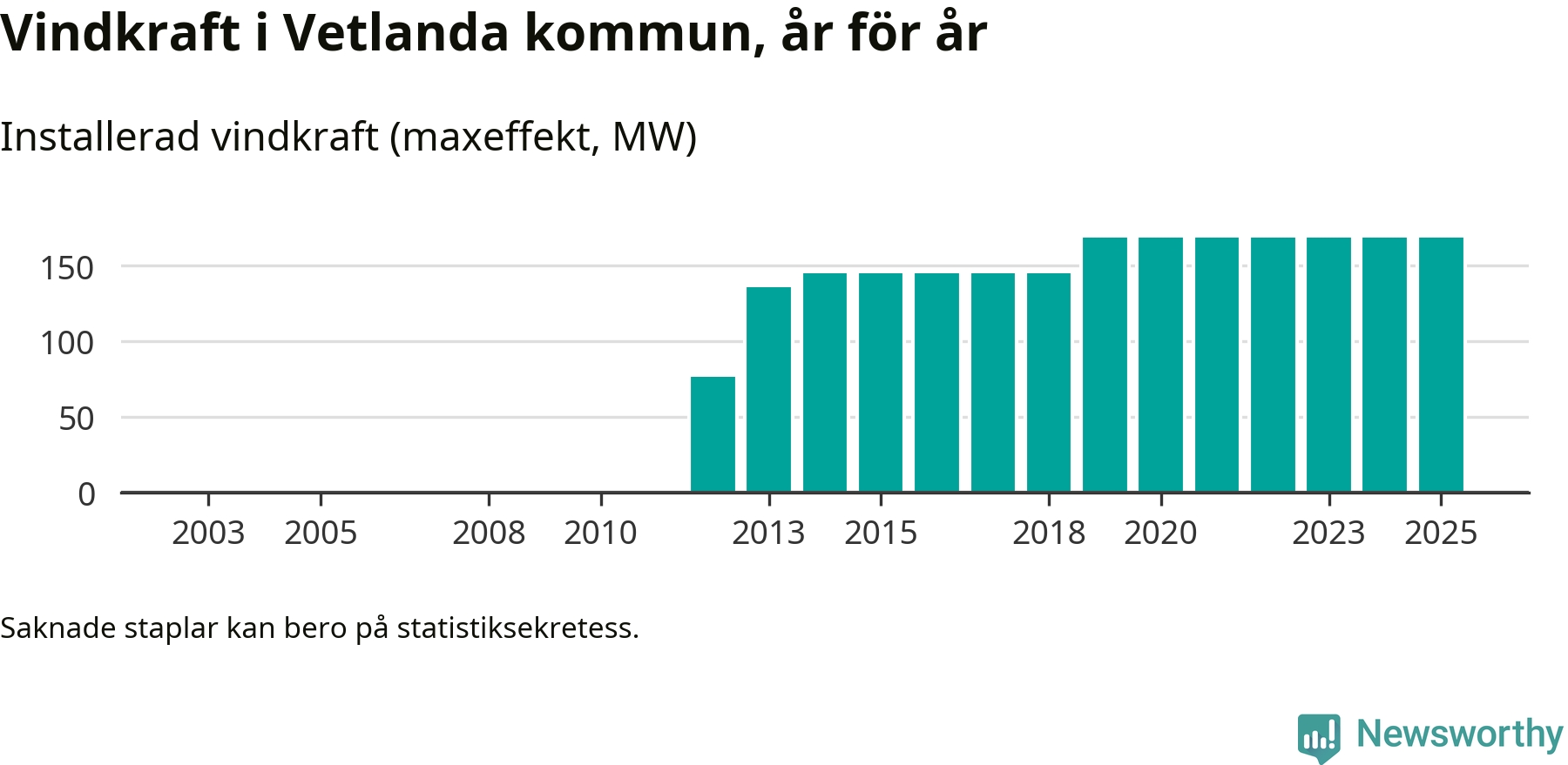 Totalt fanns i slutet av förra året 62 vindkraftverk i Vetlanda kommun, med en sammanlagd maxeffekt på 169 megawatt. Det är, för sjätte året i rad, oförändrade siffror jämfört med året innan. Det visar nya siffror från Energimyndigheten.
