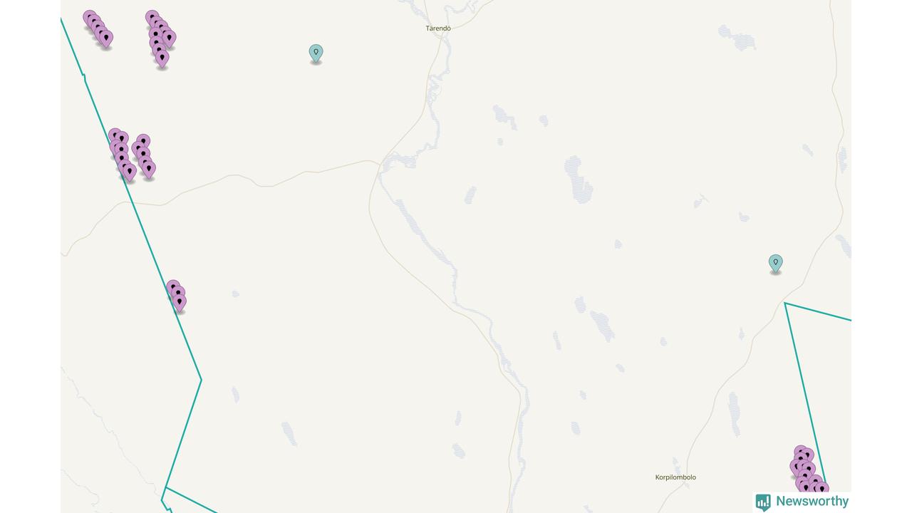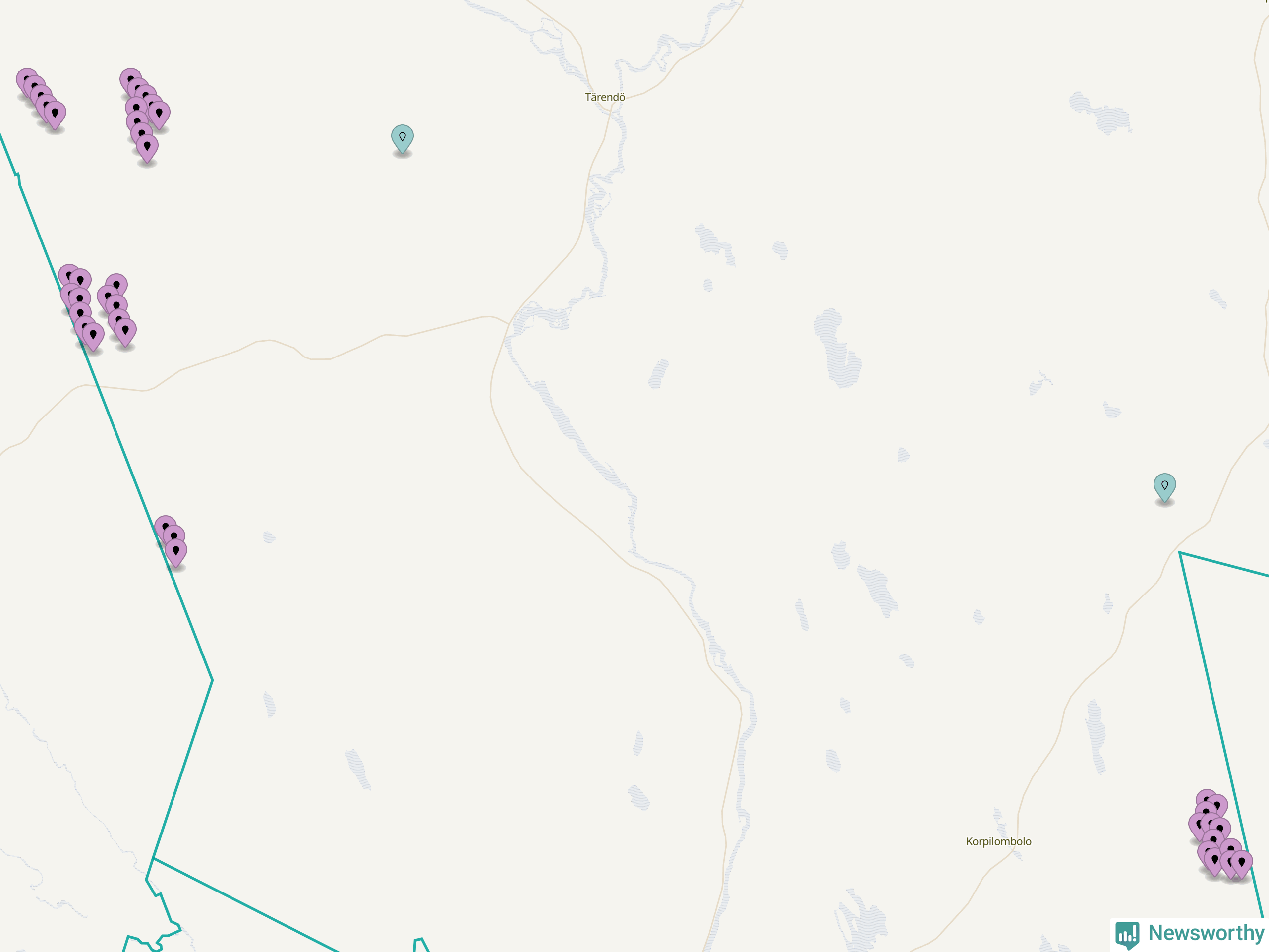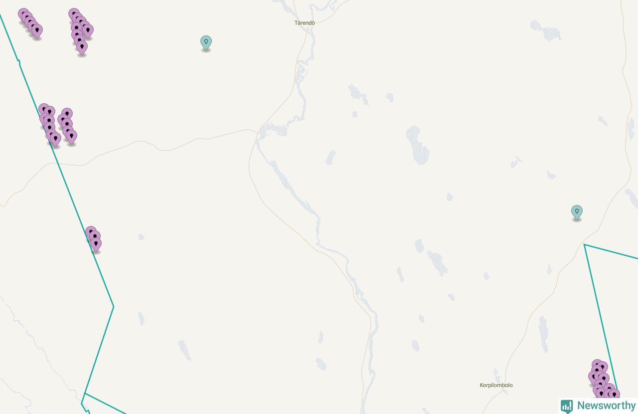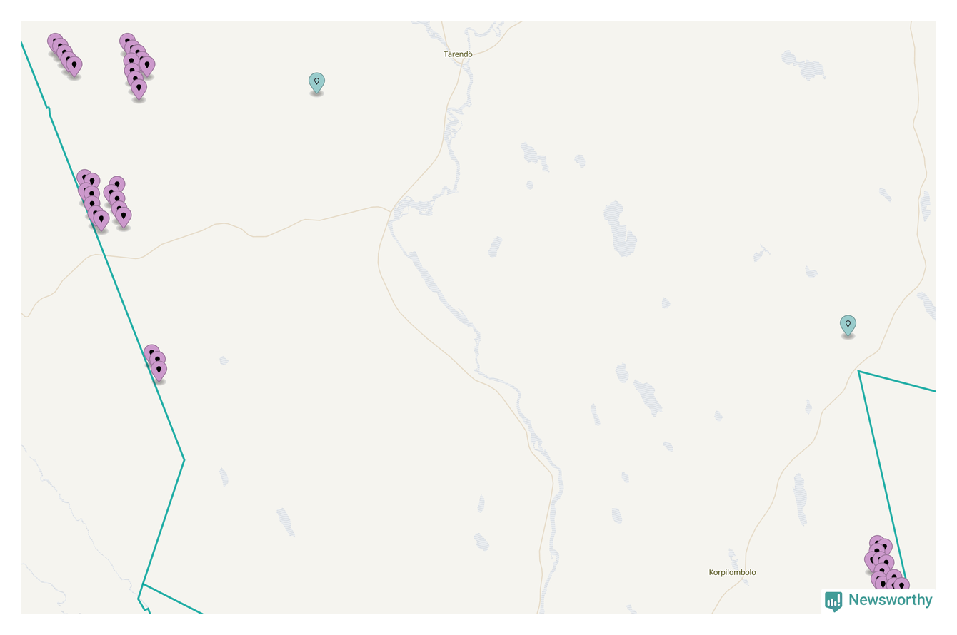 Karta över vindkraftverk i Pajala kommun