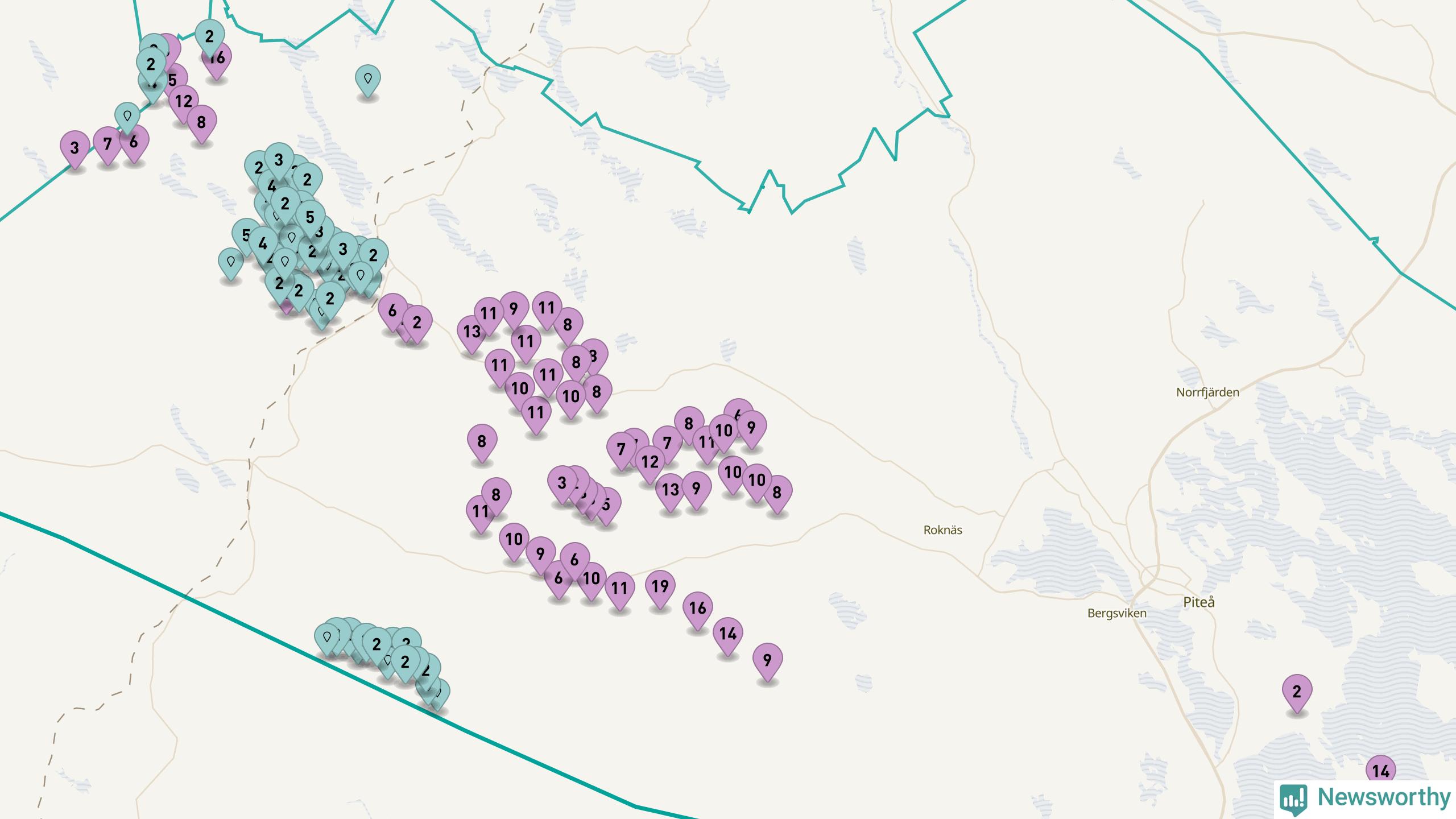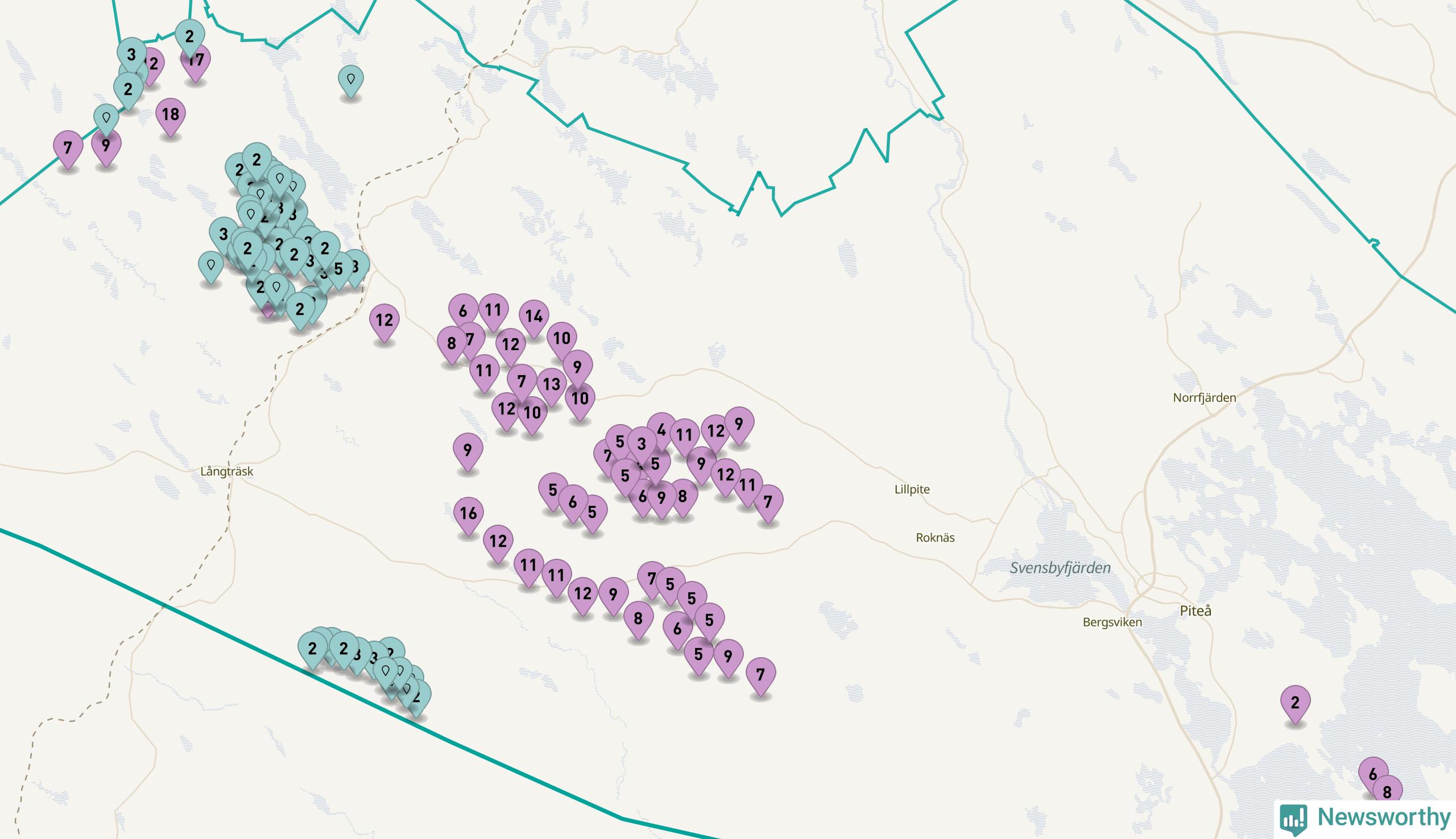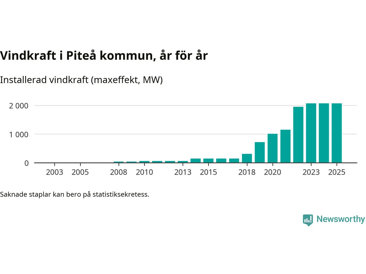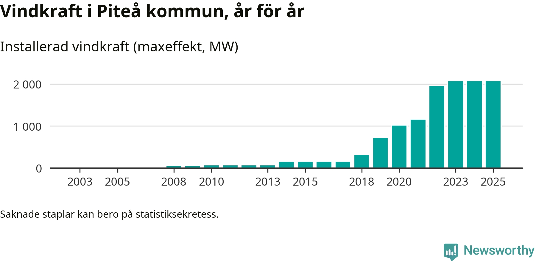 Totalt fanns i slutet av förra året 513 vindkraftverk i Piteå kommun, med en sammanlagd maxeffekt på 2 069 megawatt. Det är, för andra året i rad, oförändrade siffror jämfört med året innan. Det visar nya siffror från Energimyndigheten. I kommunen ligger Sveriges största vindkraftspark, Markbygden.