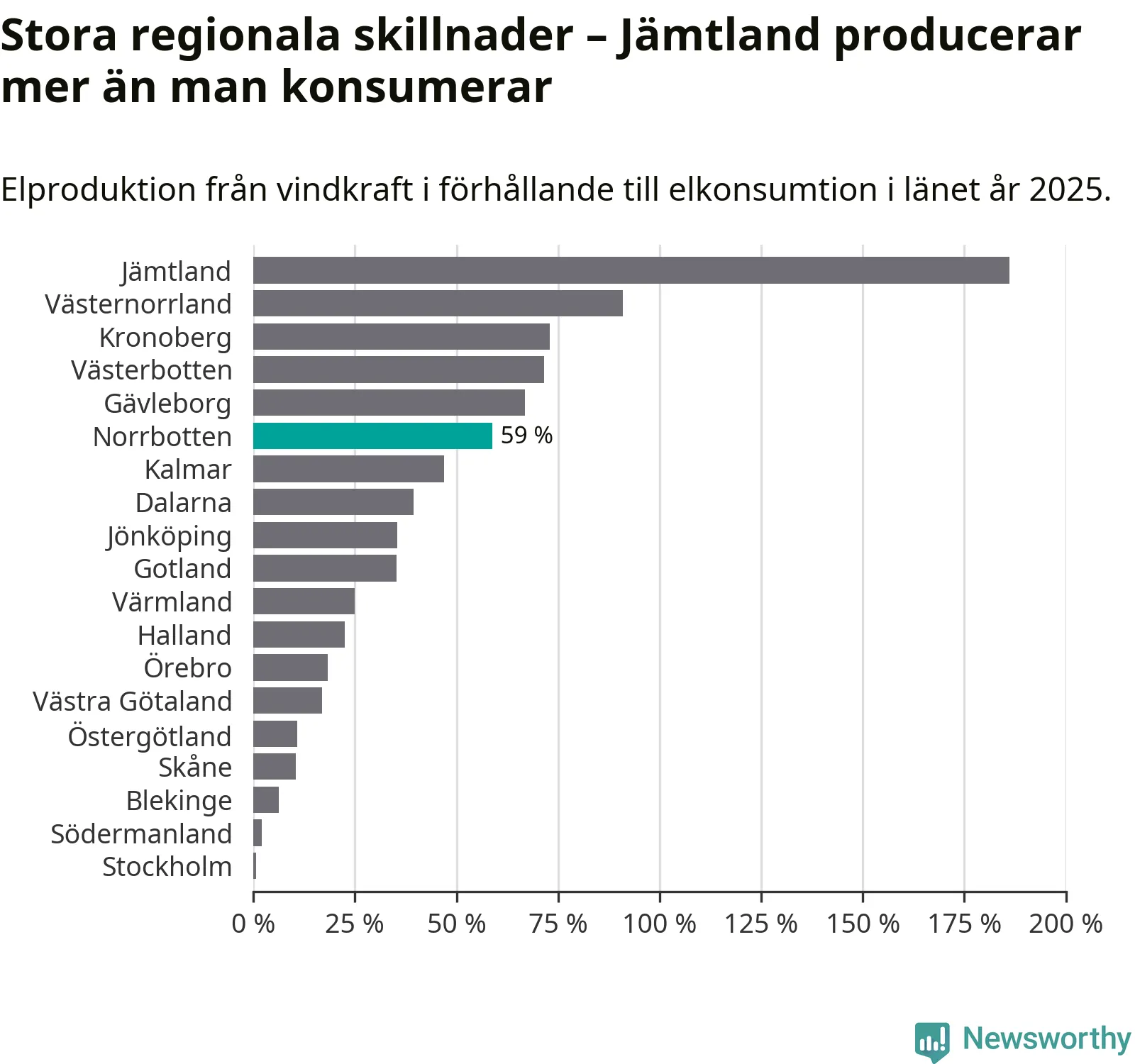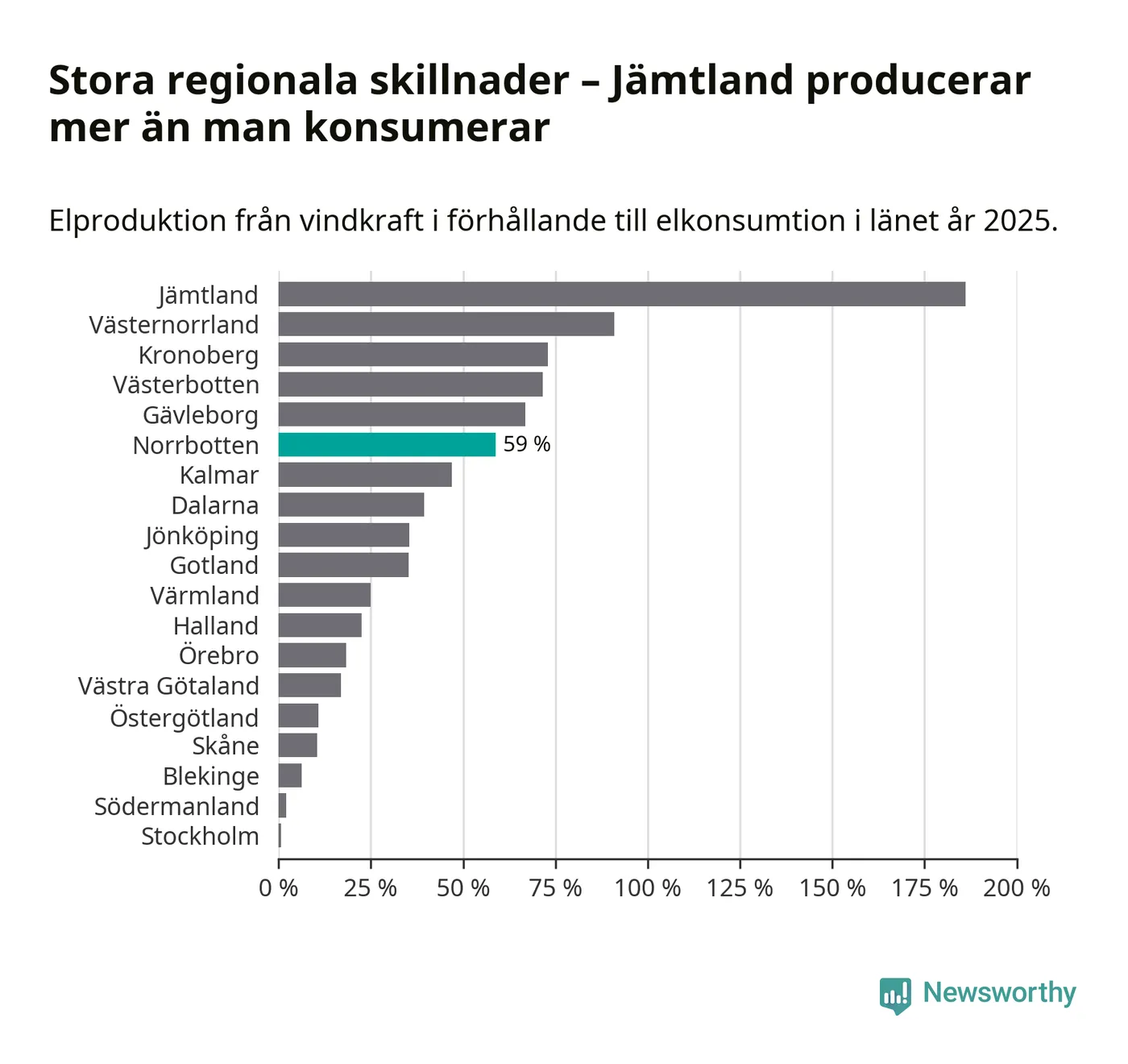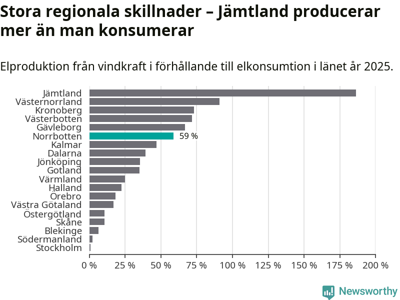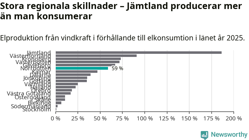 Totalt producerade länets vindkraft 5 134 gigawattimmar el under fjolåret, vilket motsvarar ungefär 59 procent av den totala elkonsumtionen1.