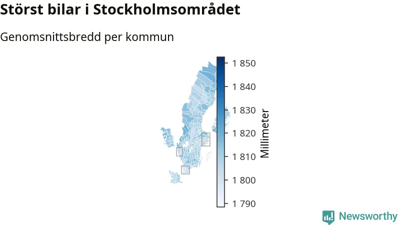Om vi tittar på bara bilar från de senaste fem åren, så är genomsnittsbredden för Sunnes nya bilar alltså 184,7 centimeter. Sunne hör därmed till de kommuner där breddskillnaden mellan nyare bilar och äldre är relativt blygsam.