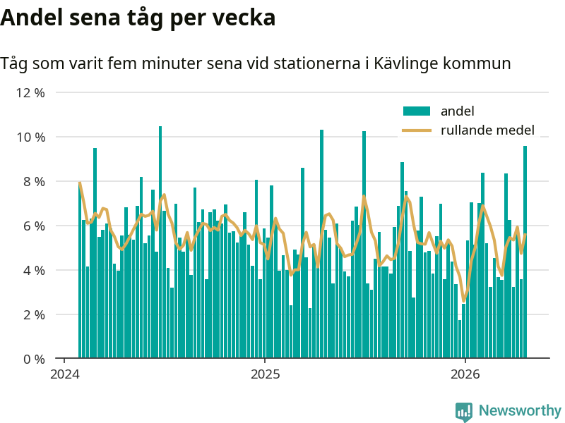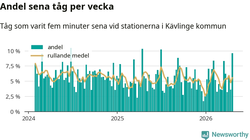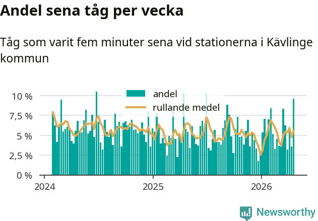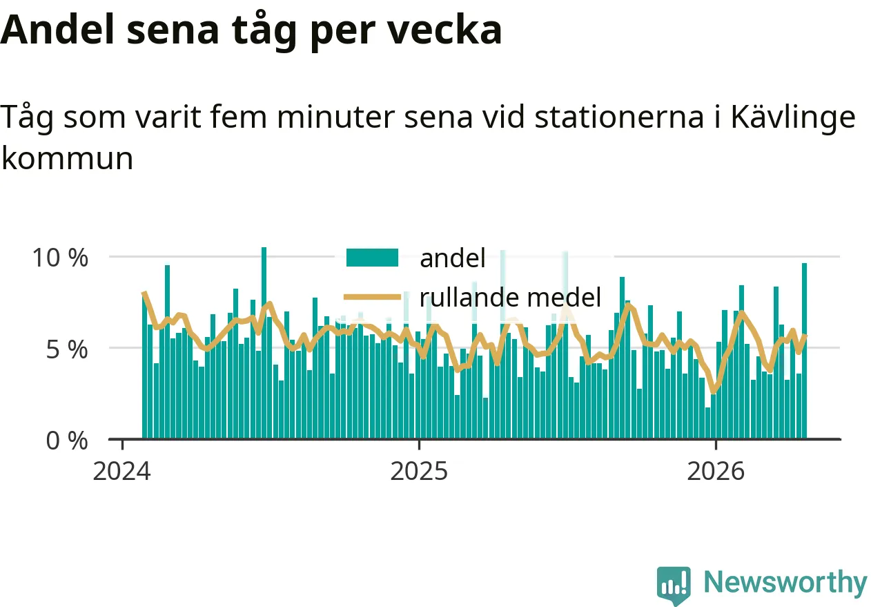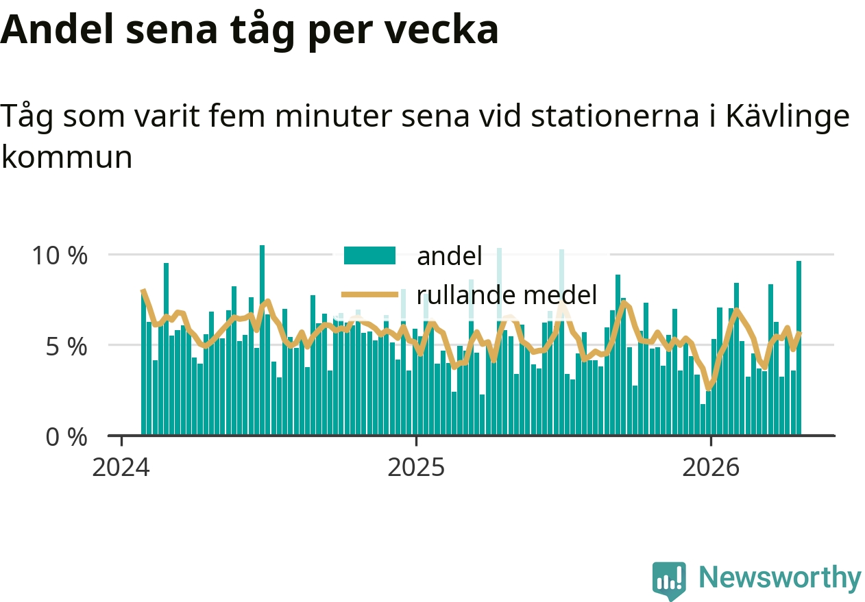 har andelen sena tåg varit 5 procent.