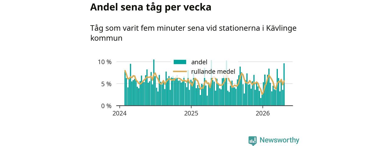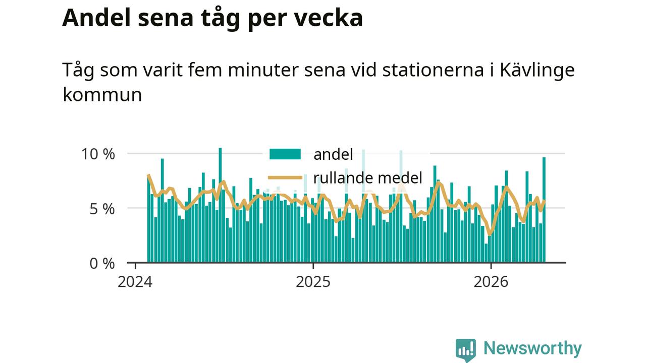 Tio procent av tågen var sena när de passerade stationerna Dösjebro, Furulund eller Kävlinge under vecka 17. Det är fler än vanligt. En genomsnittlig vecka är motsvarande siffra sex procent,