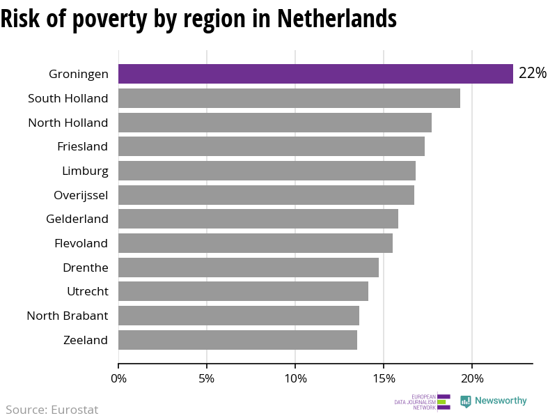 In Netherlands, Groningen (which has the highest poverty rate) has a risk of poverty two times higher than in the wealthier Zeeland.