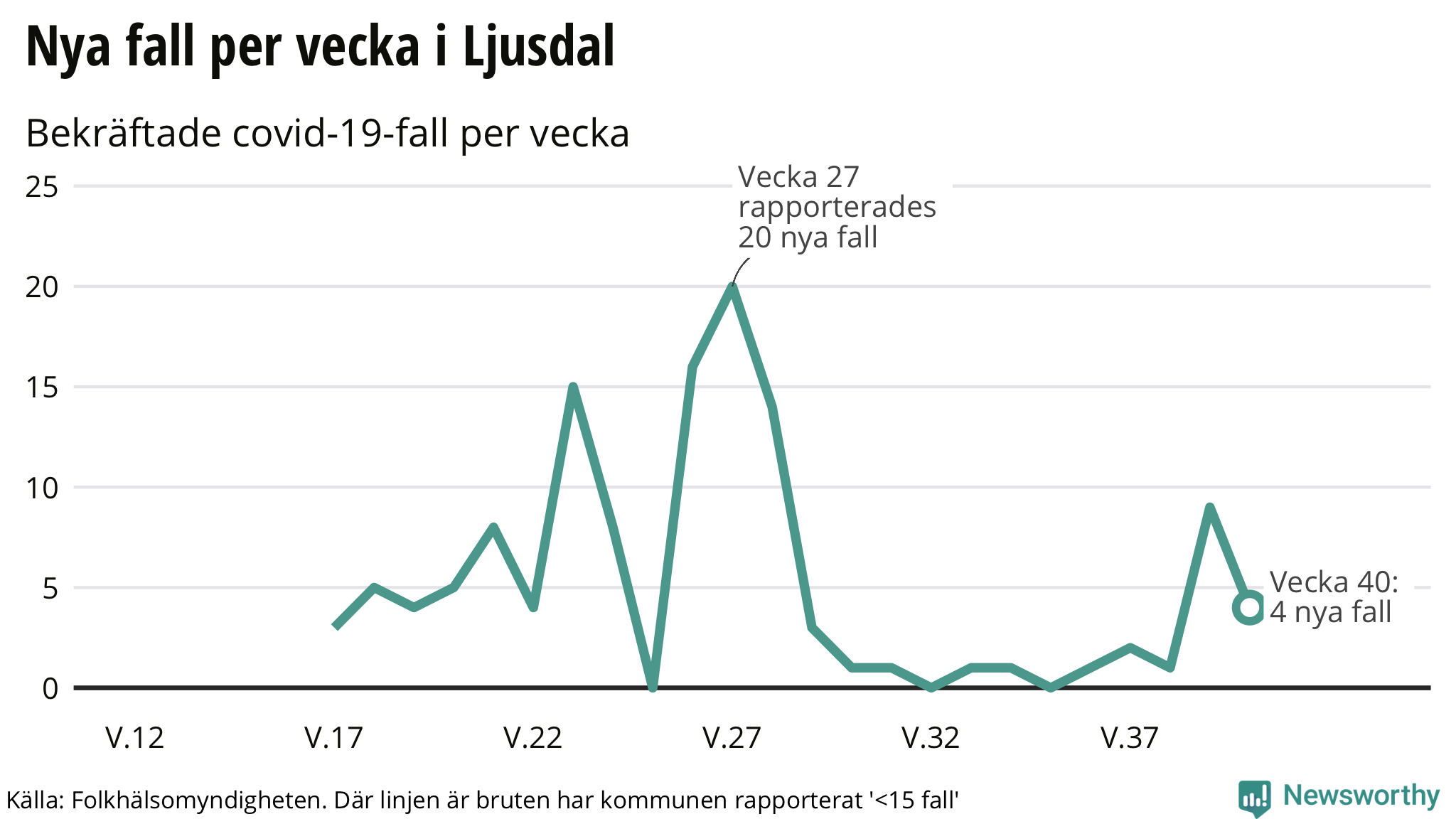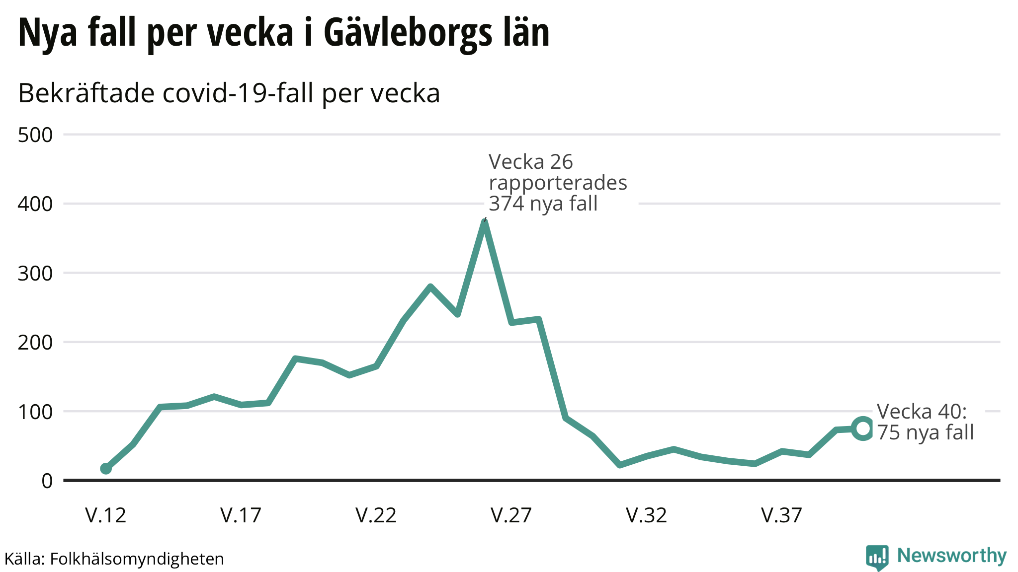 Newsworthy sammanställer varje vecka en rapport om coronaviruset i Sverige, kommun för kommun och län för län, baserat på statistik från Folkhälsomyndigheten.