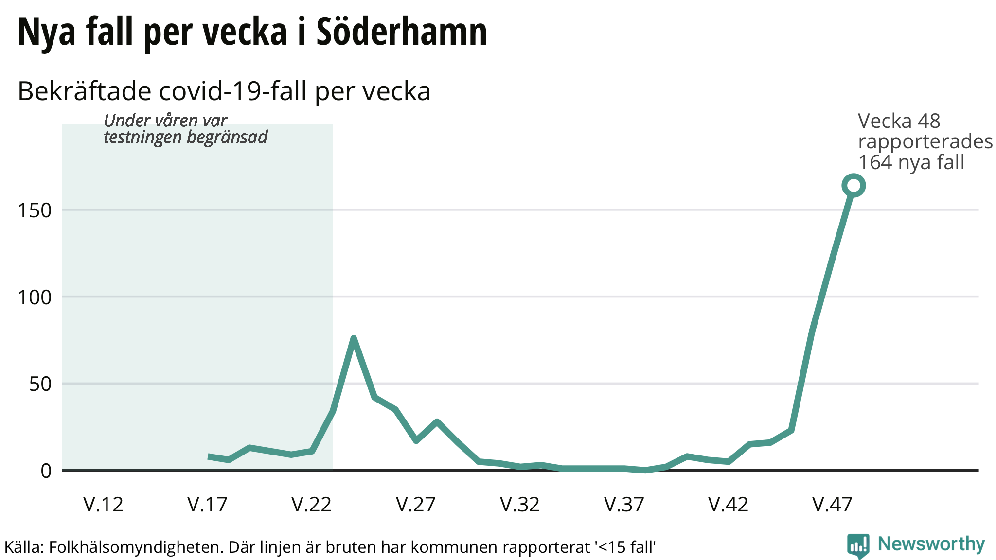 Den senaste veckan har 164 nya bekräftade fall av covid-19 rapporterats i Söderhamns kommun. Det är en klar uppgång jämfört med den föregående veckan (+41 fall).
